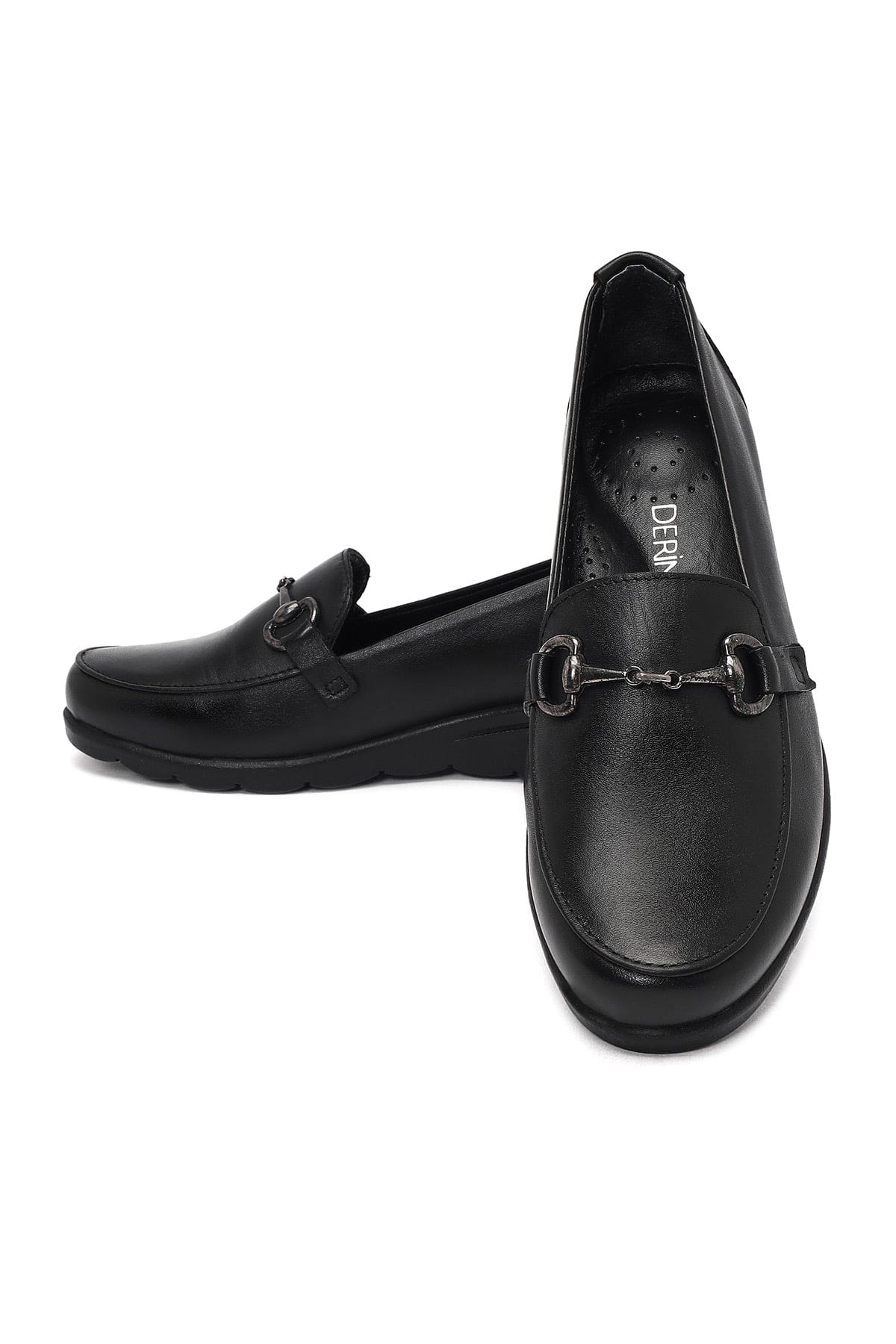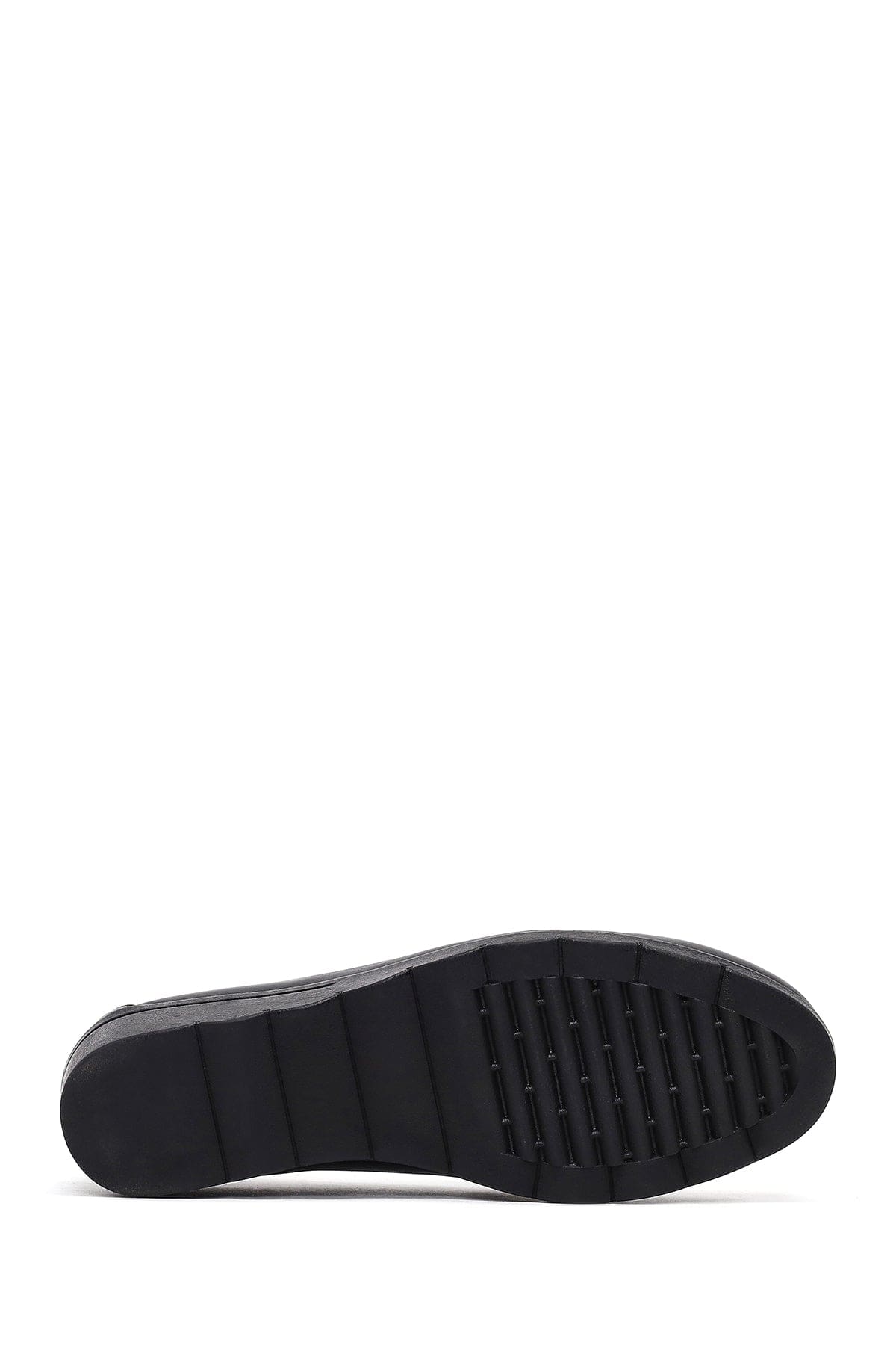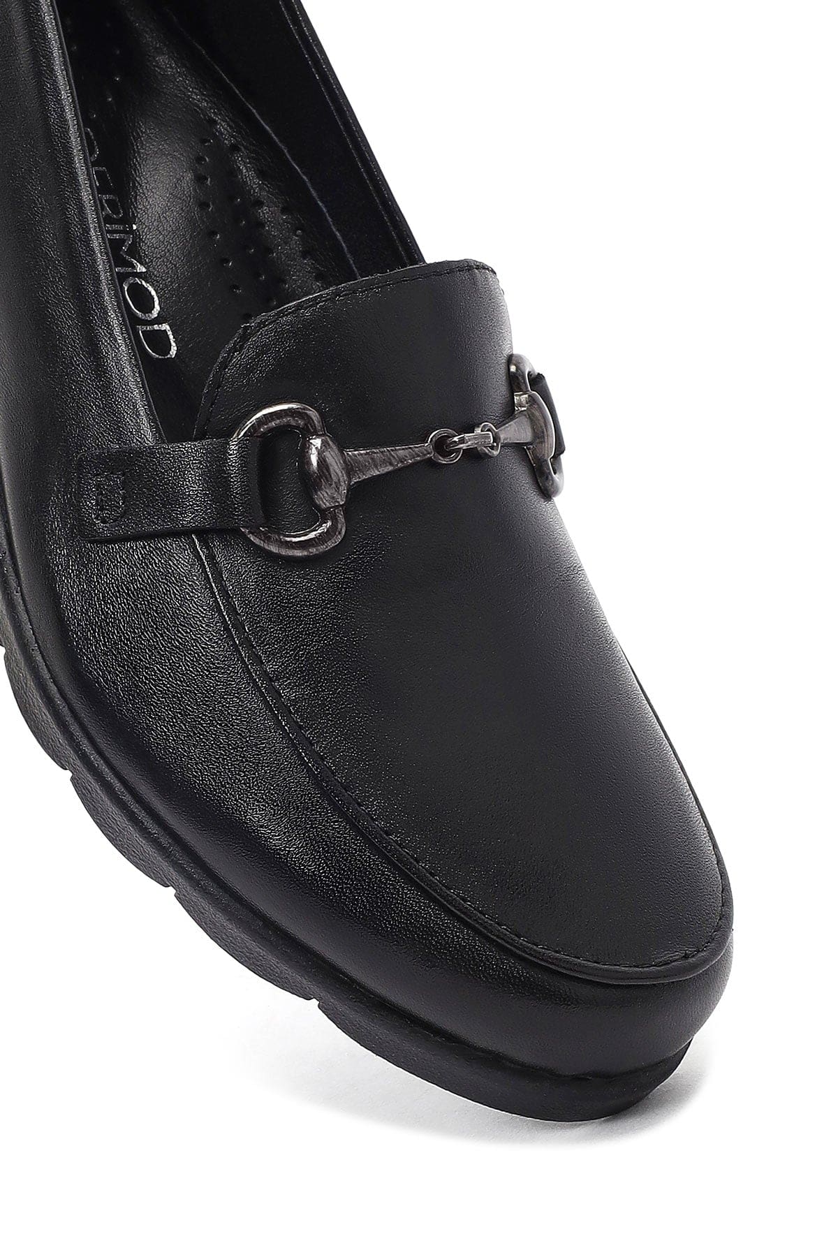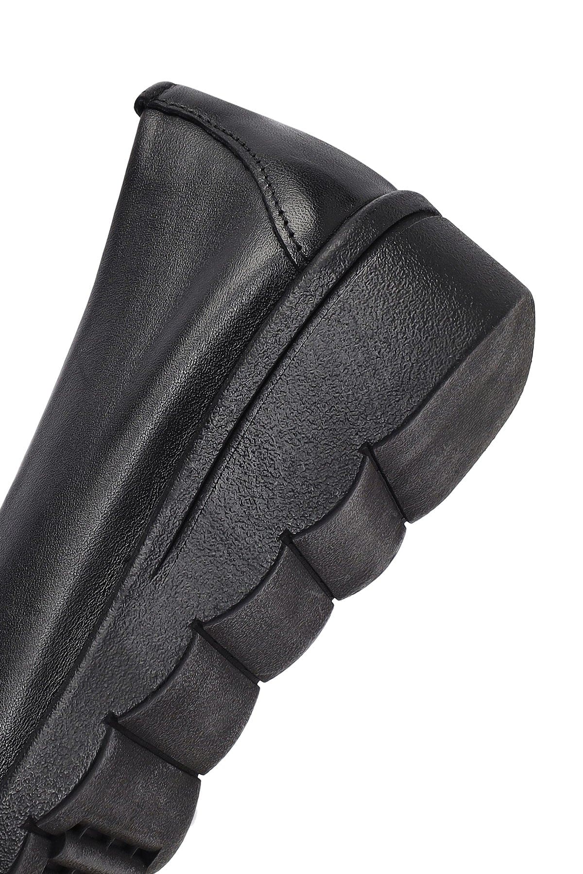 Kadın Siyah Tokalı Dolgu Topuklu Deri Loafer