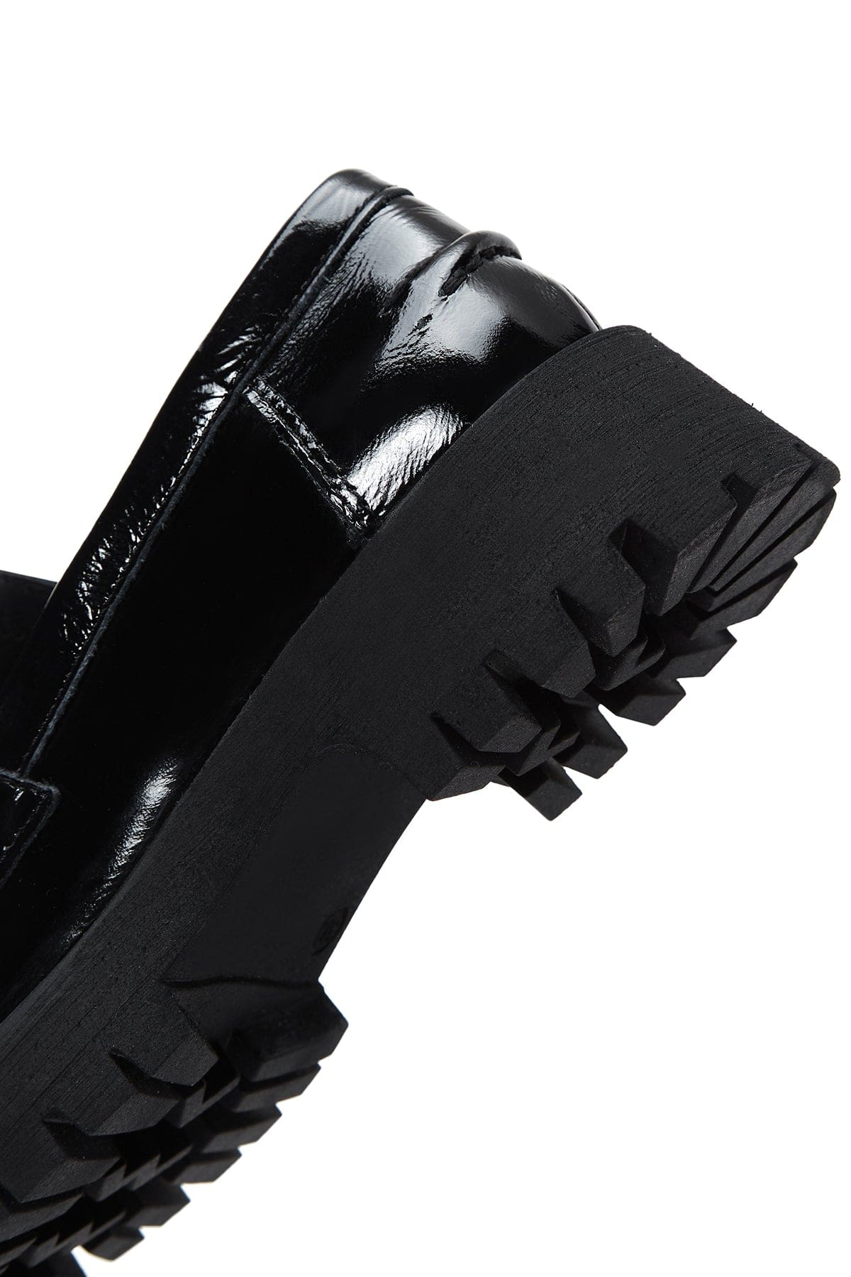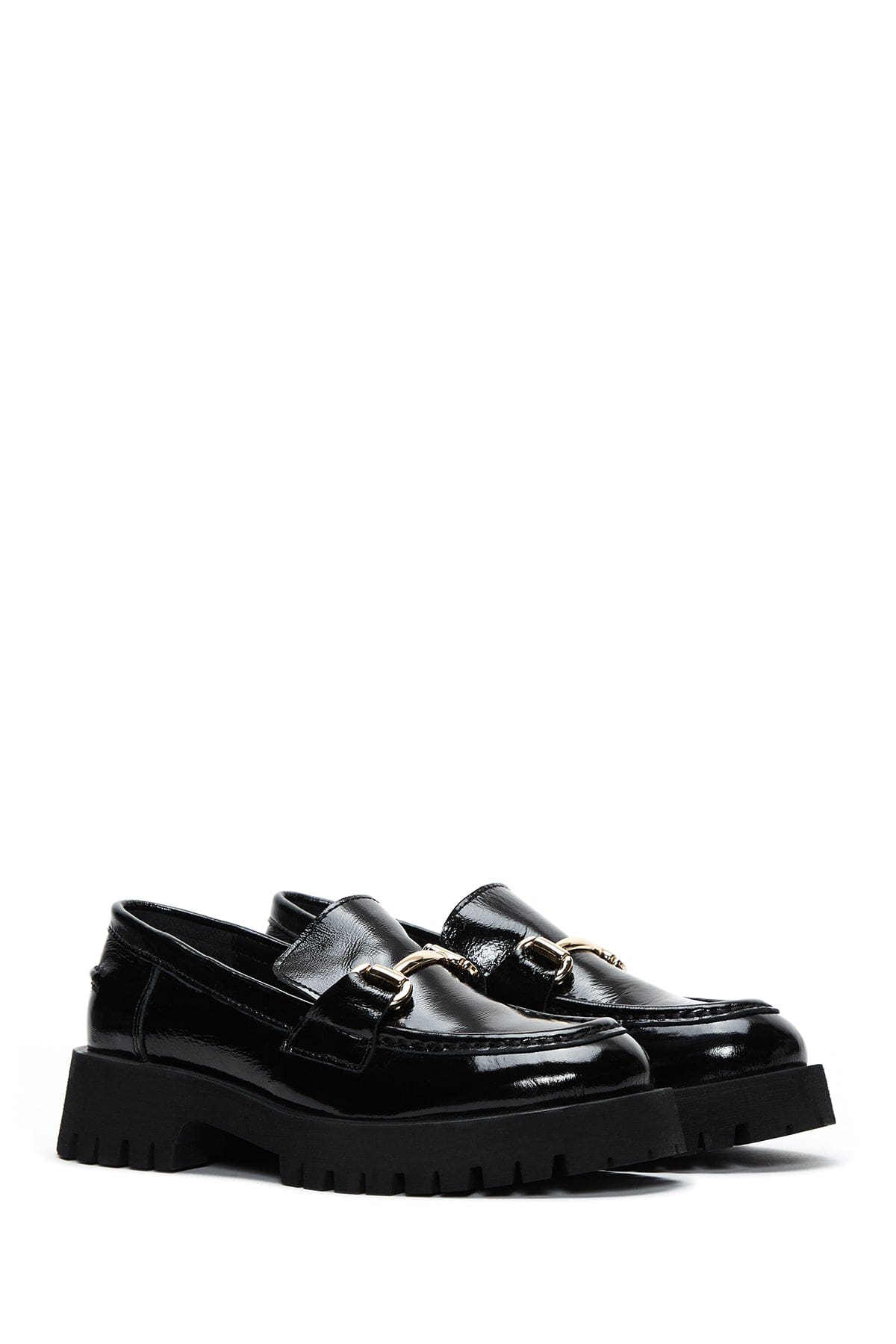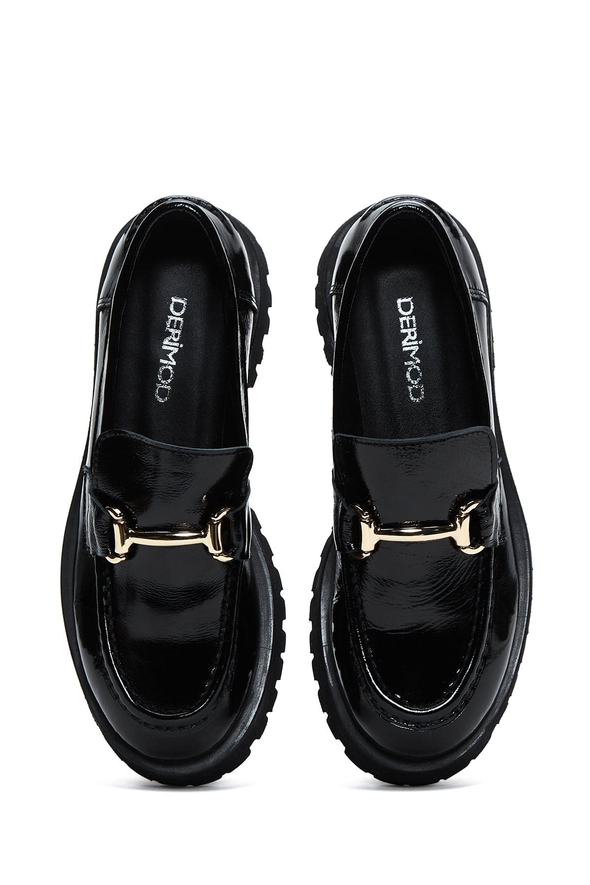Kadın Siyah Tokalı Kalın Tabanlı Rugan Deri Maskülen Loafer