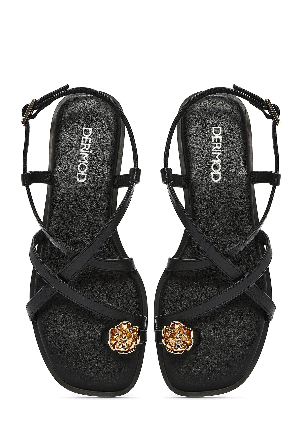 صندل زنانه مشکی لایانگشتی سگکدار دری مد