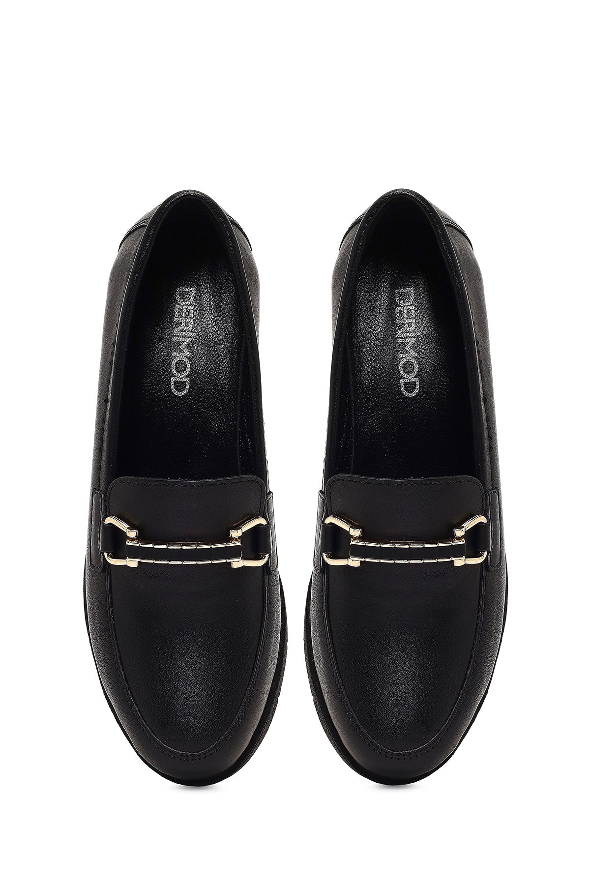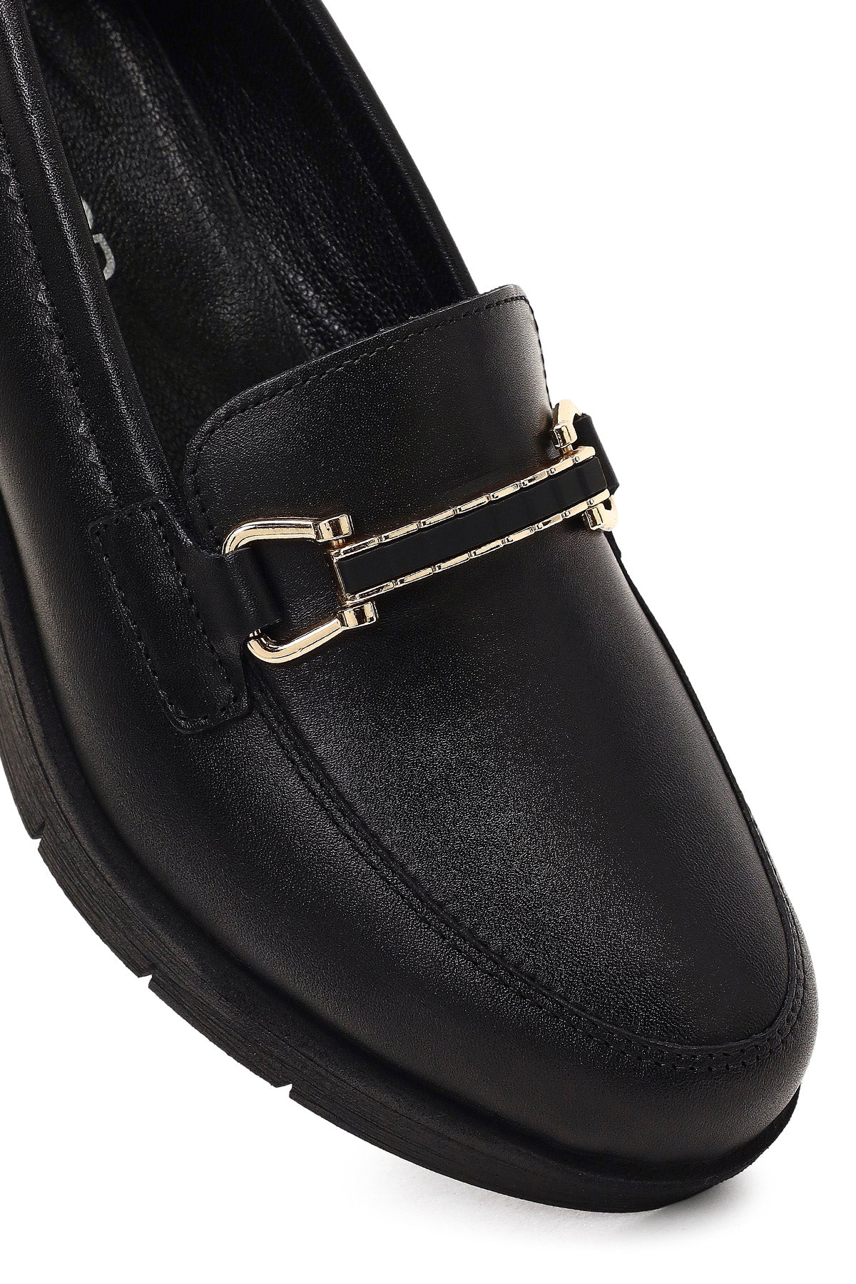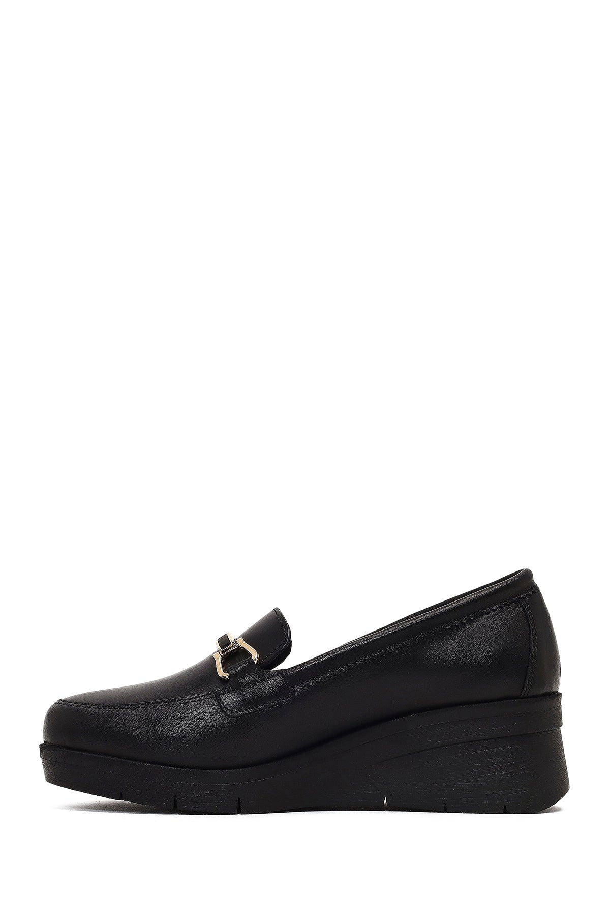 Kadın Siyah Tokalı Dolgu Topuklu Deri Comfort Loafer