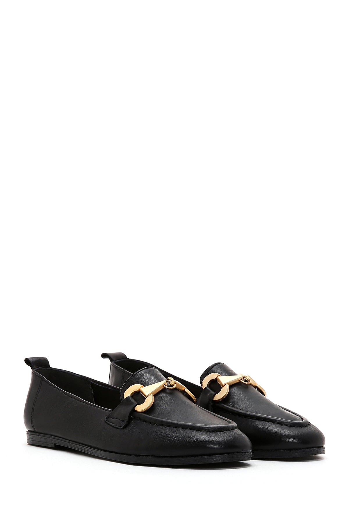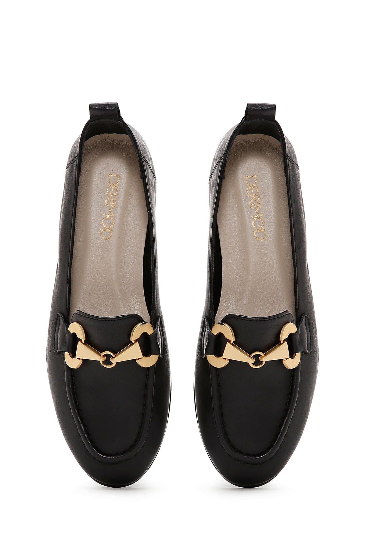 Kadın Siyah Tokalı Deri Maskülen Loafer