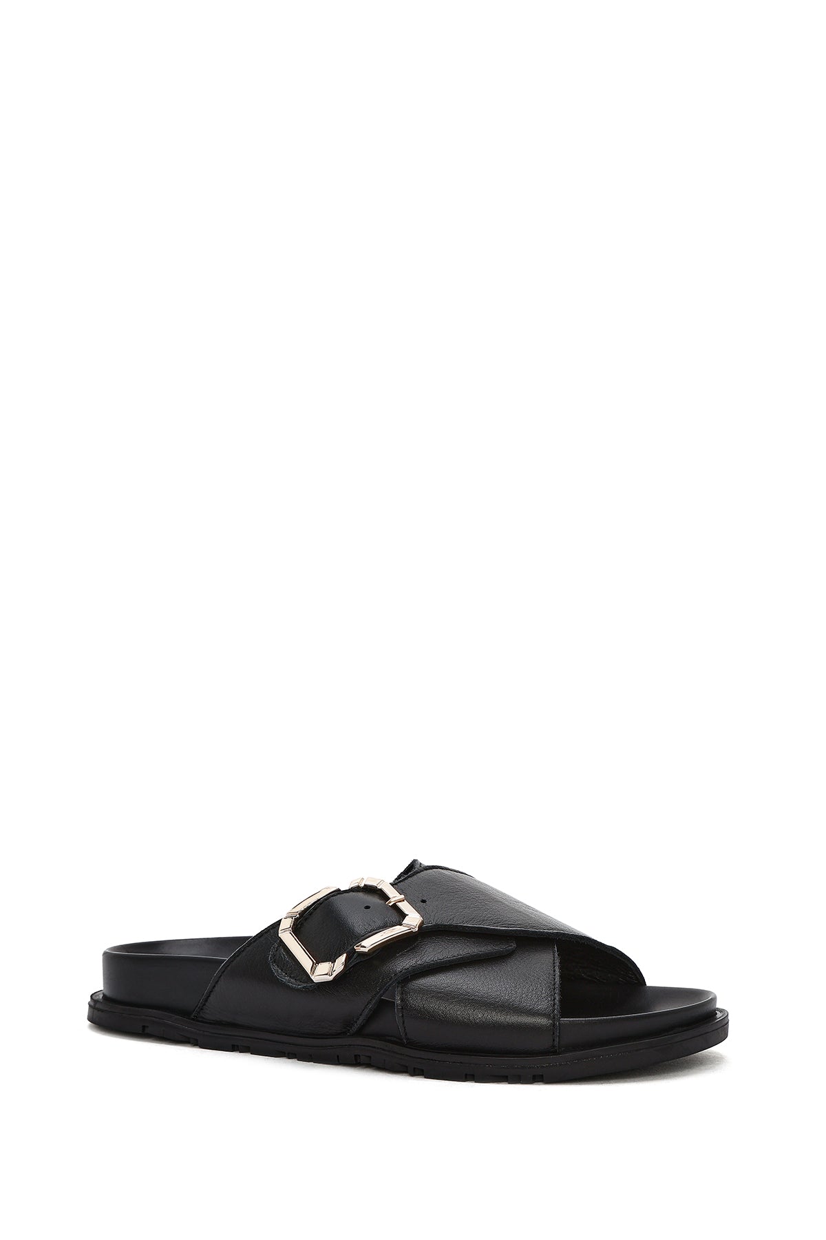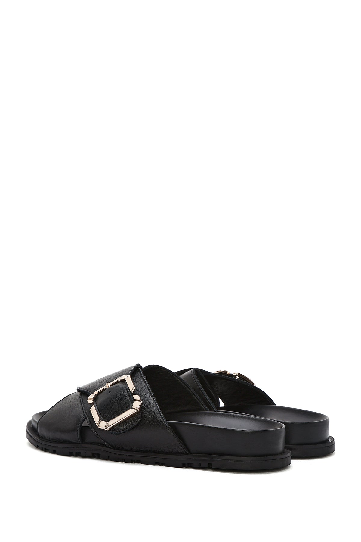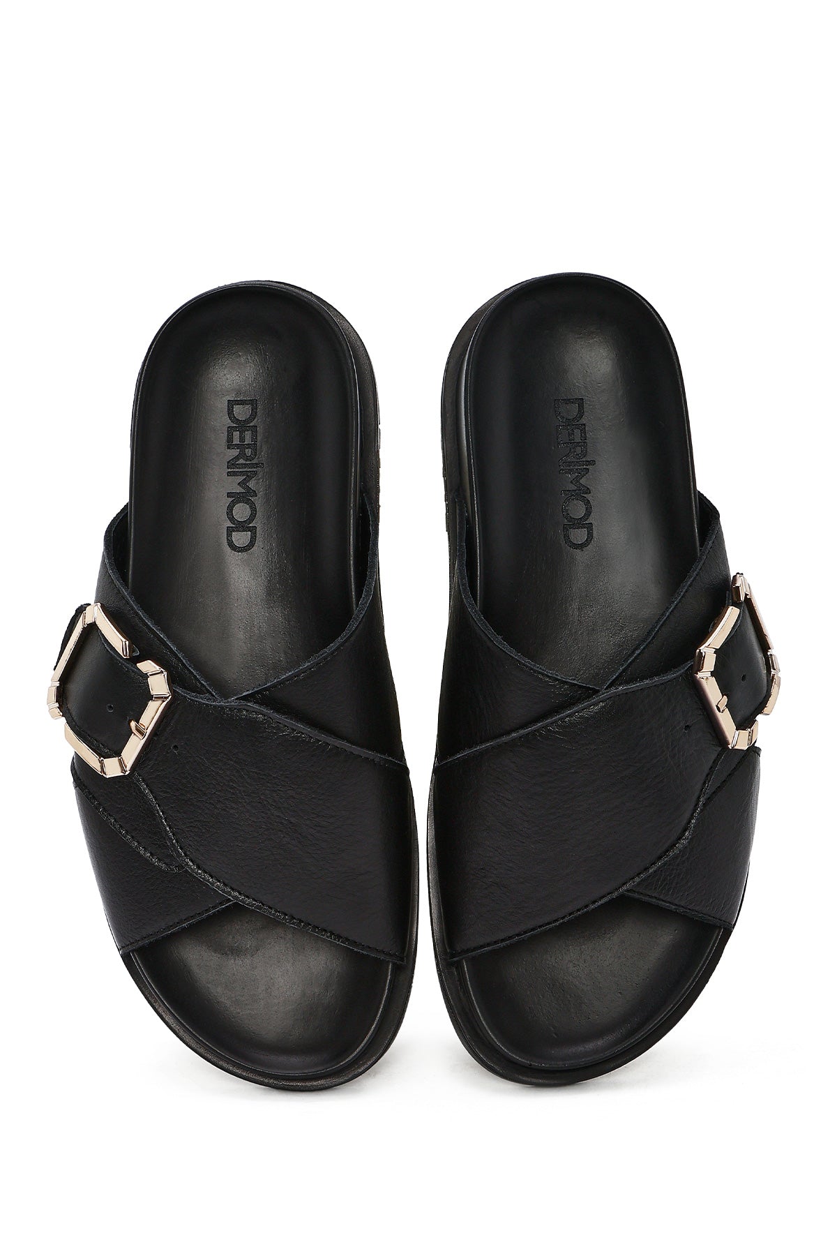 دمپایی زنانه چرمی مشکی سگکدار دری مد