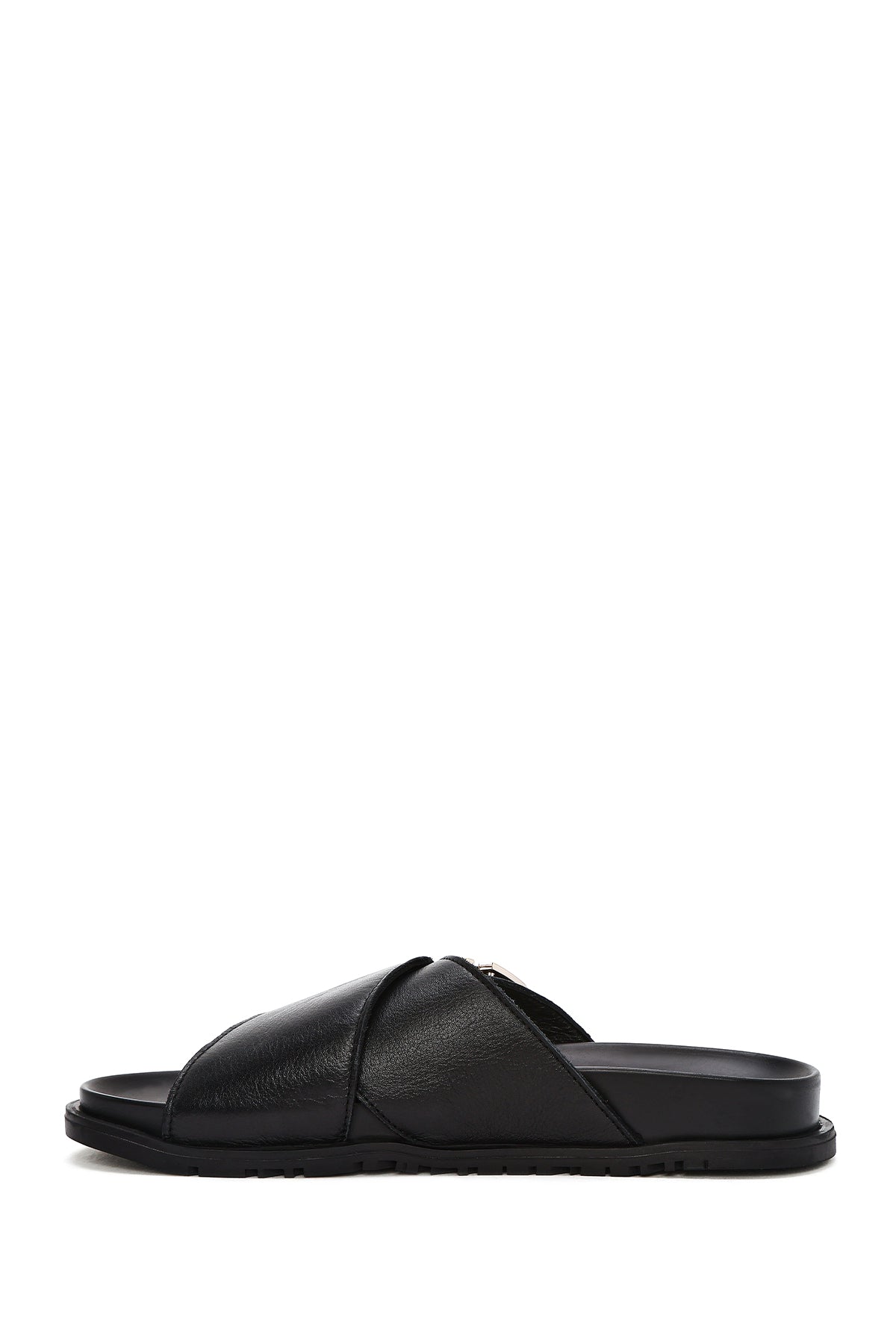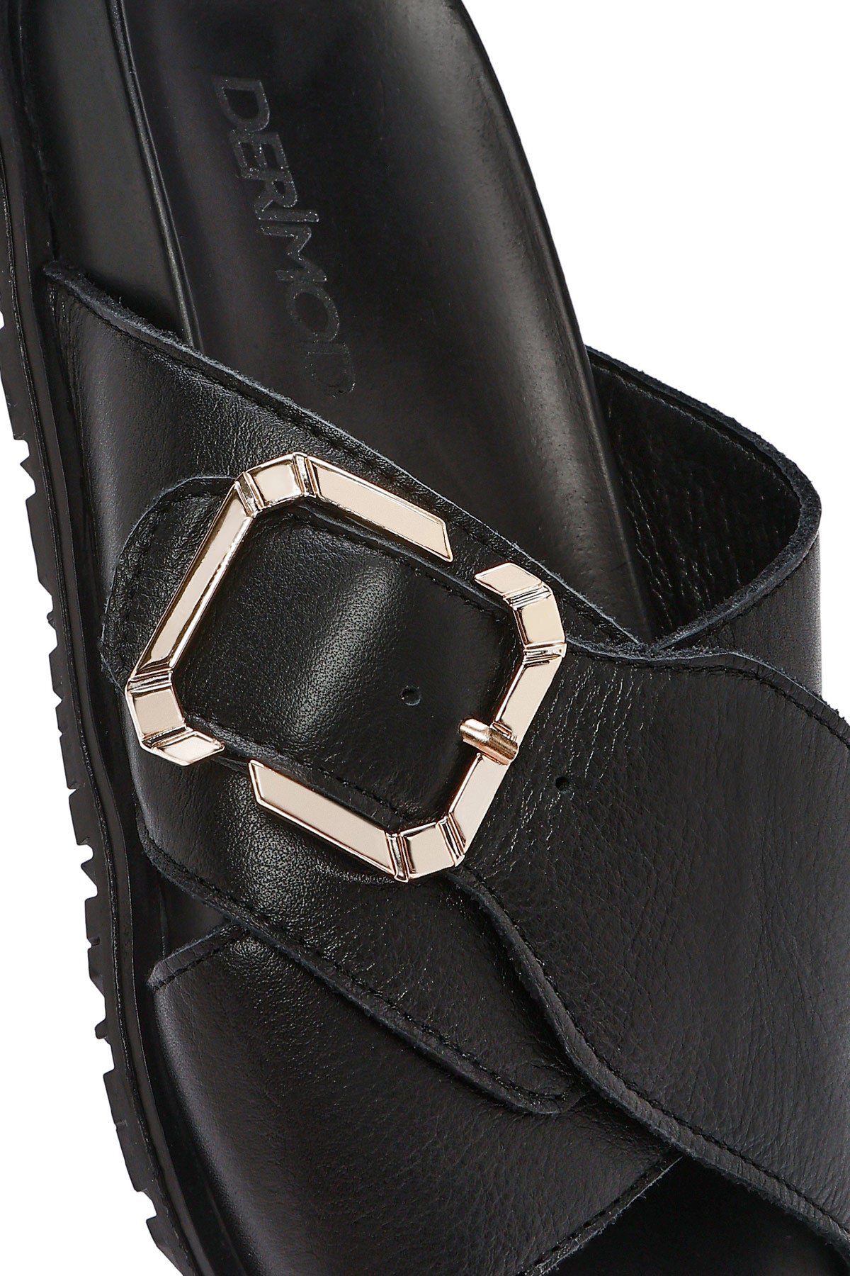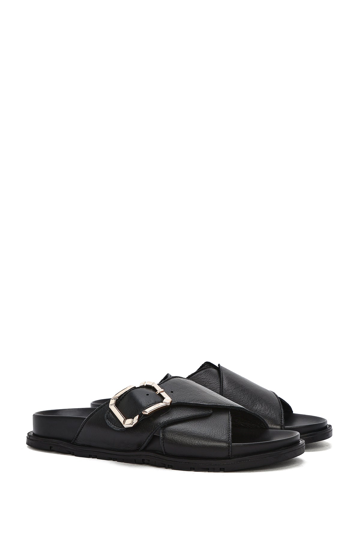 دمپایی زنانه چرمی مشکی سگکدار دری مد