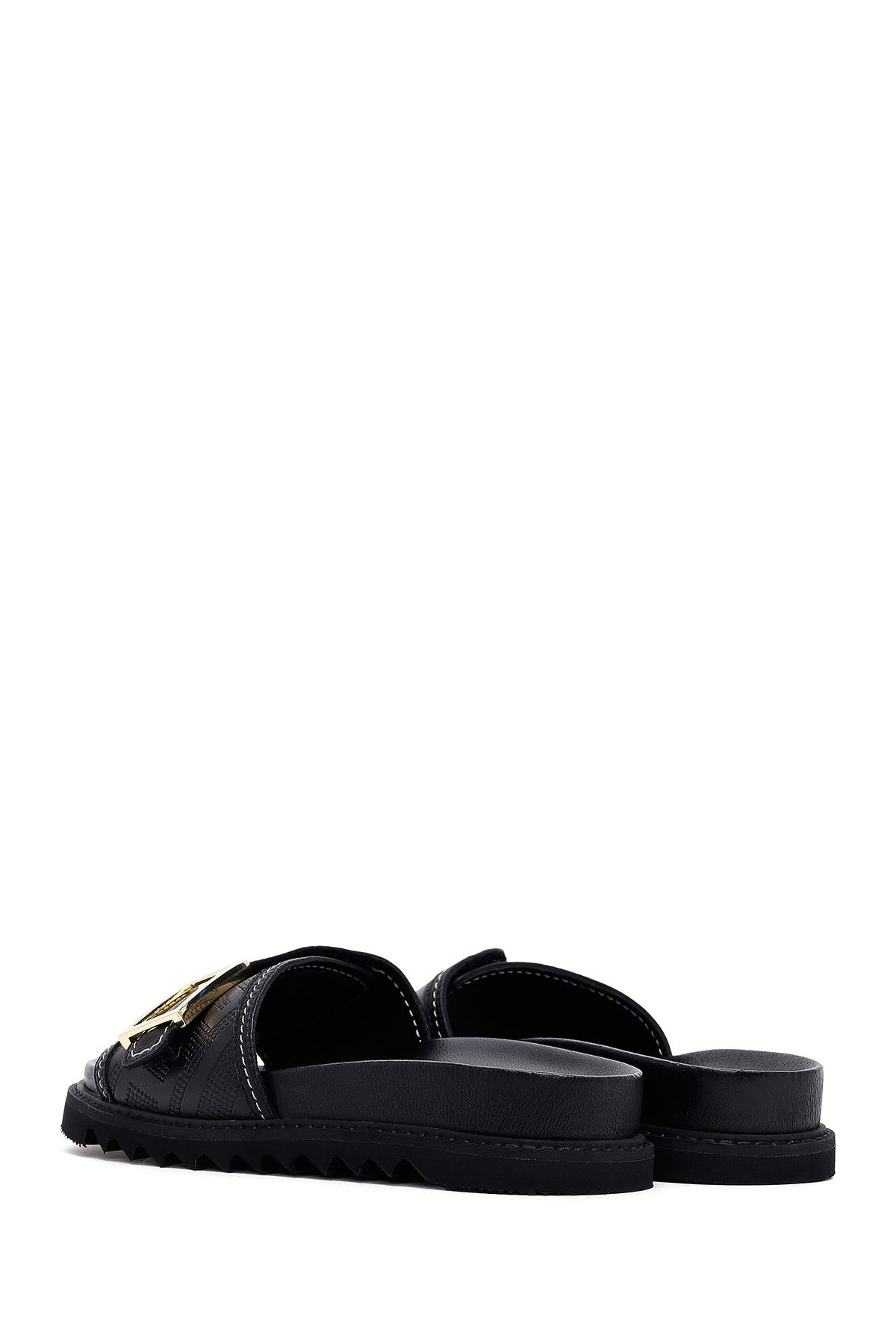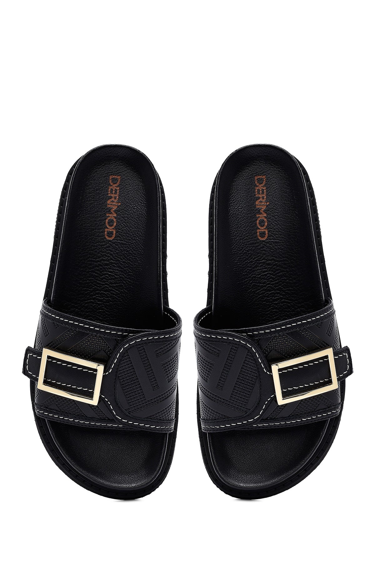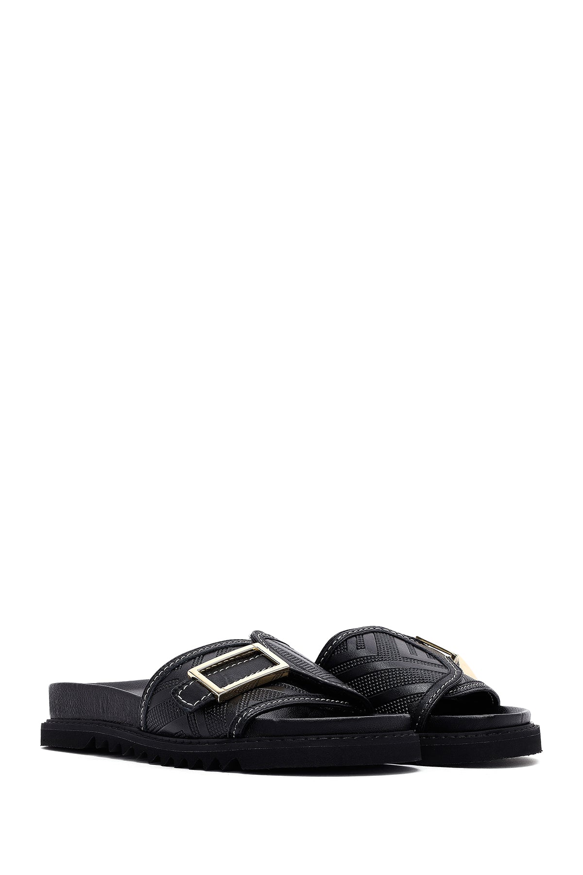 دمپایی زنانه چرم مشکی سگکدار دری مد