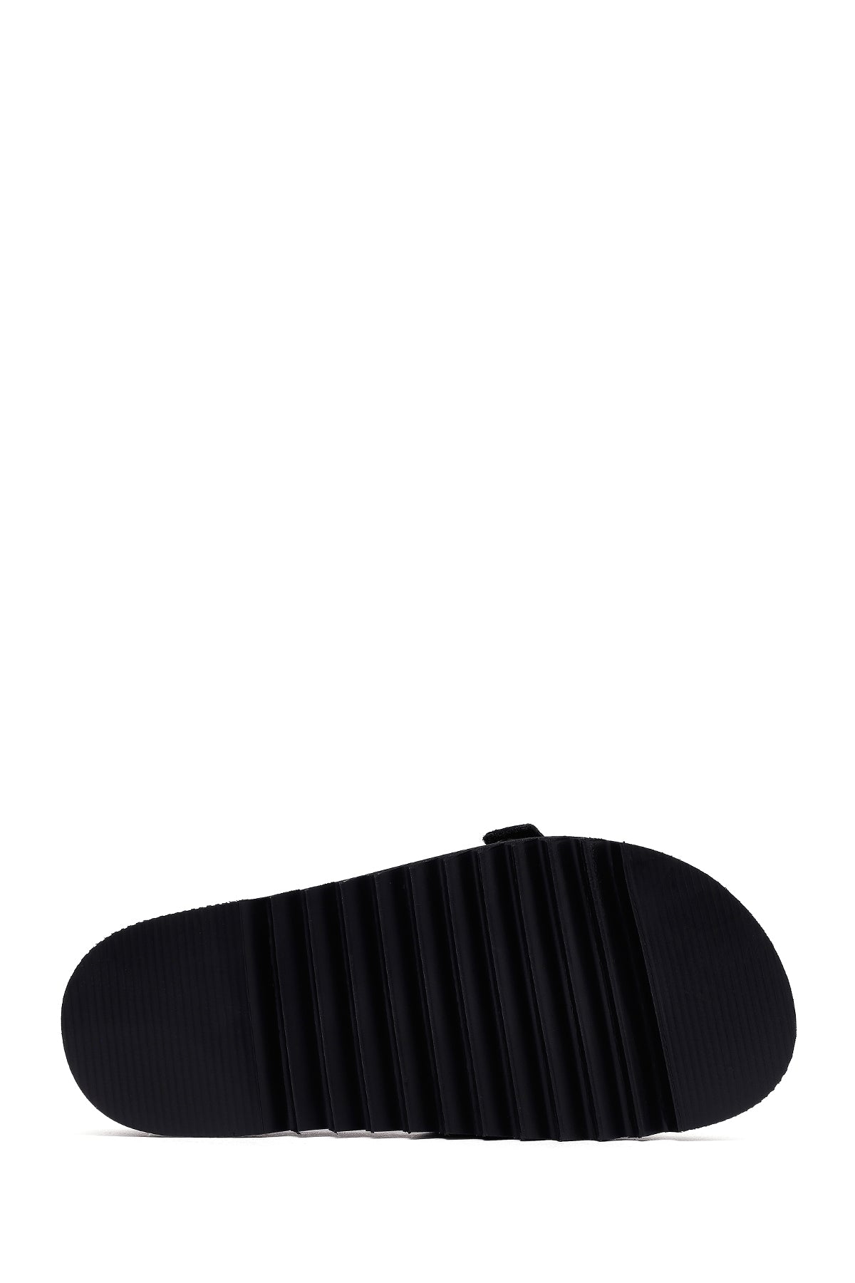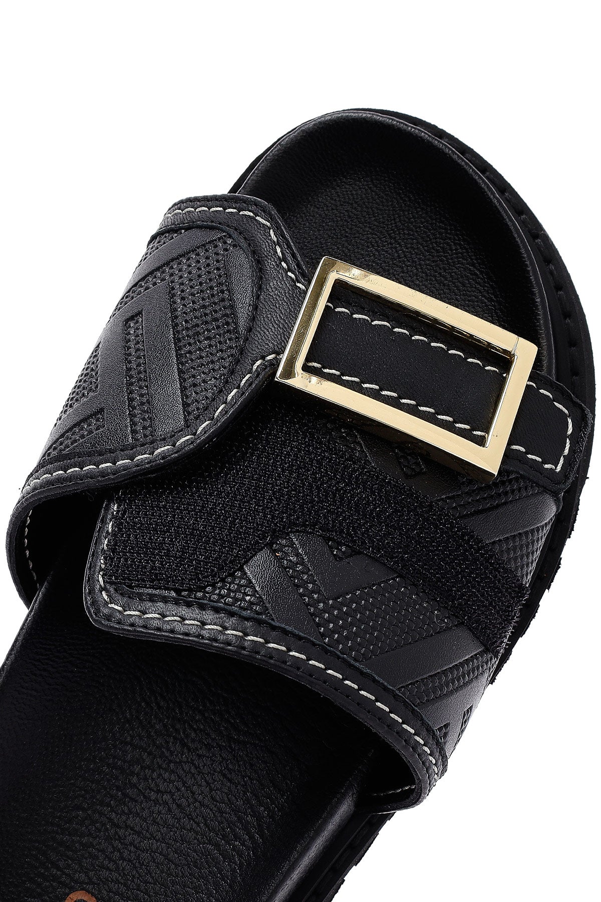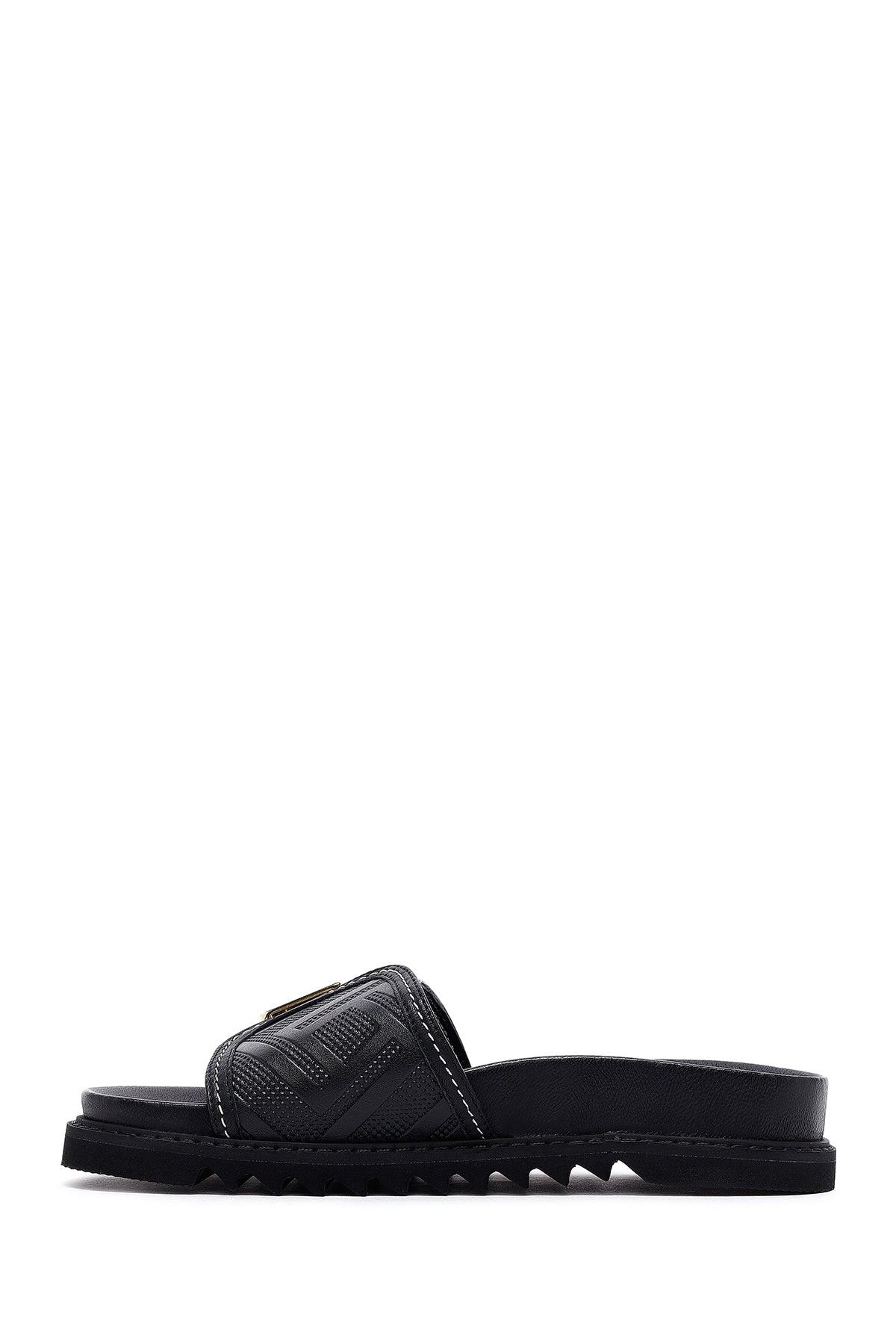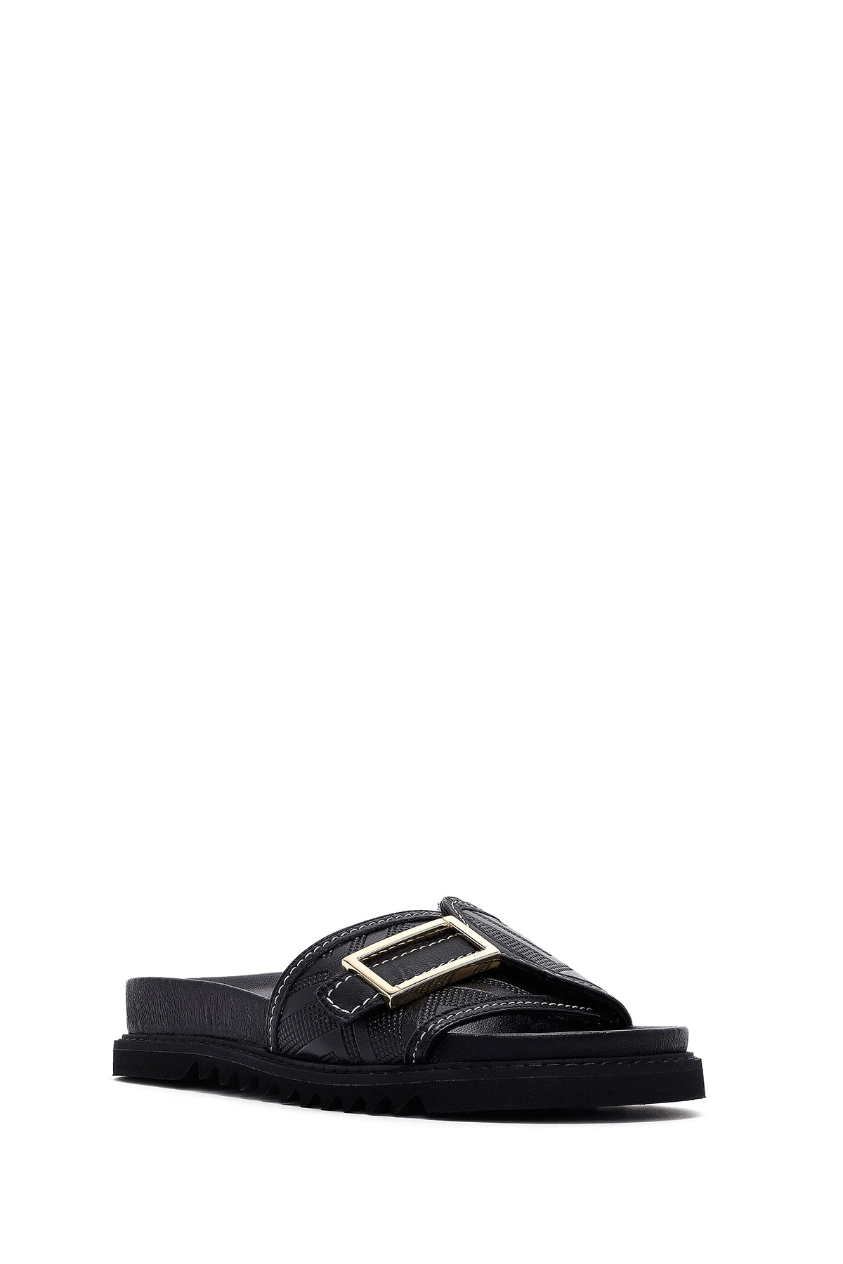 دمپایی زنانه چرم مشکی سگکدار دری مد