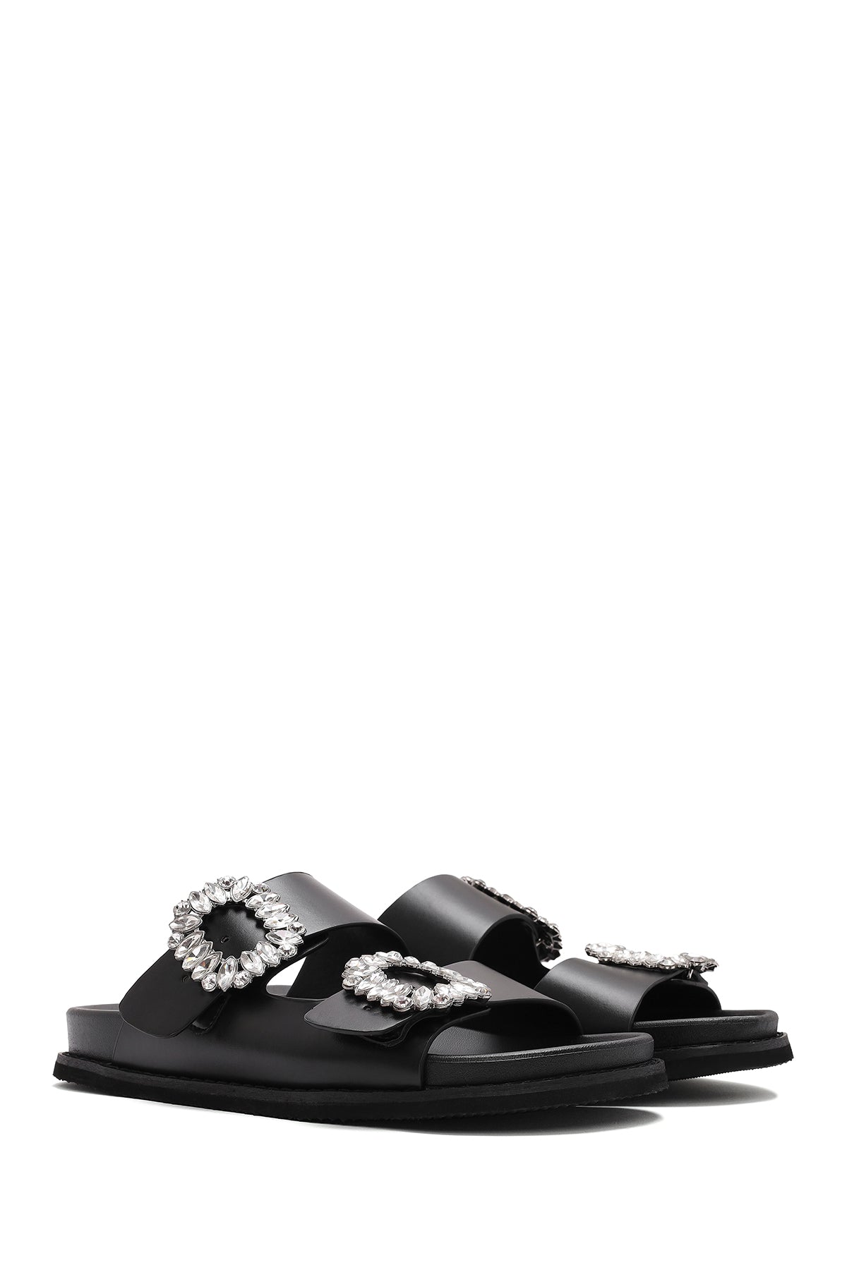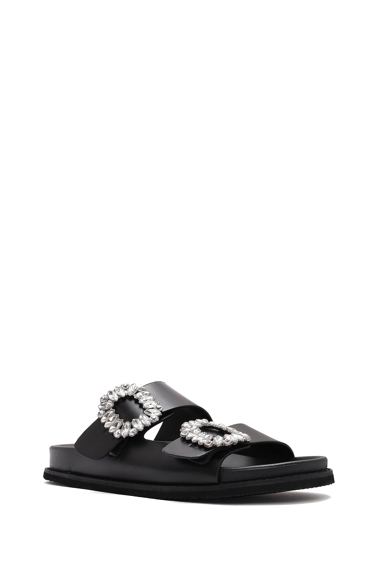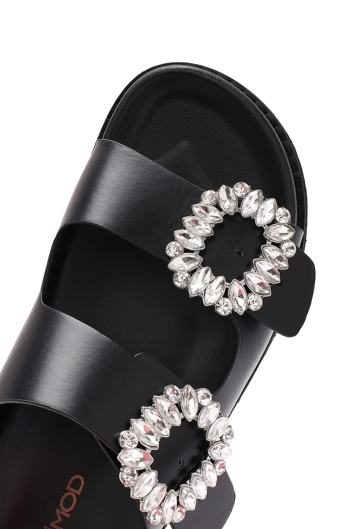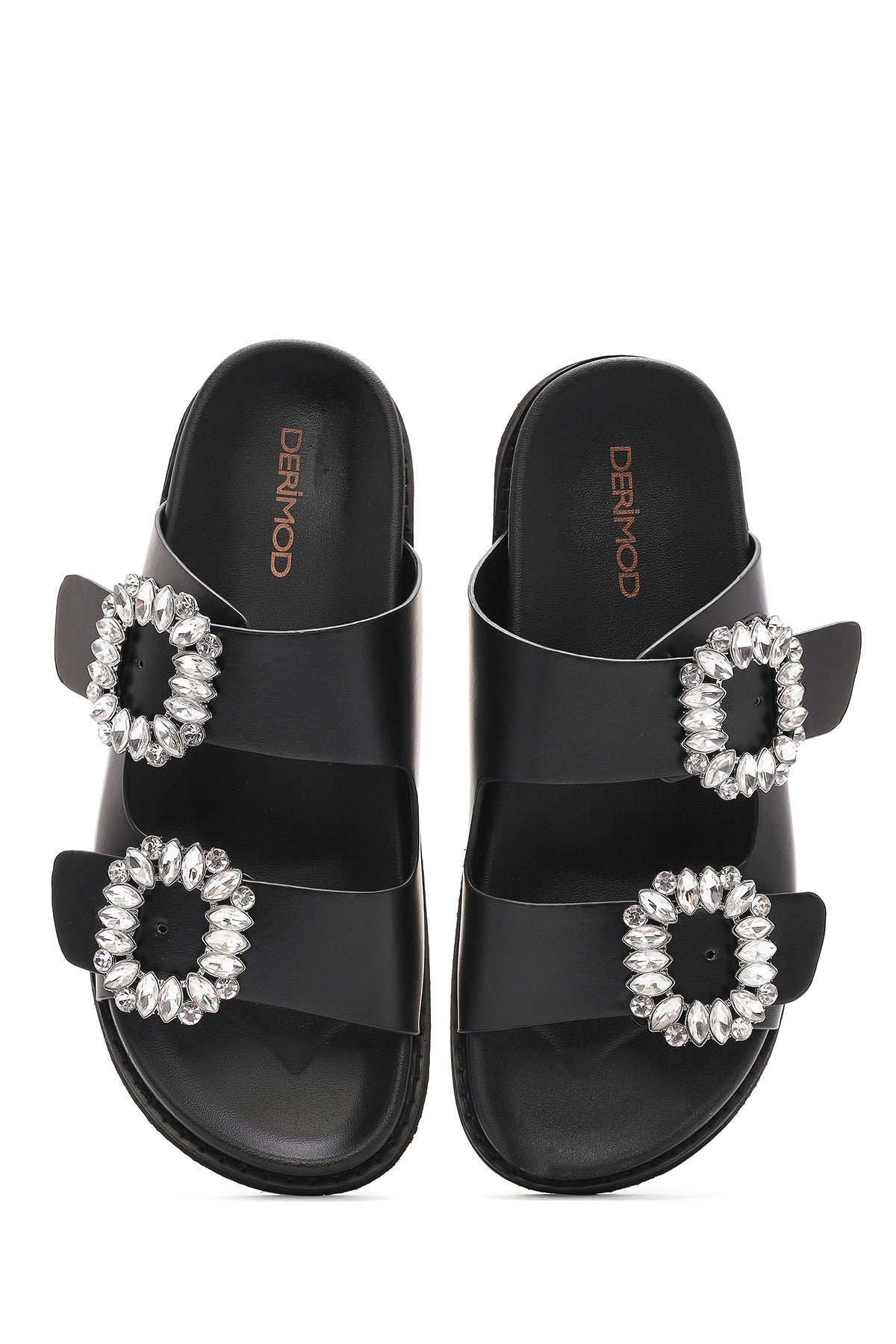 دمپایی زنانه مشکی سگکدار نگیندار دری مد