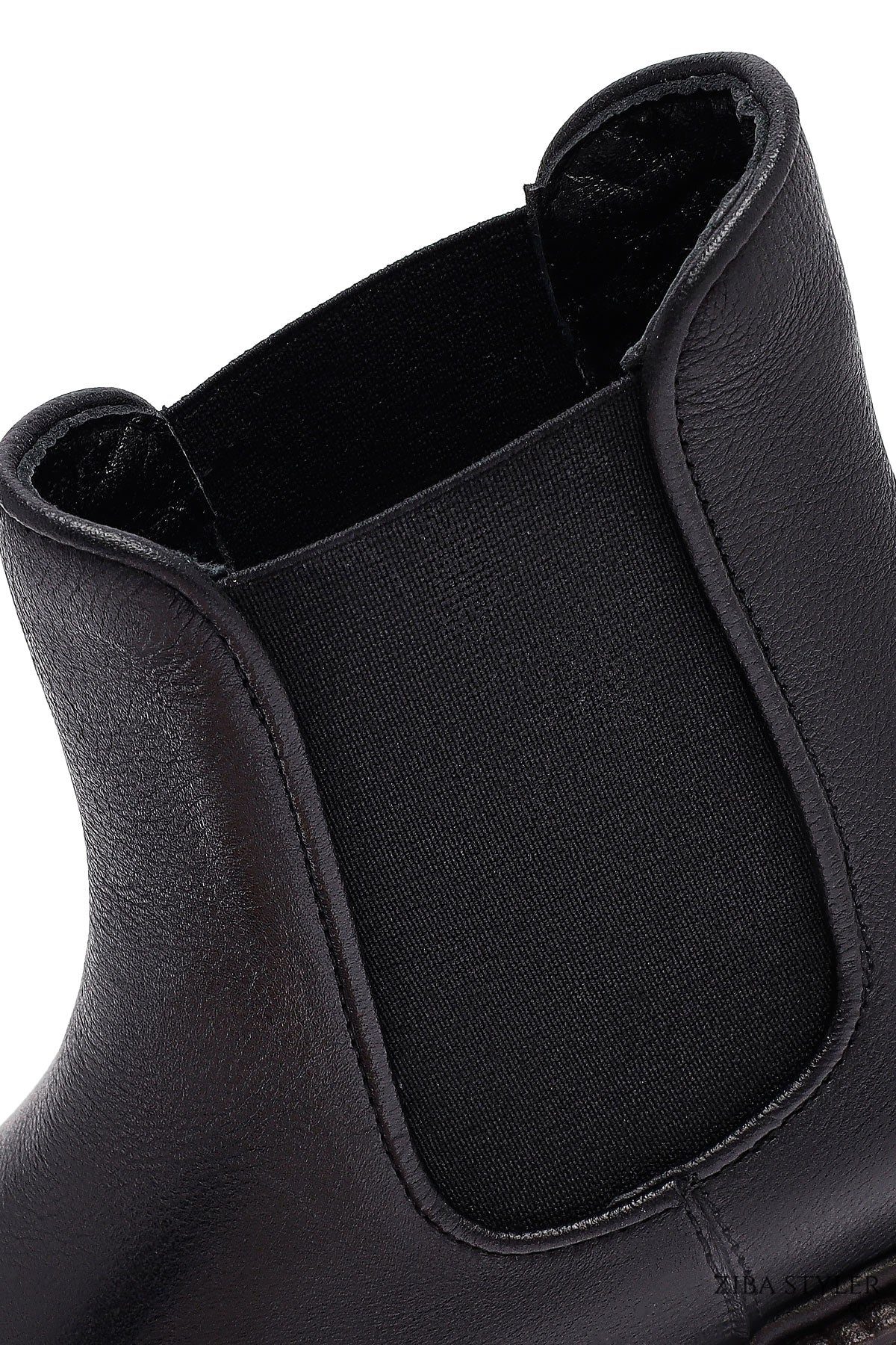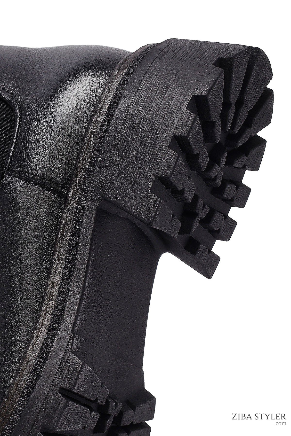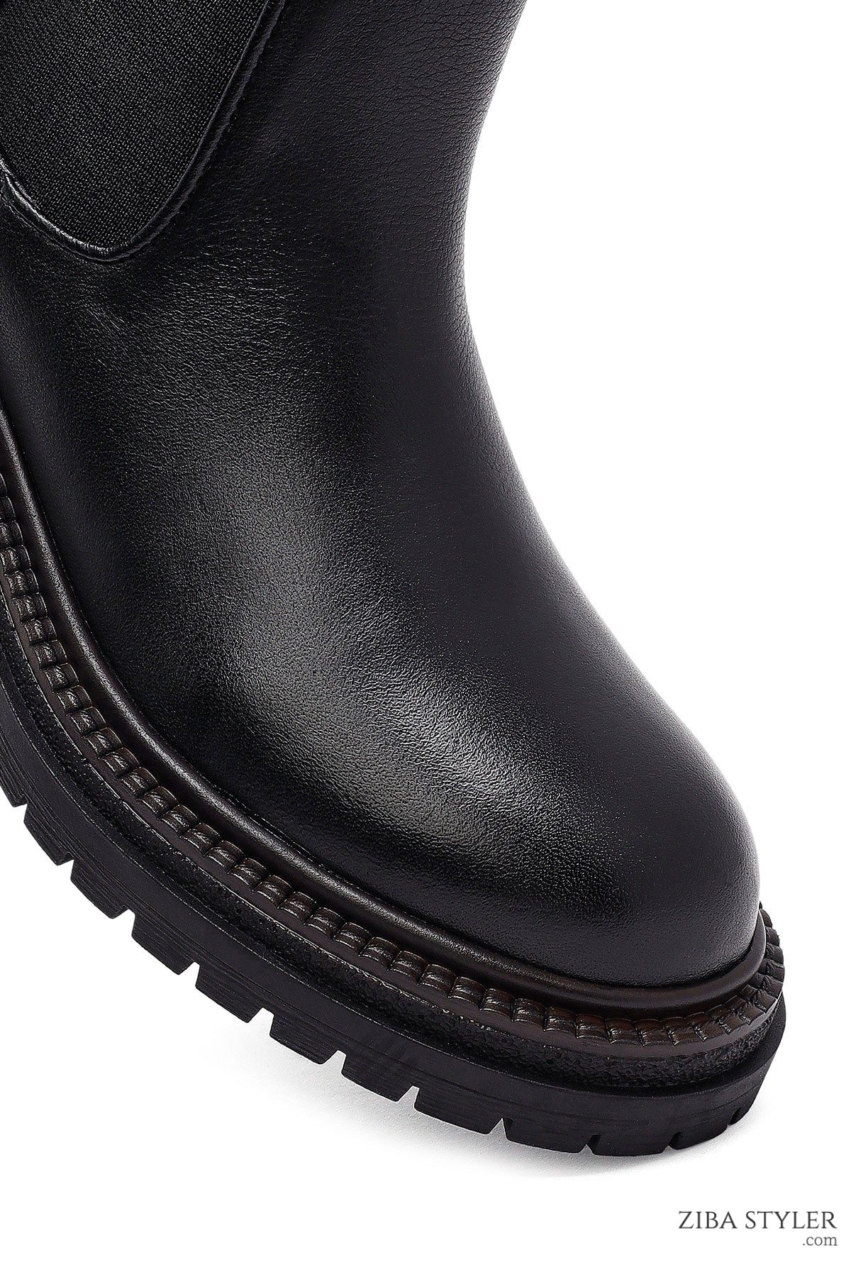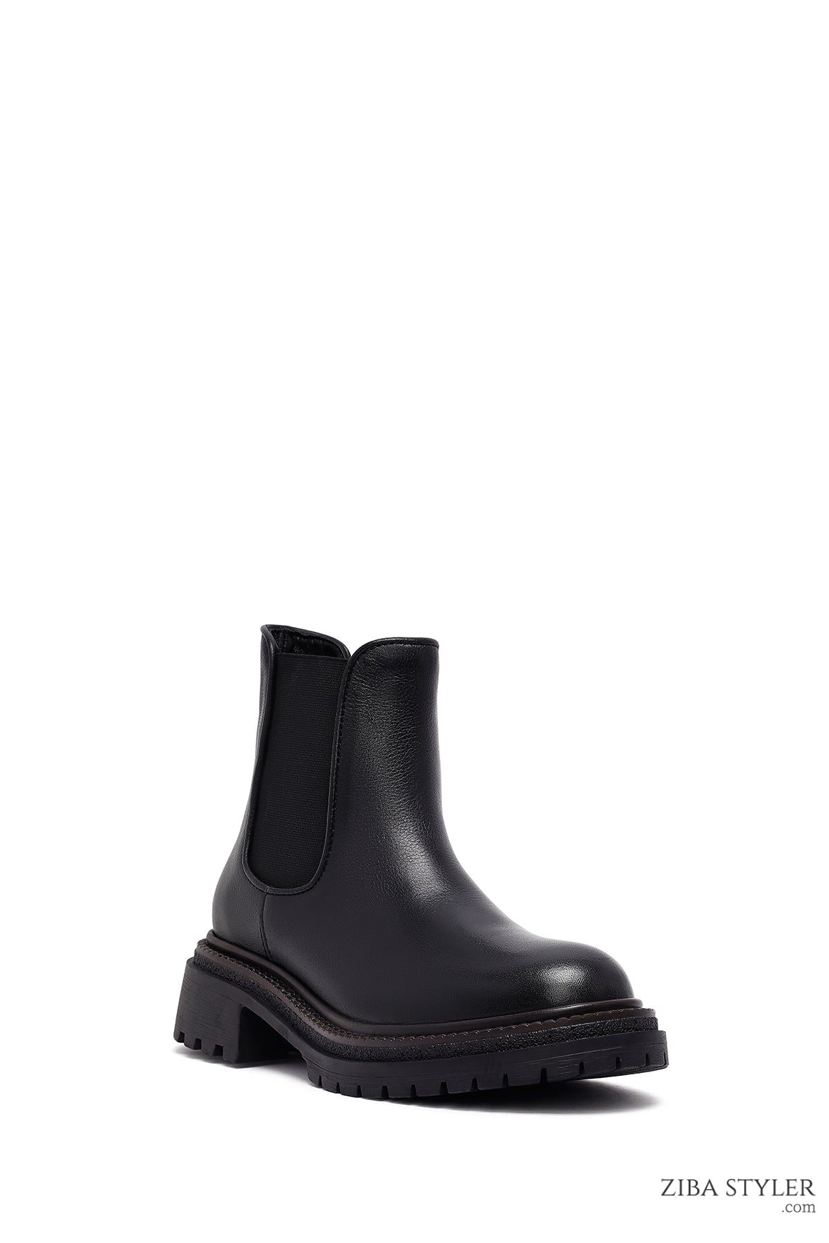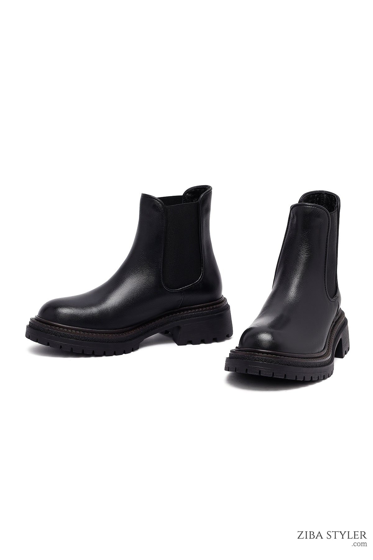 بوت زنانه مشکی چرمی چلسی با زیره ضخیم دری مد