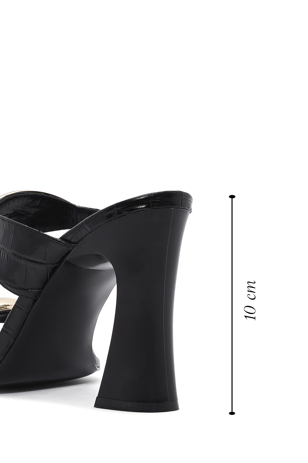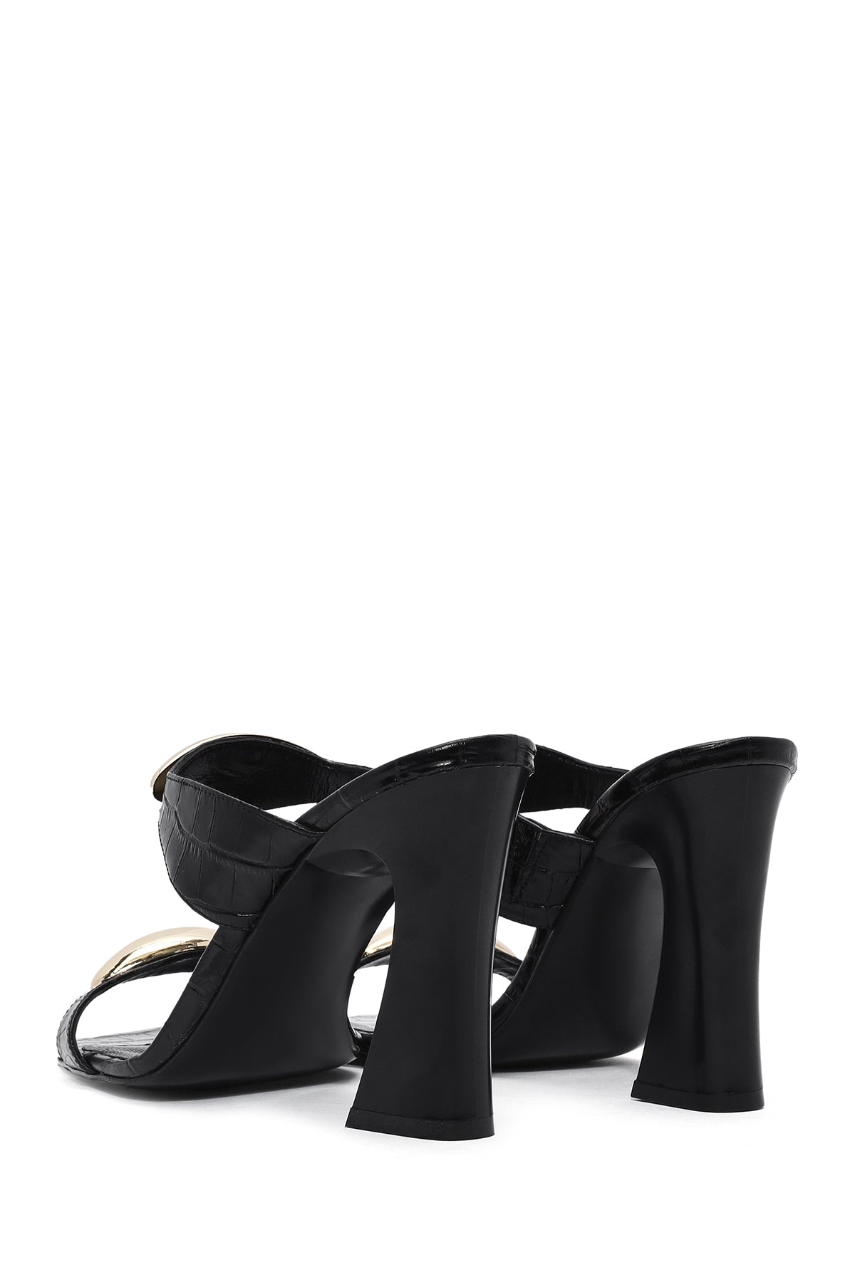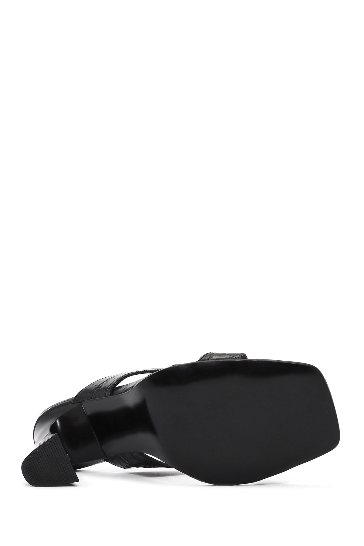 Kadın Siyah Kroko Yüksek Kalın Topuklu Deri Terlik