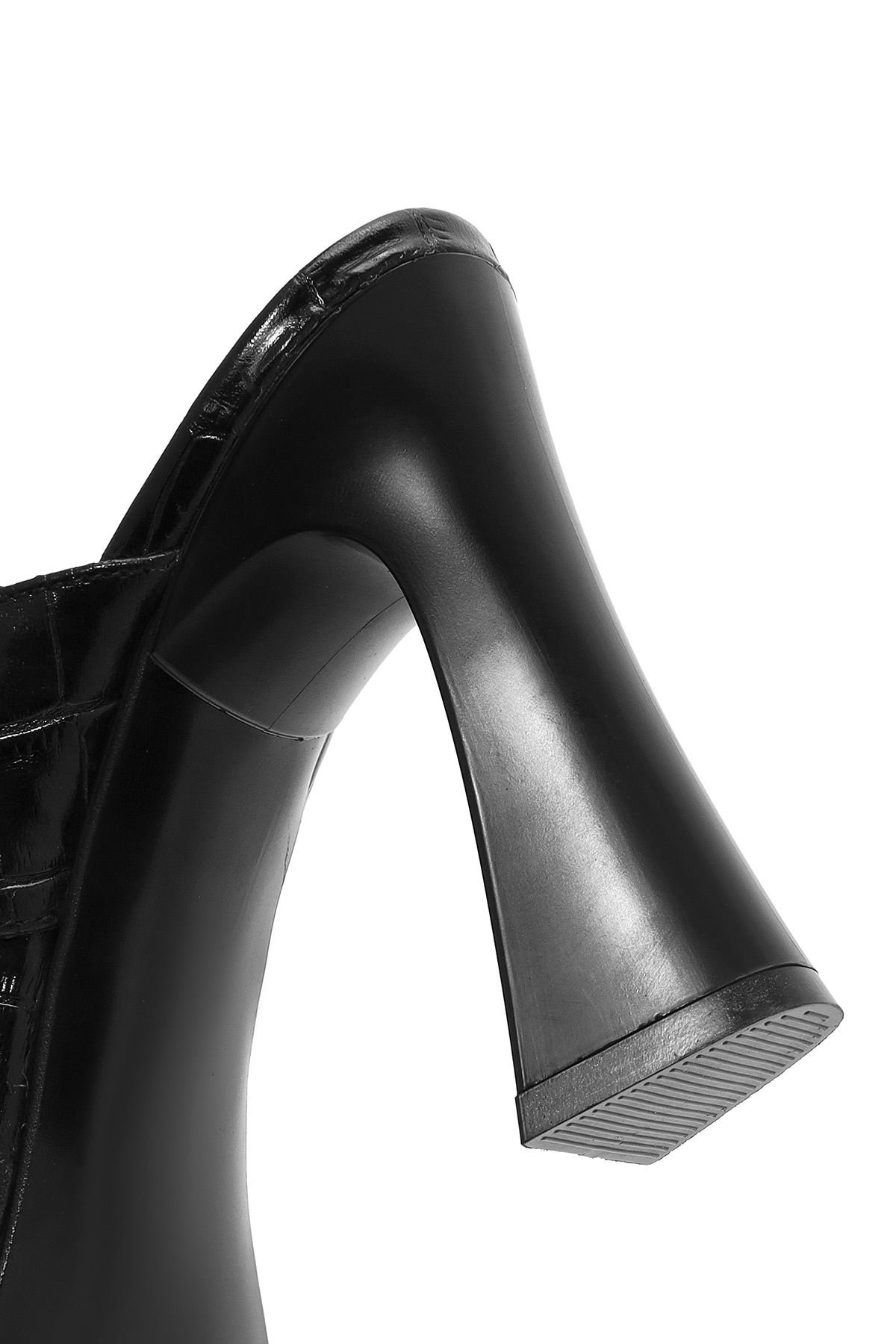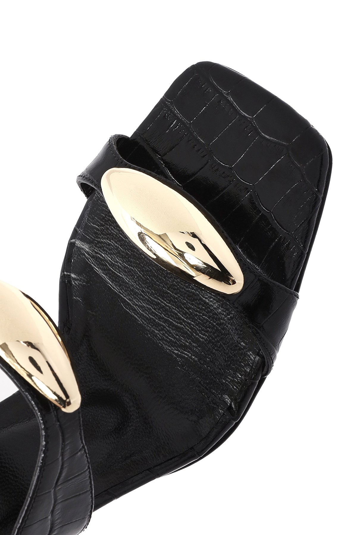 دمپایی زنانه چرم کروکو مشکی پاشنهبلند ضخیم دری مد