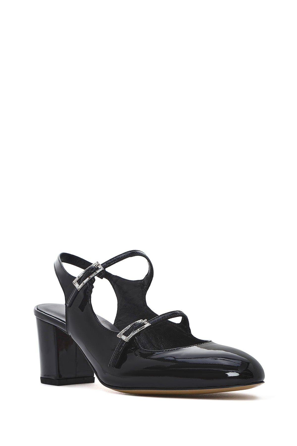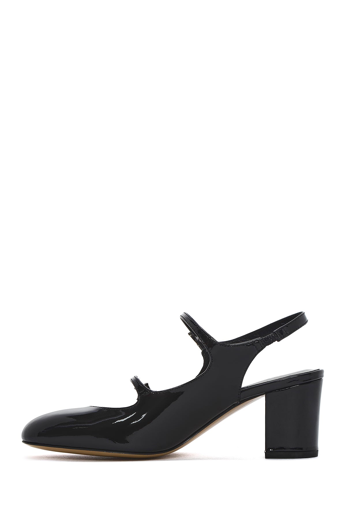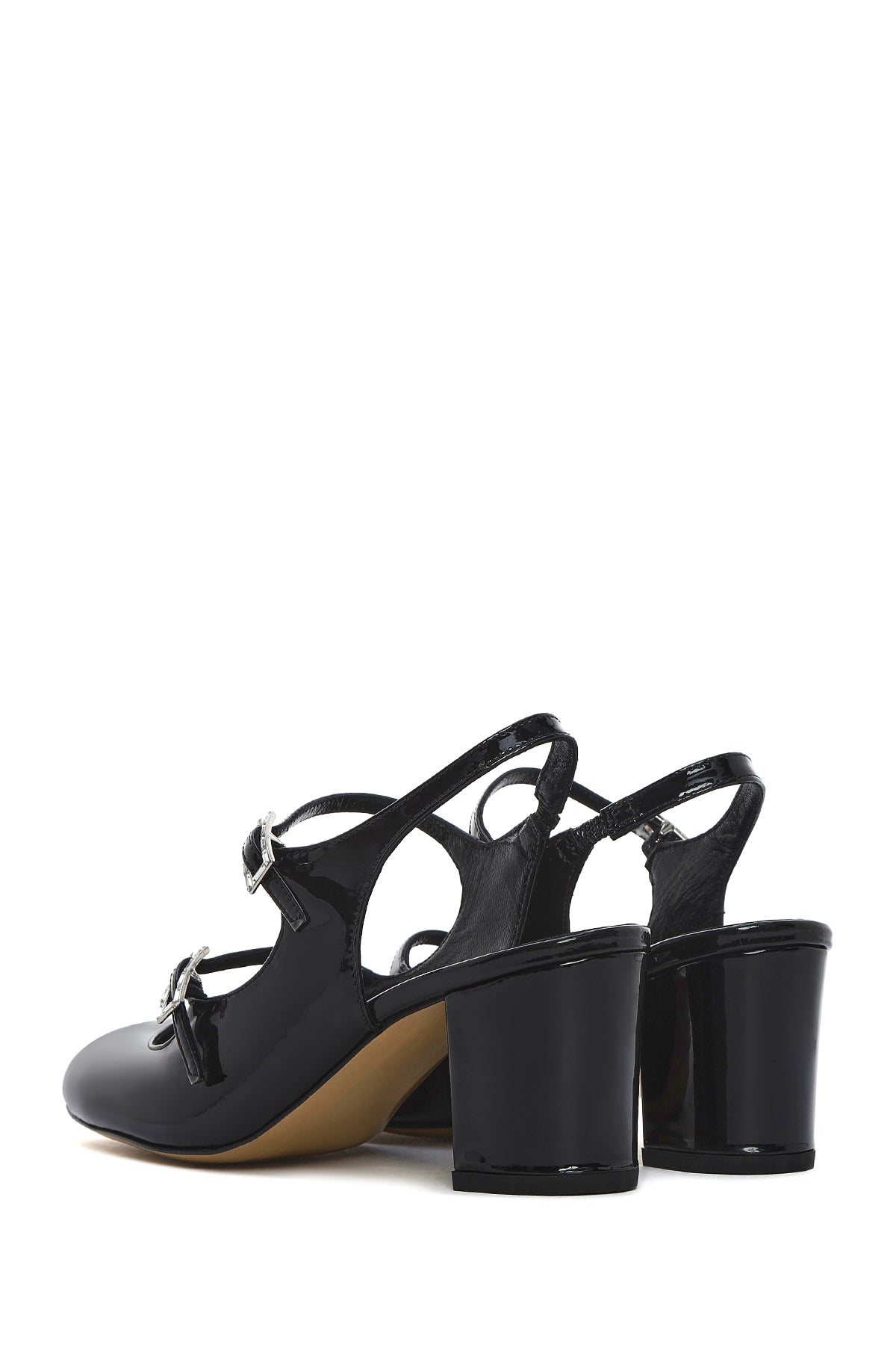 Kadın Siyah Çift Tokalı Arkası Açık Kalın Topuklu Rugan Deri Ayakkabı