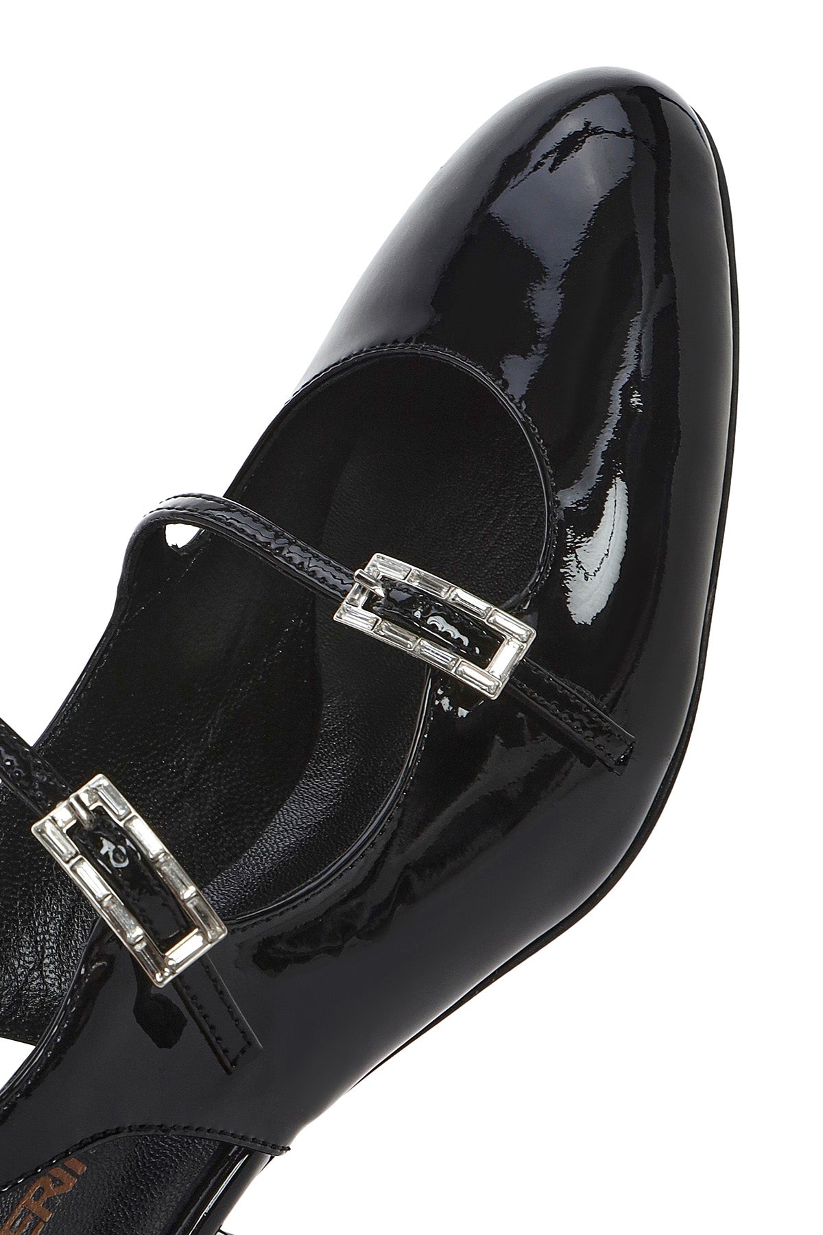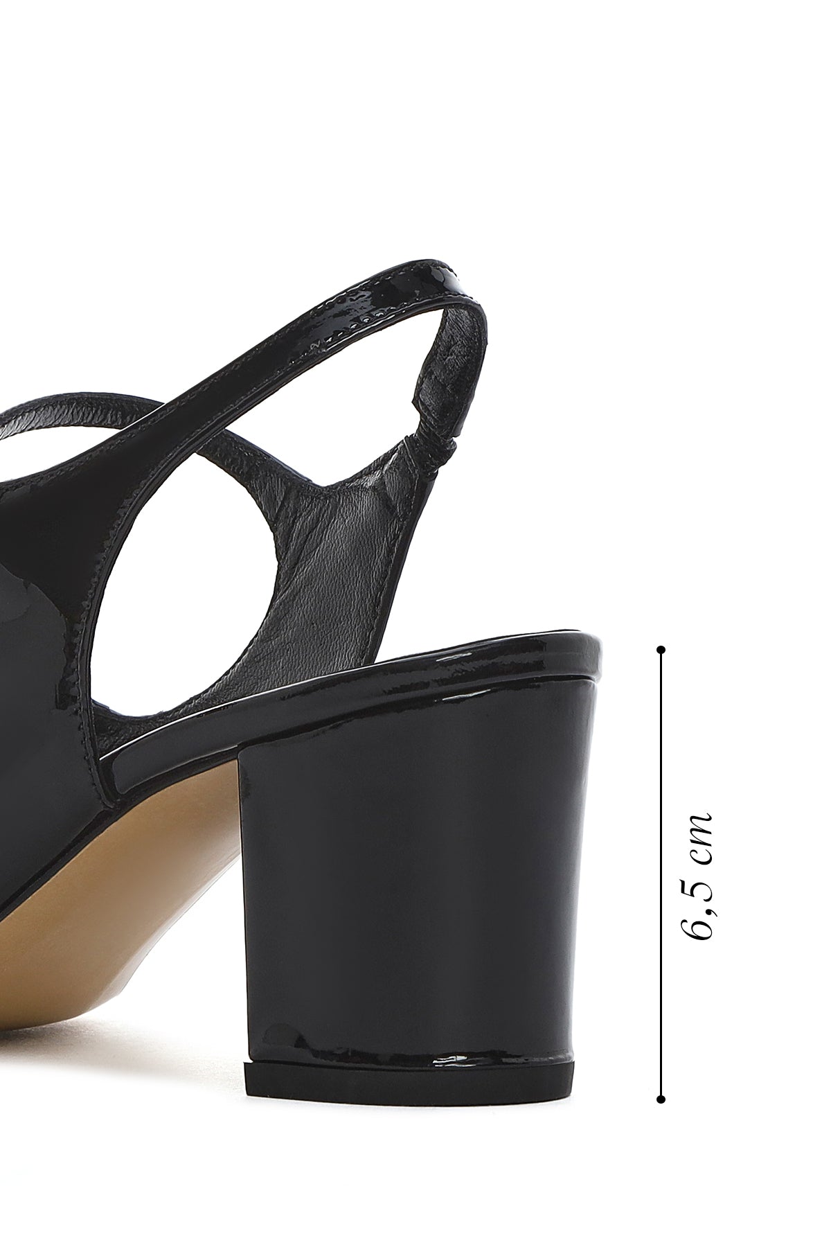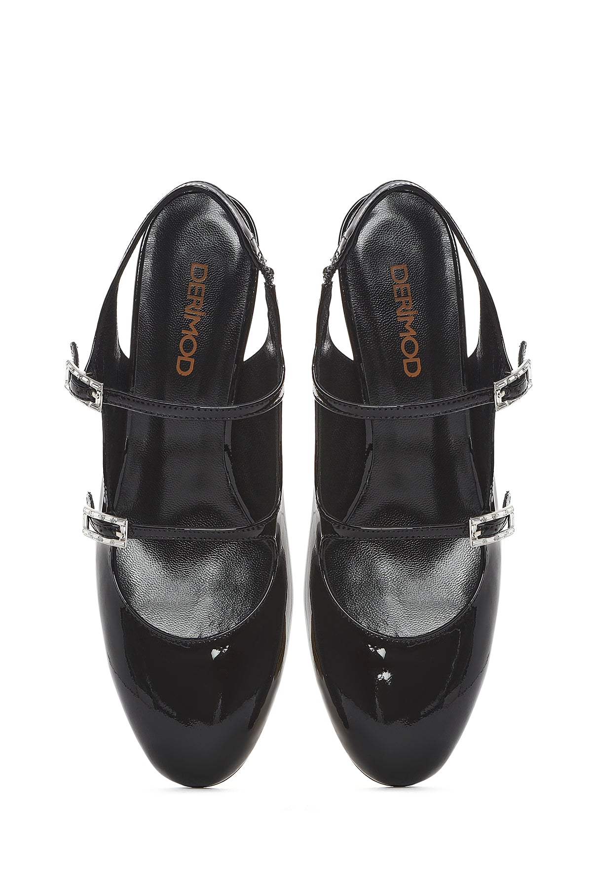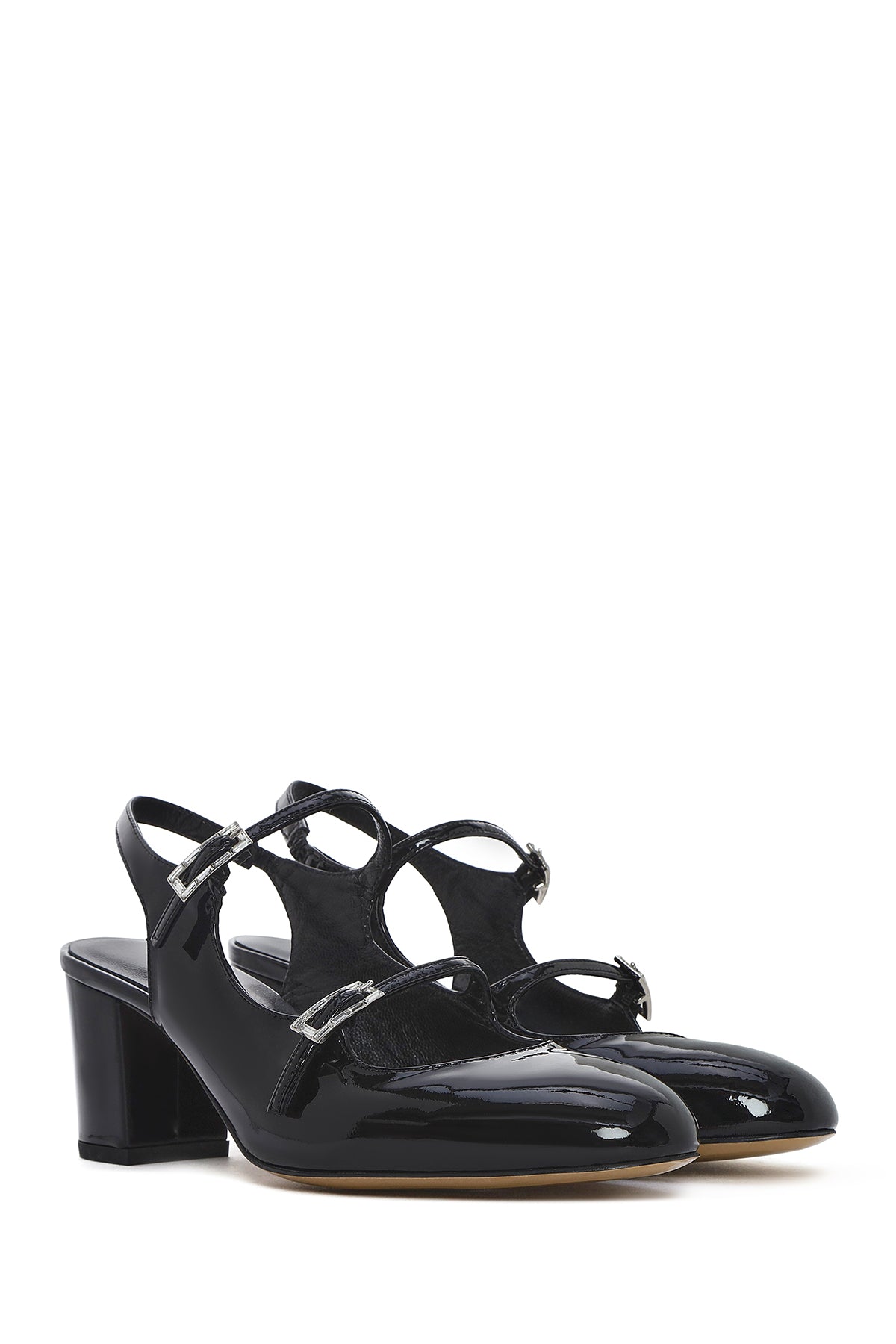 Kadın Siyah Çift Tokalı Arkası Açık Kalın Topuklu Rugan Deri Ayakkabı