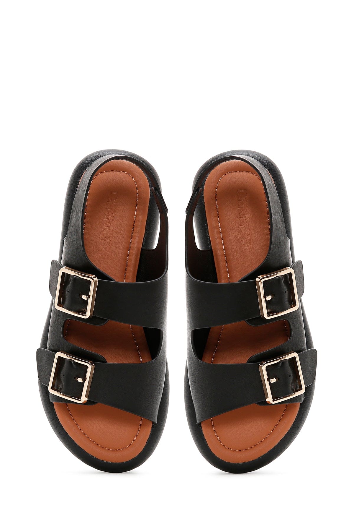 صندل زنانه مشکی دو بند سگکدار دری مد