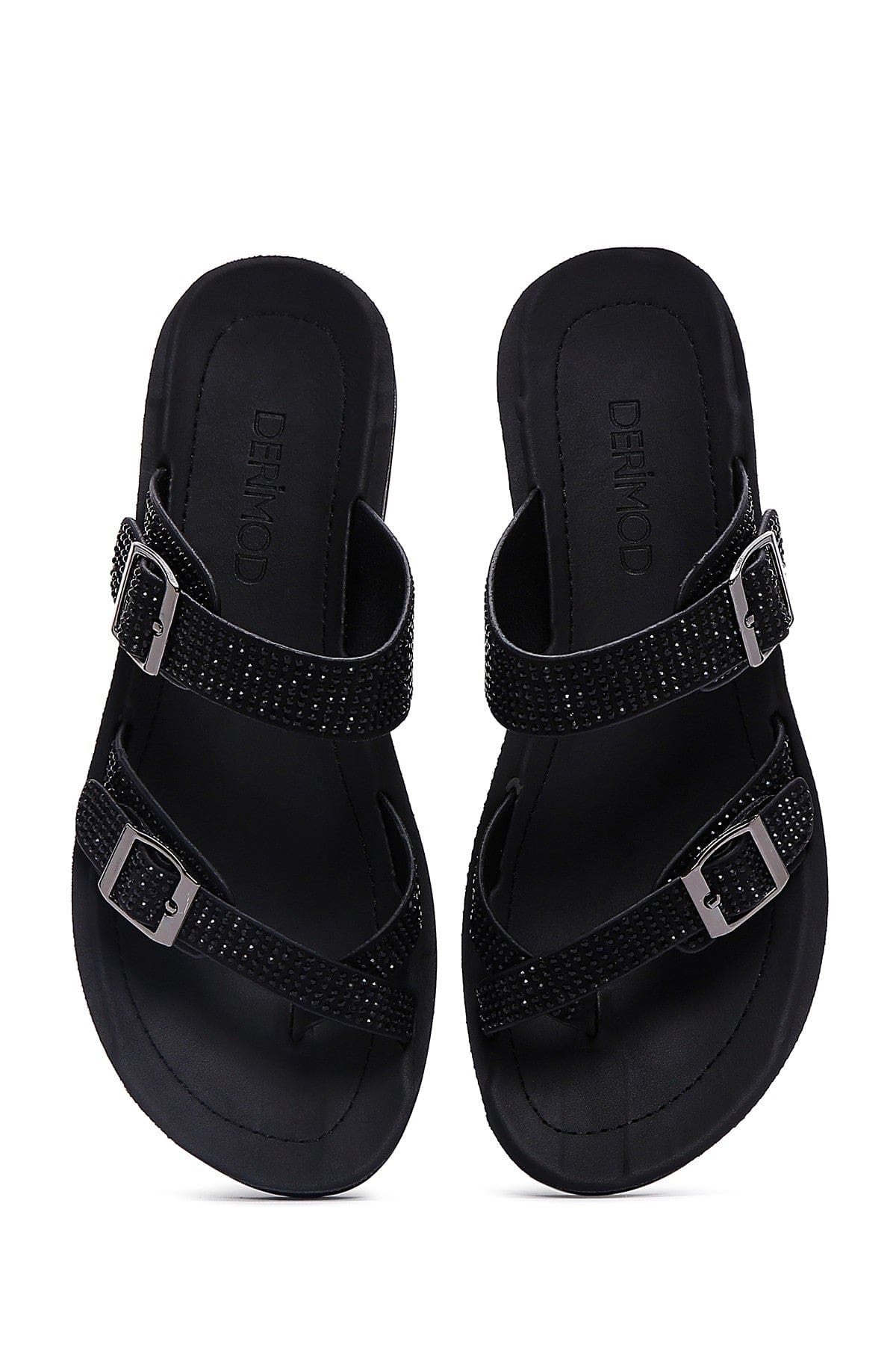 دمپایی زنانه مشکی سگکدار نگیندار دری مد