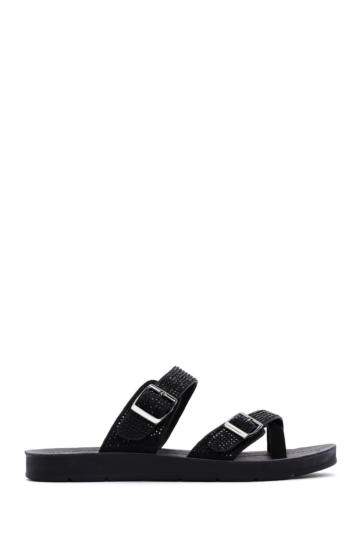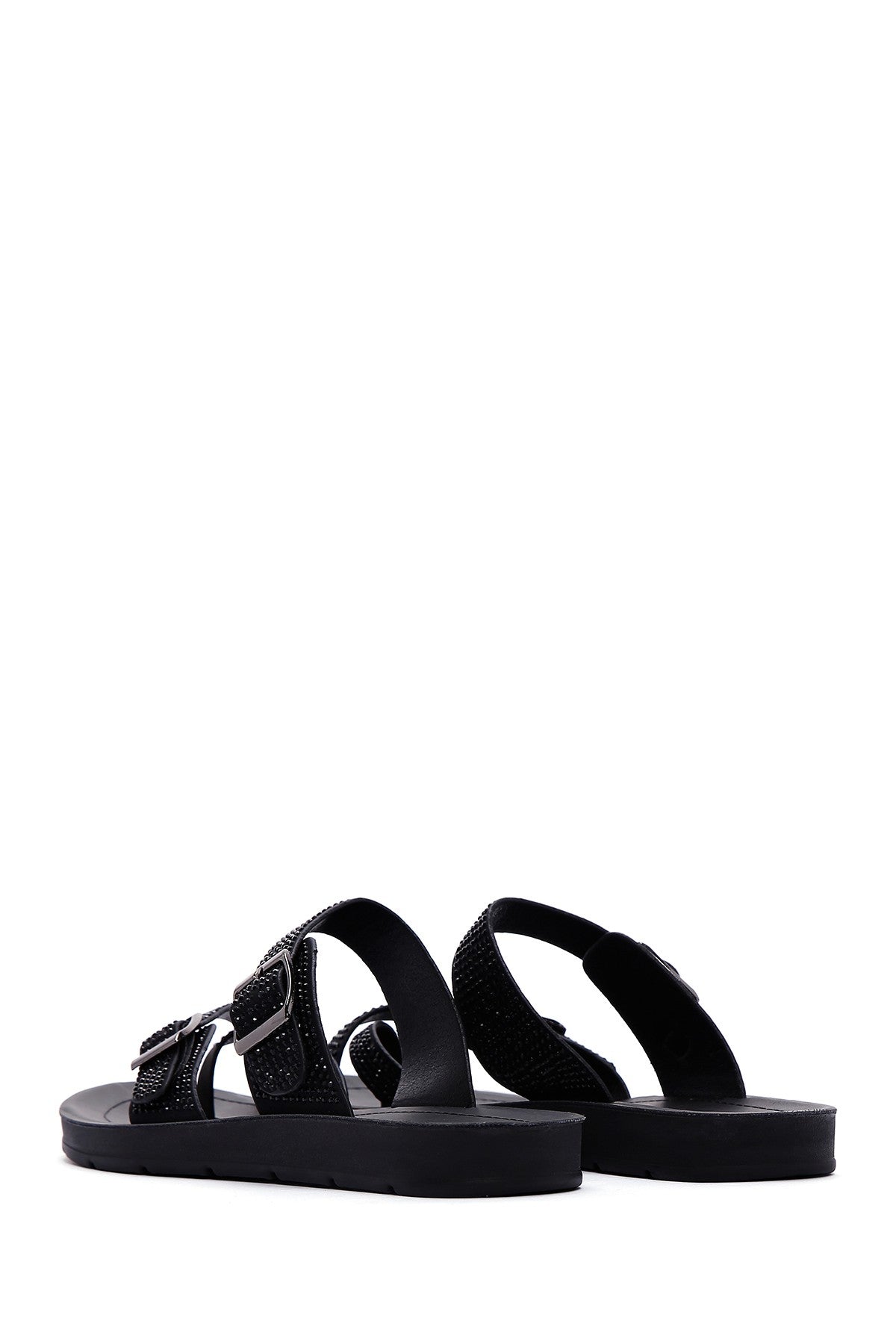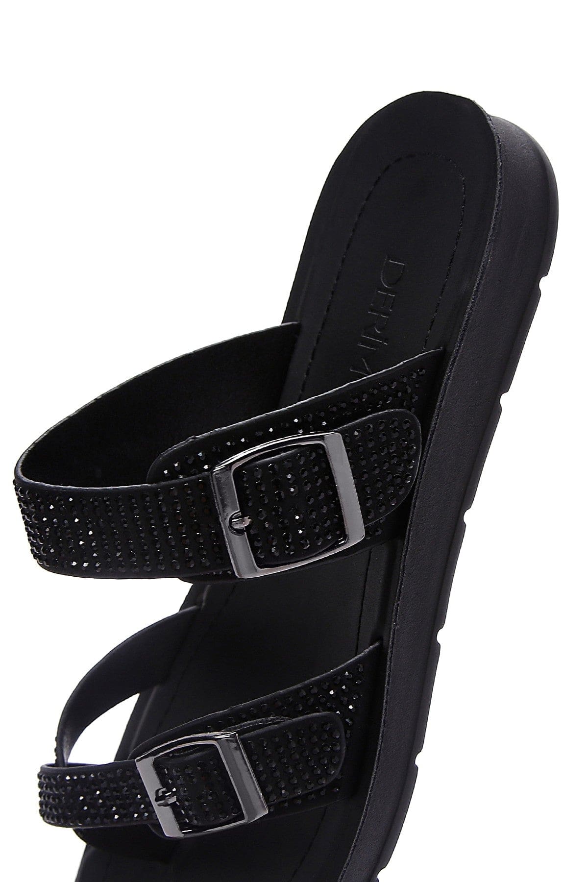 Kadın Siyah Çift Tokalı Taşlı Terlik