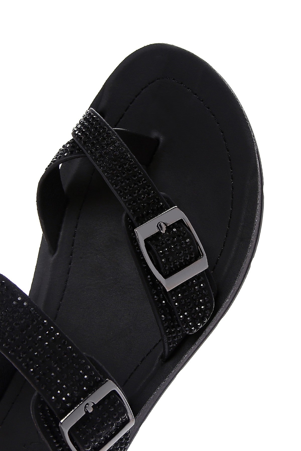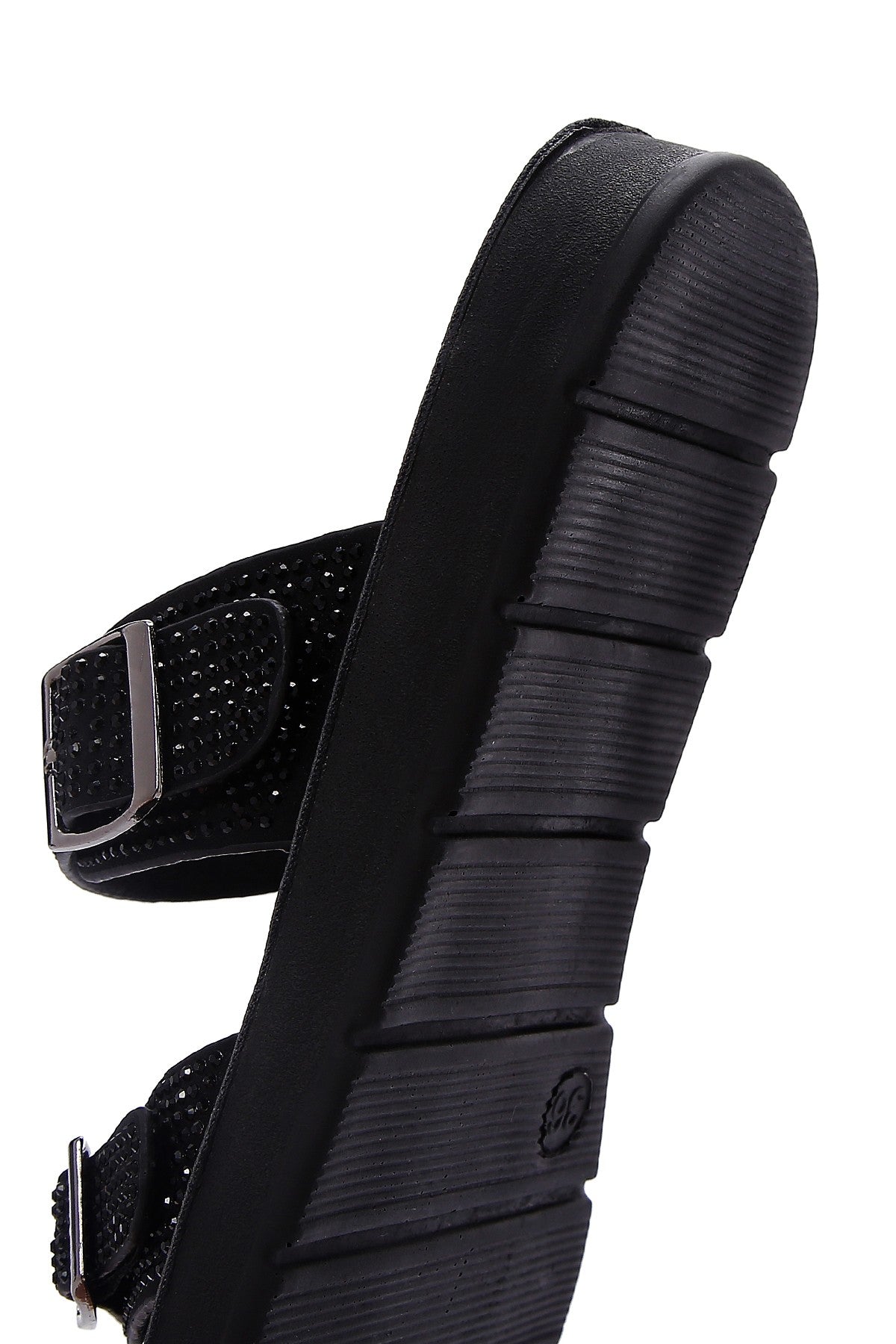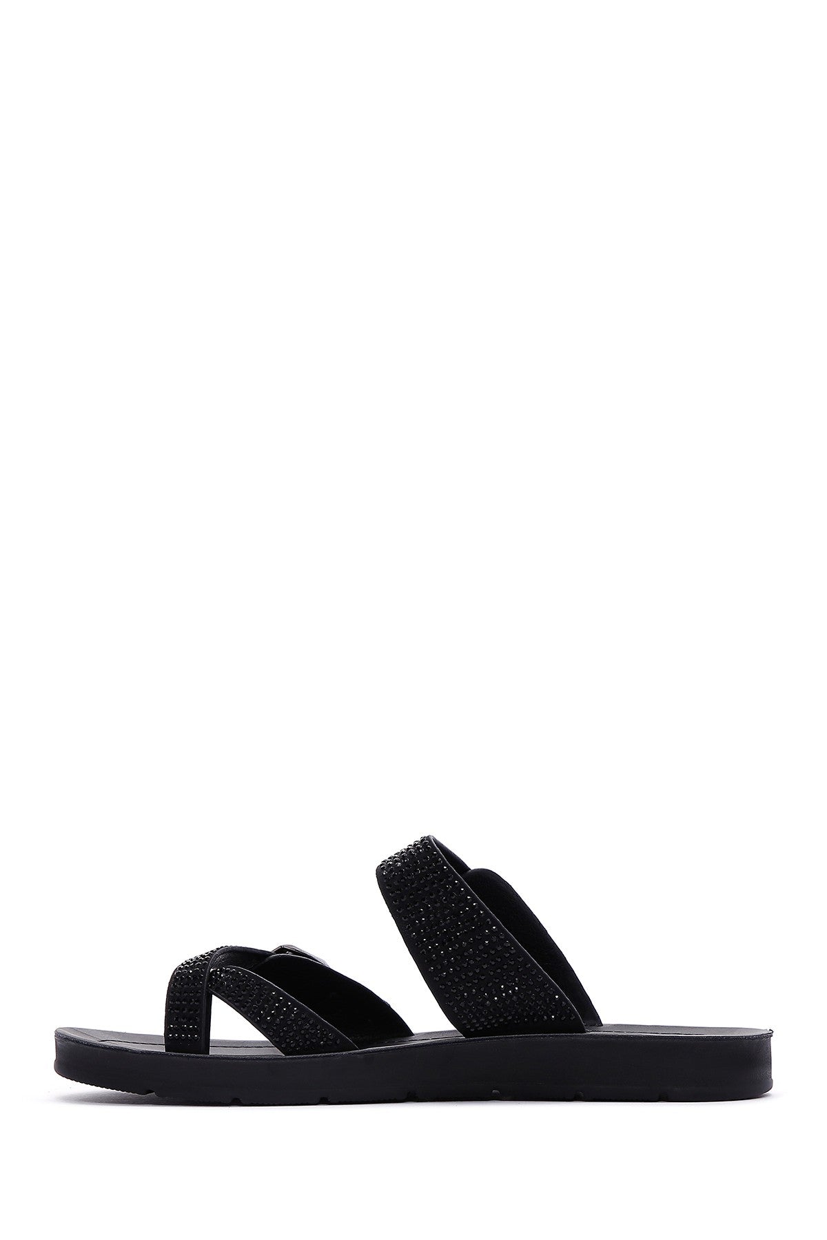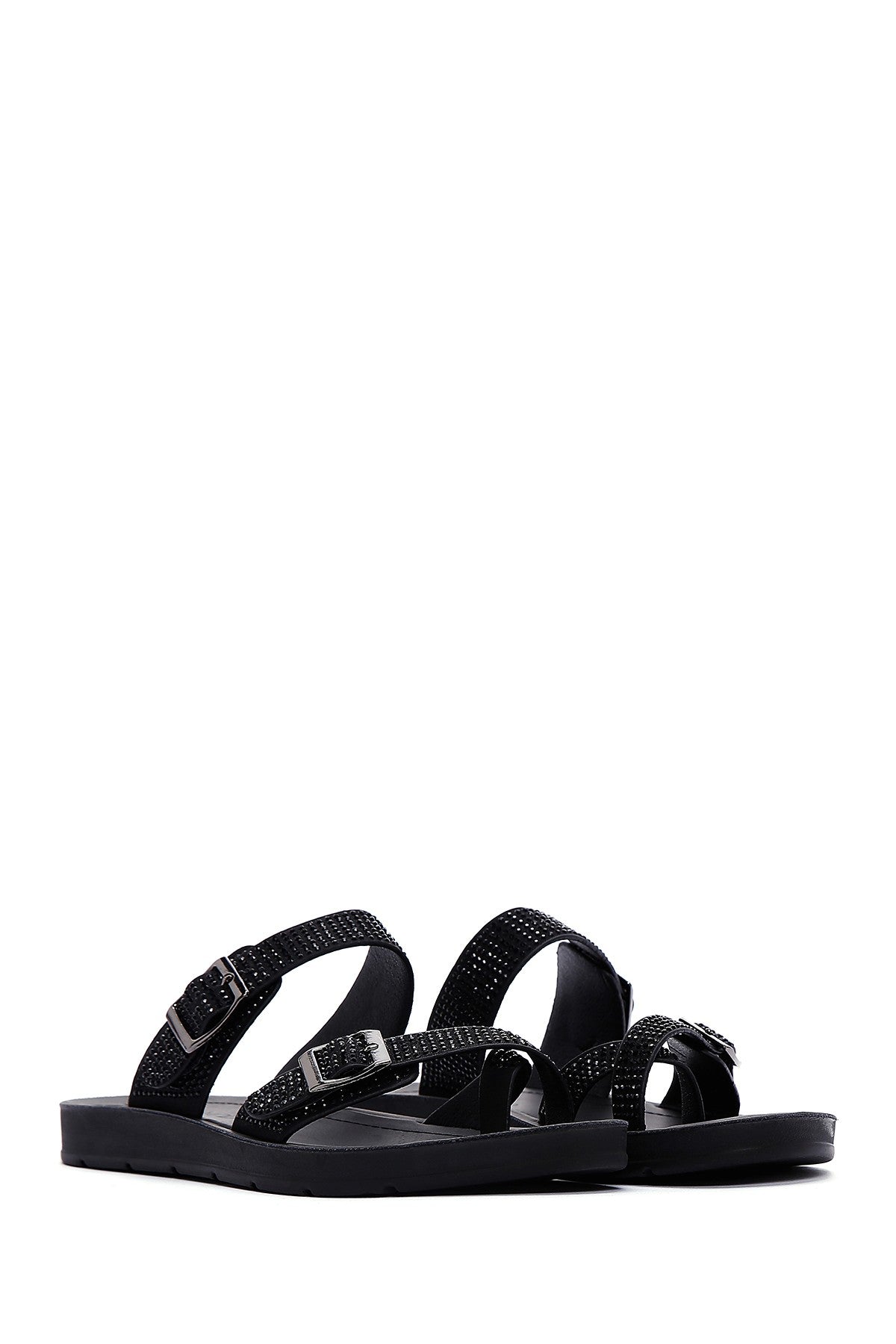 Kadın Siyah Çift Tokalı Taşlı Terlik