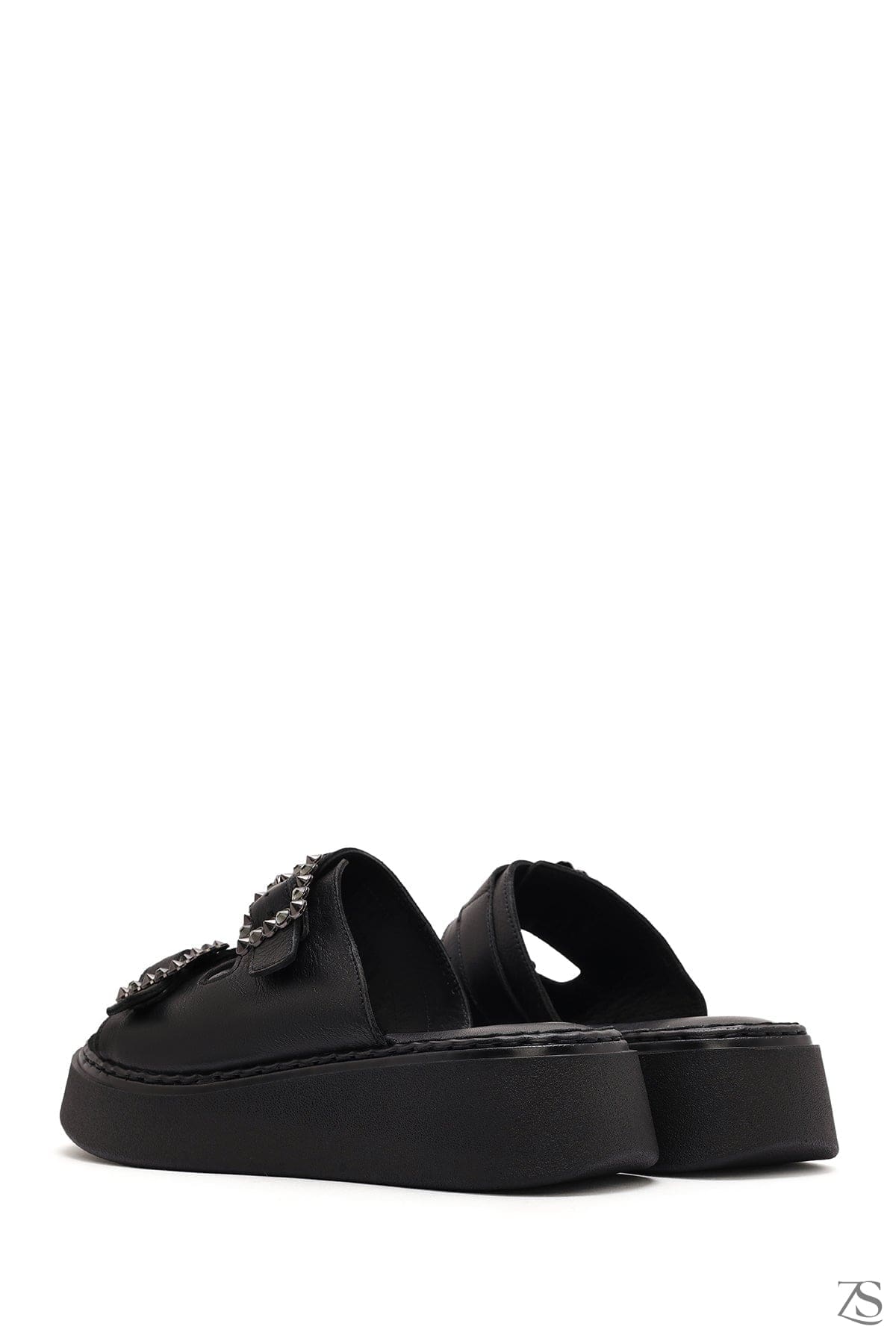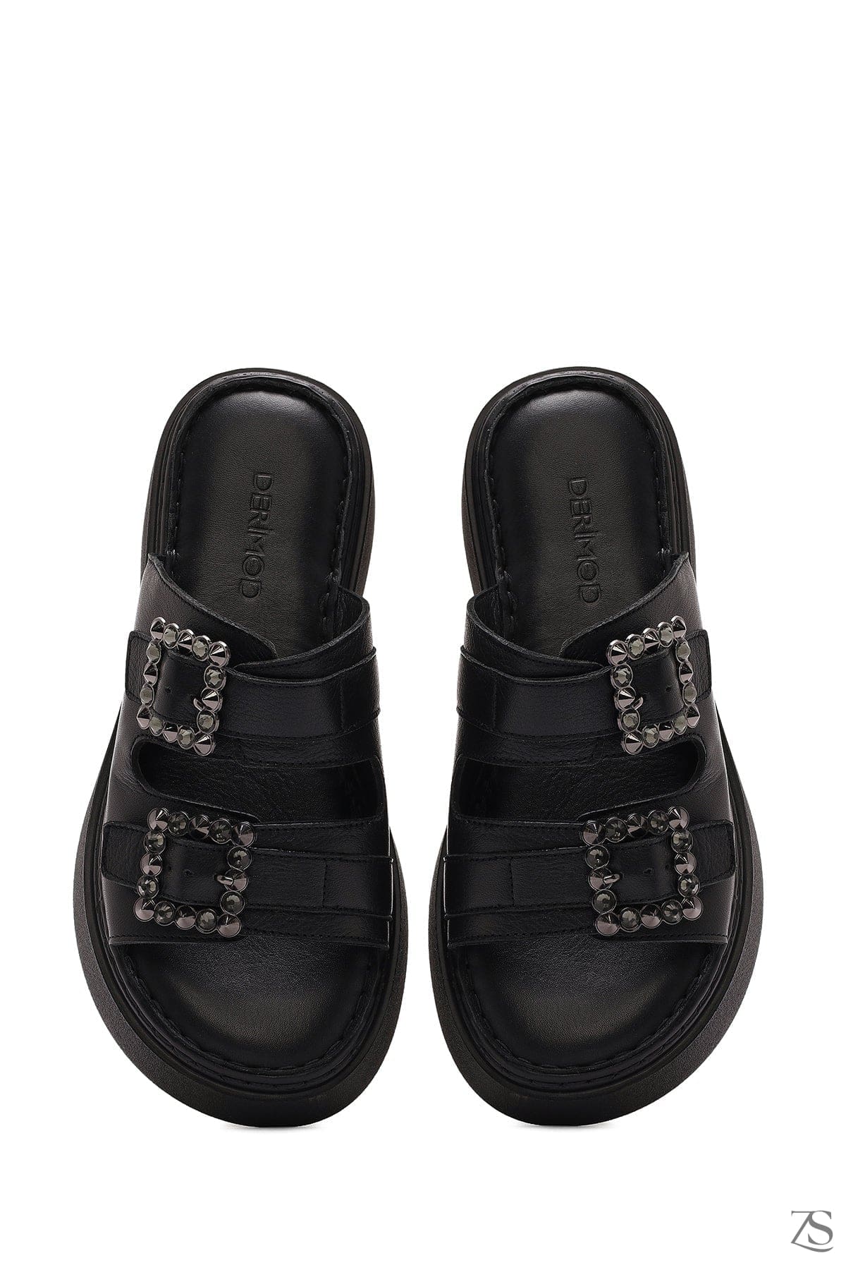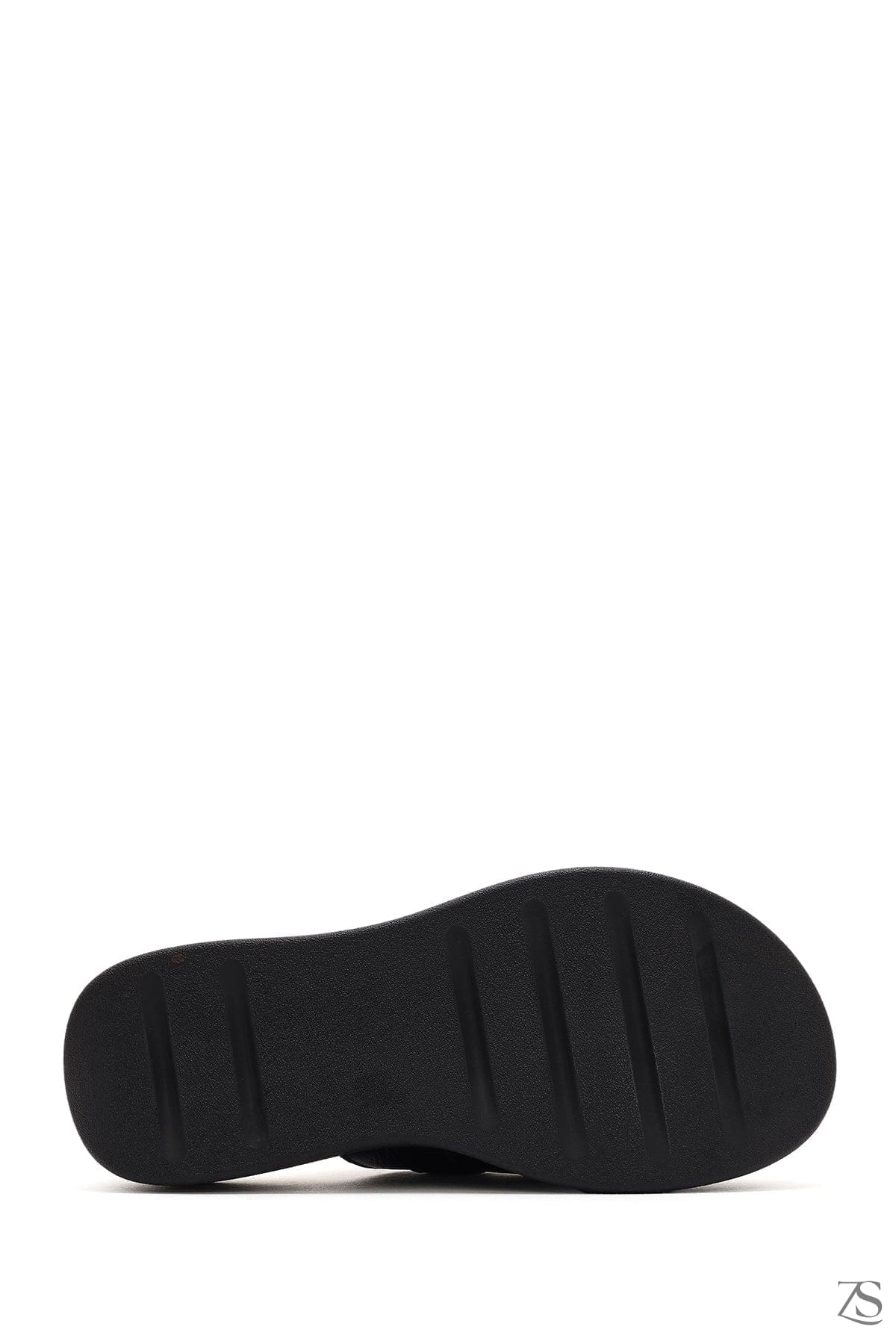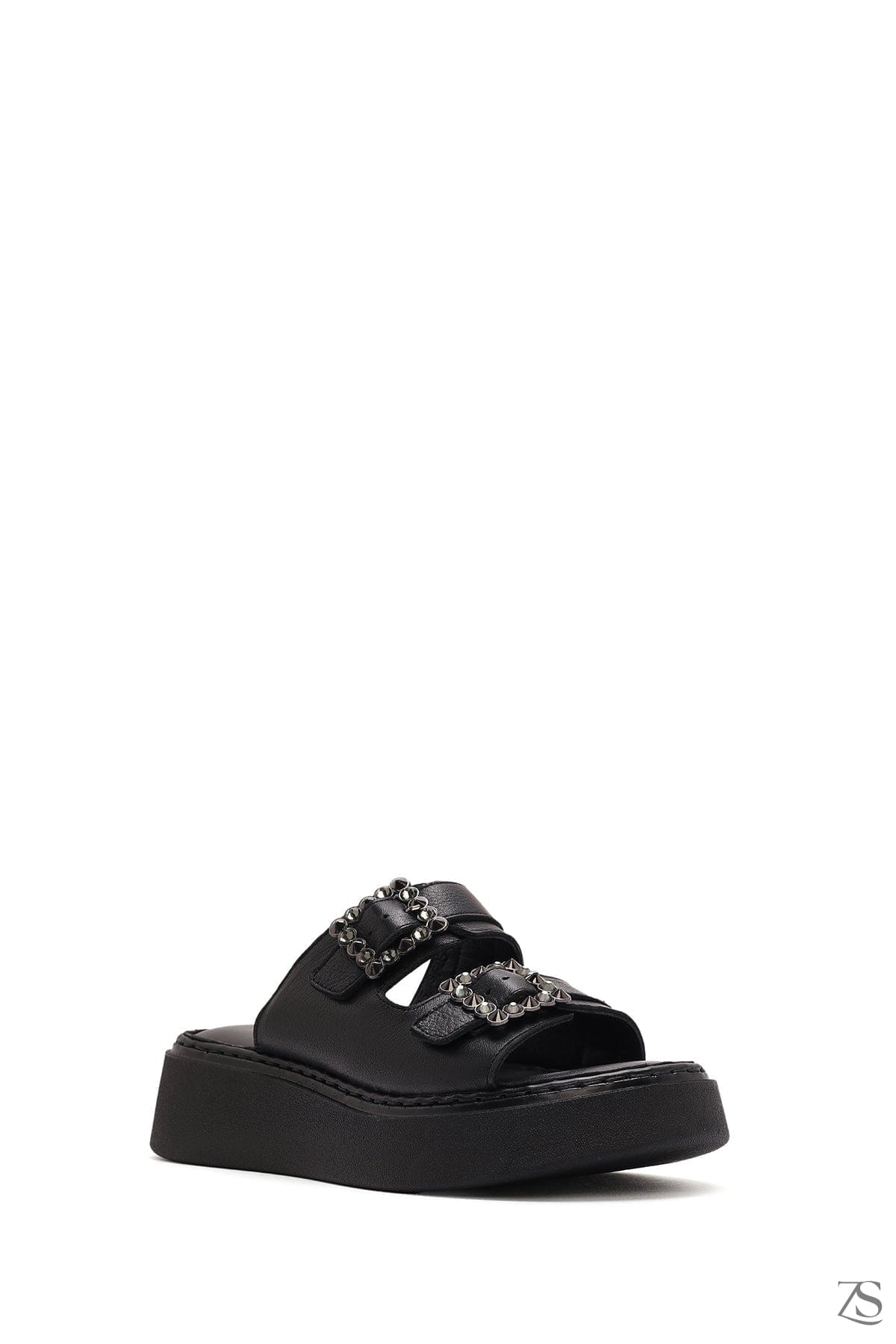دمپایی راحتی زنانه چرم مشکی سگکدار ضخیمتنه دری مد
