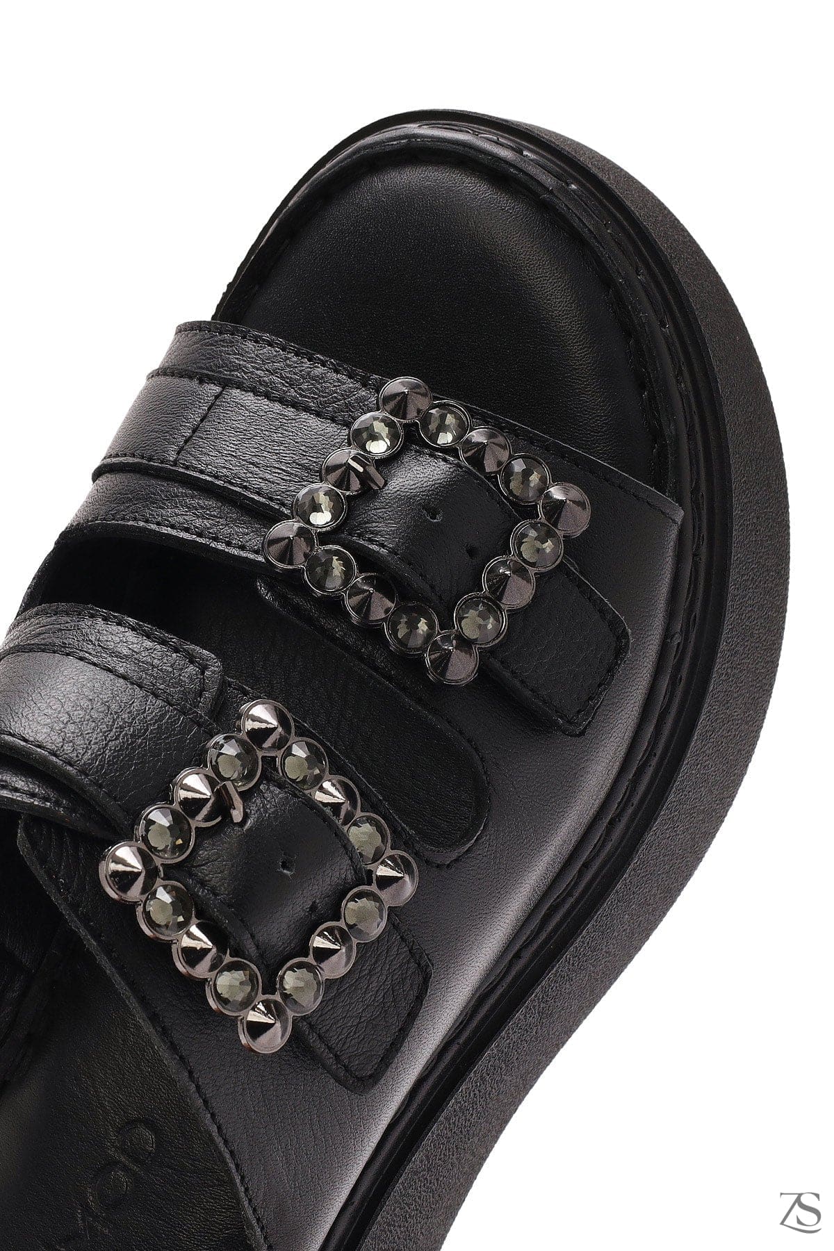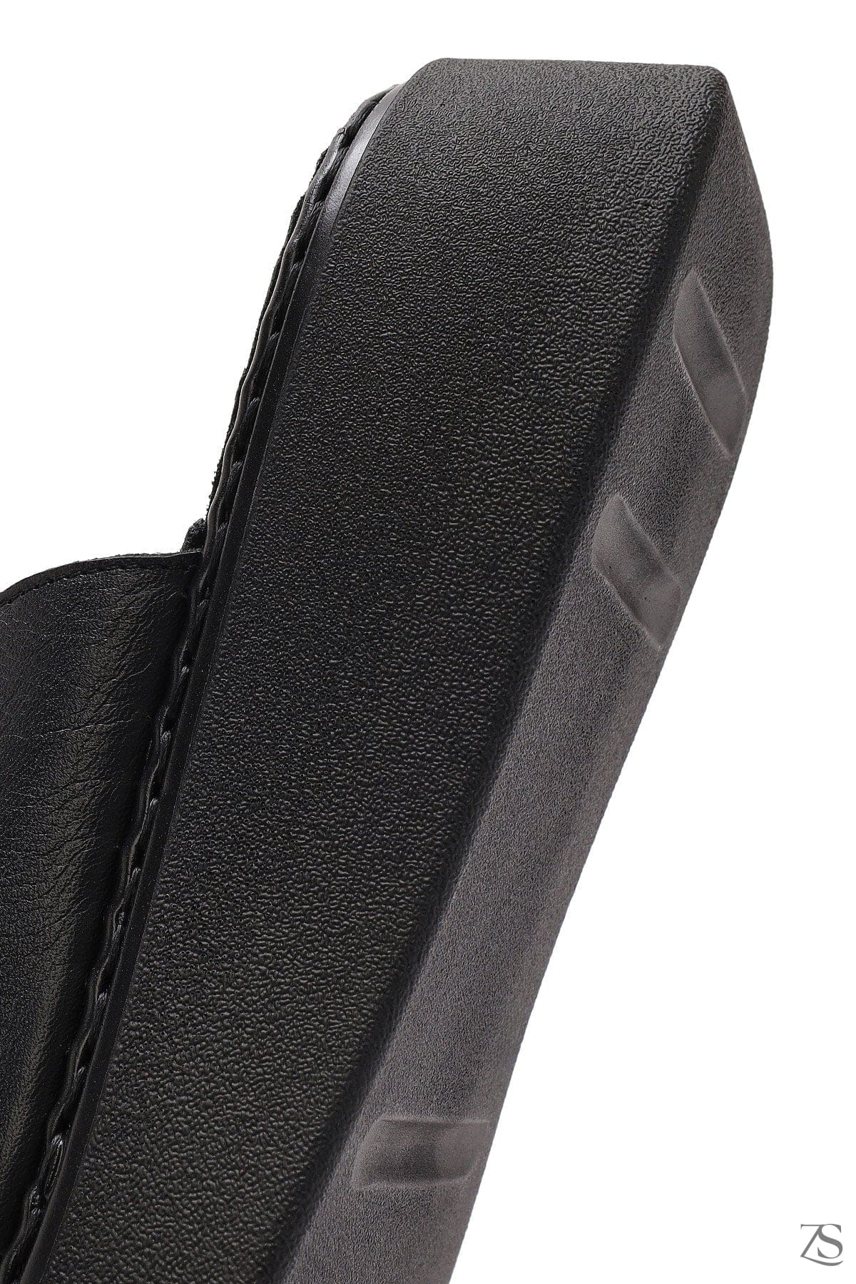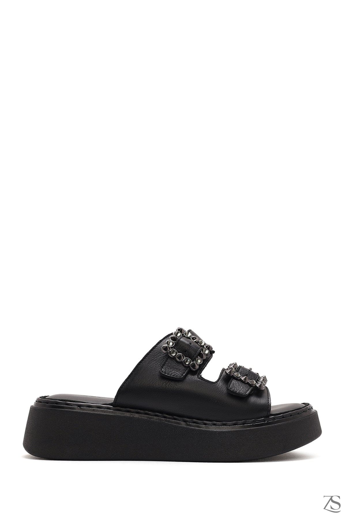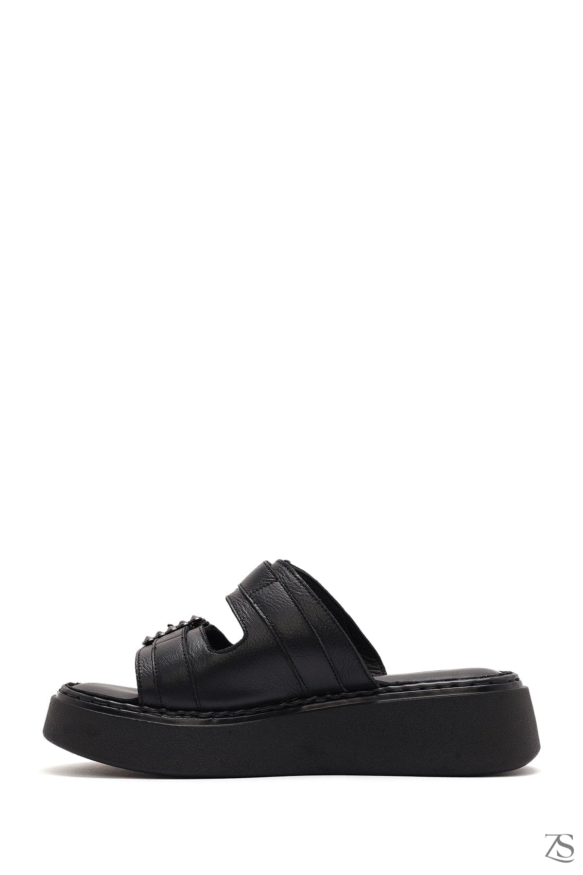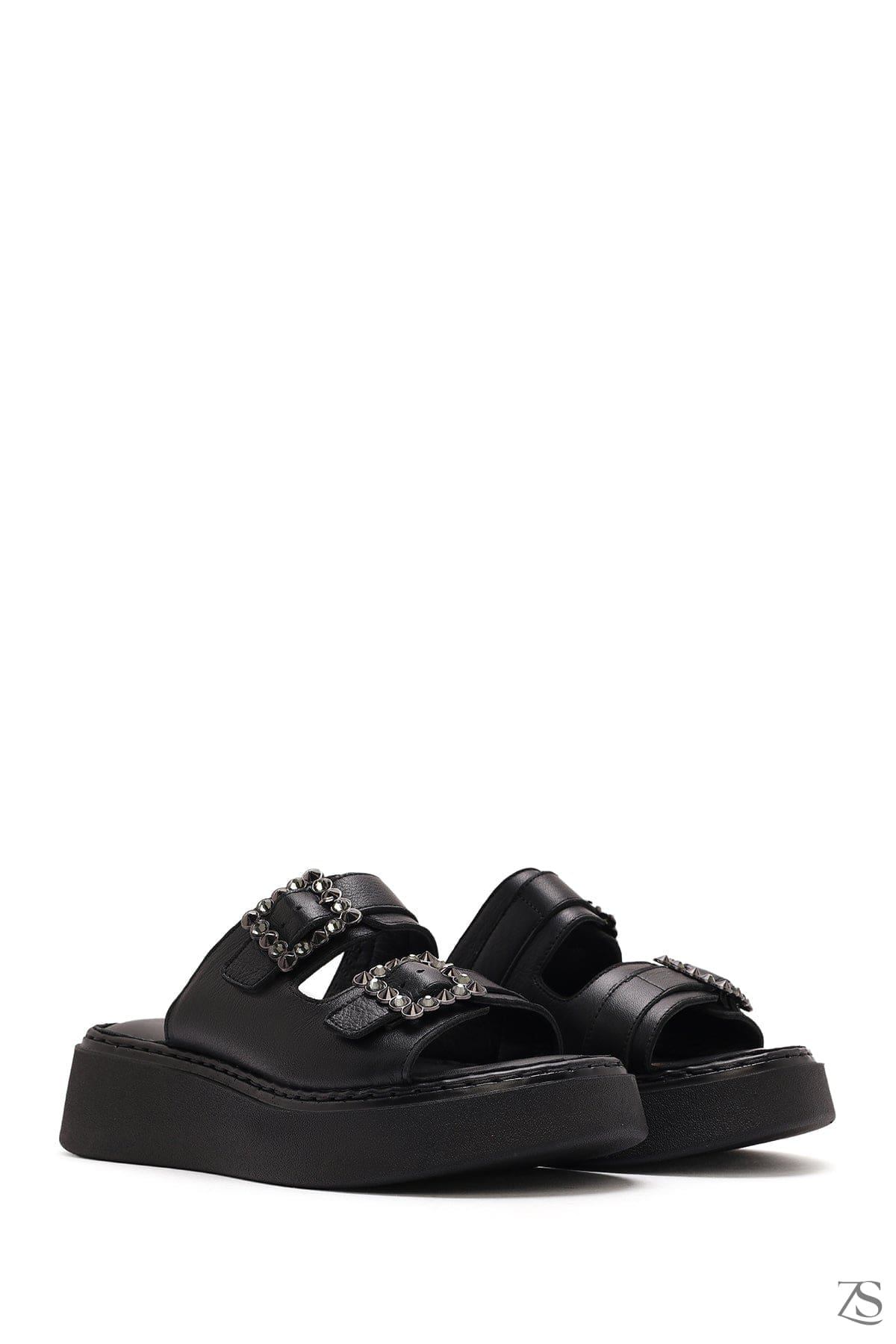 دمپایی راحتی زنانه چرم مشکی سگکدار ضخیمتنه دری مد