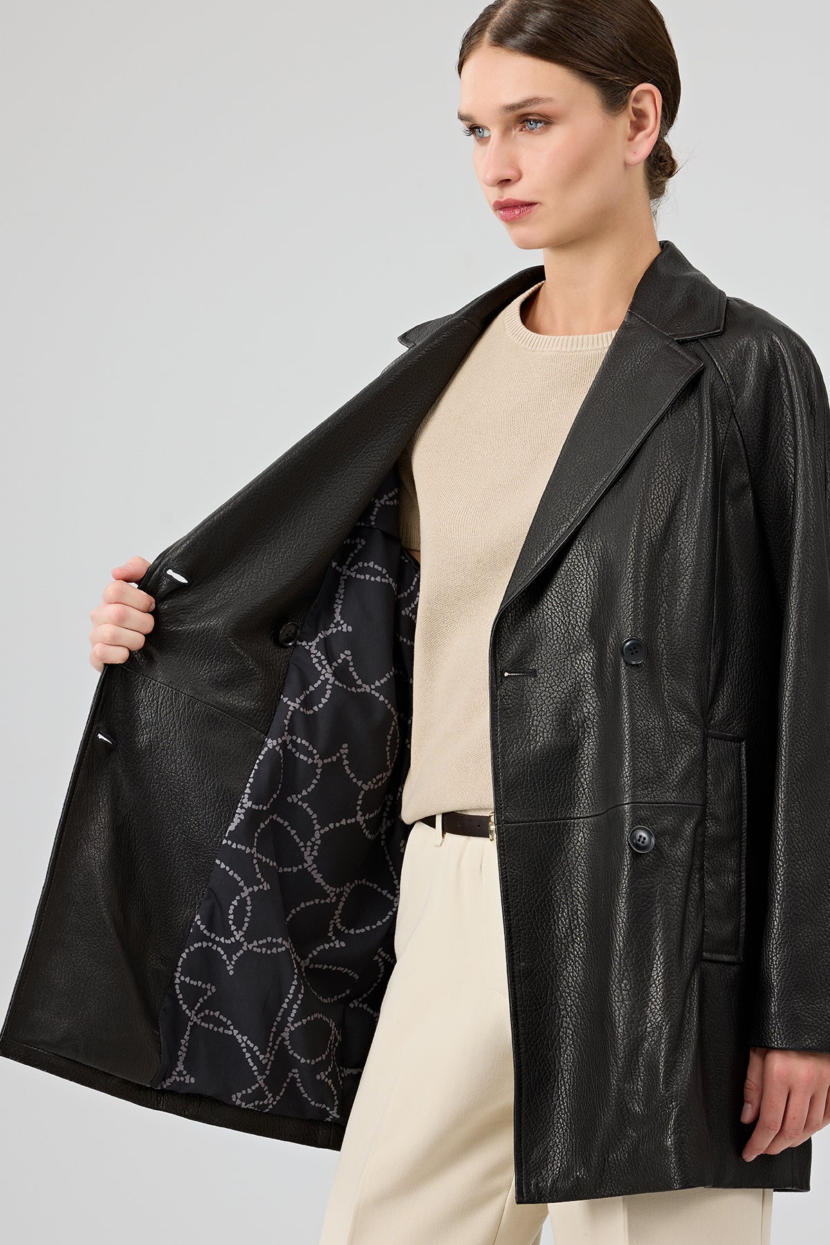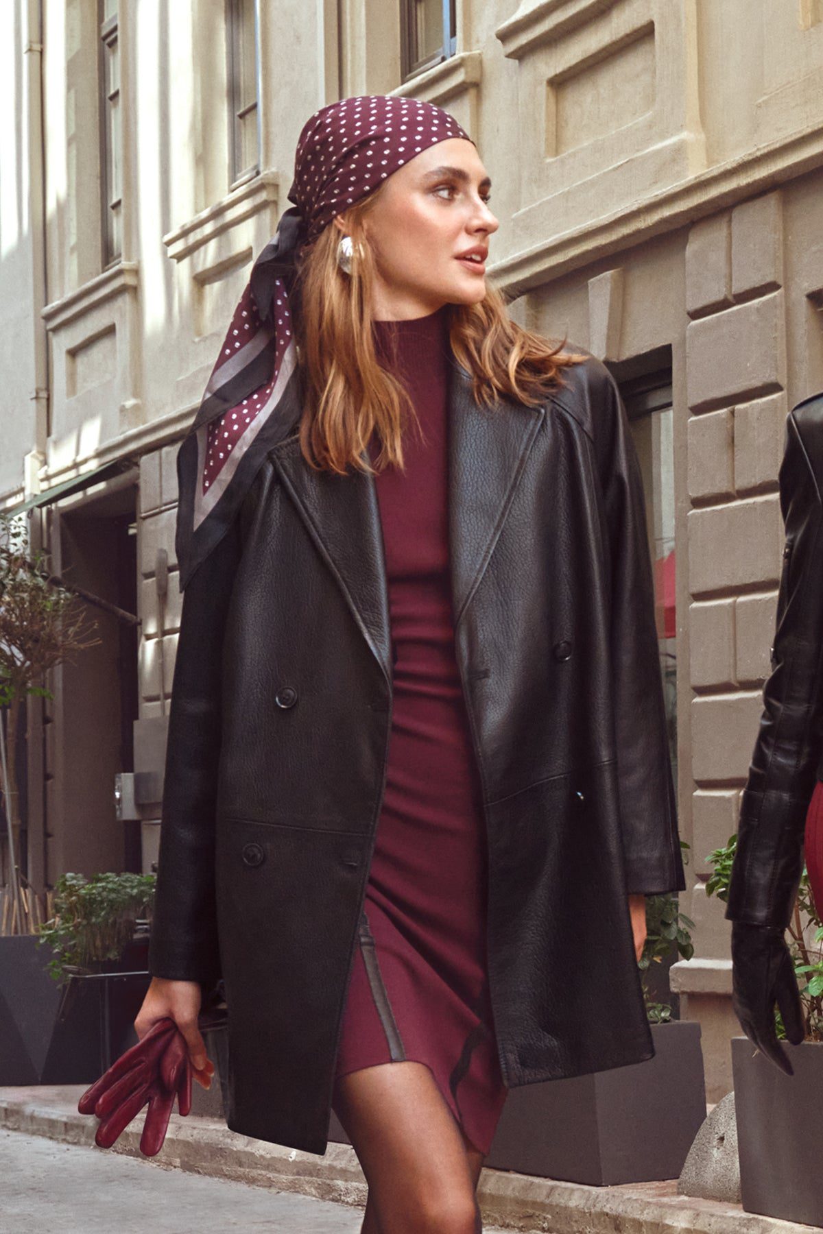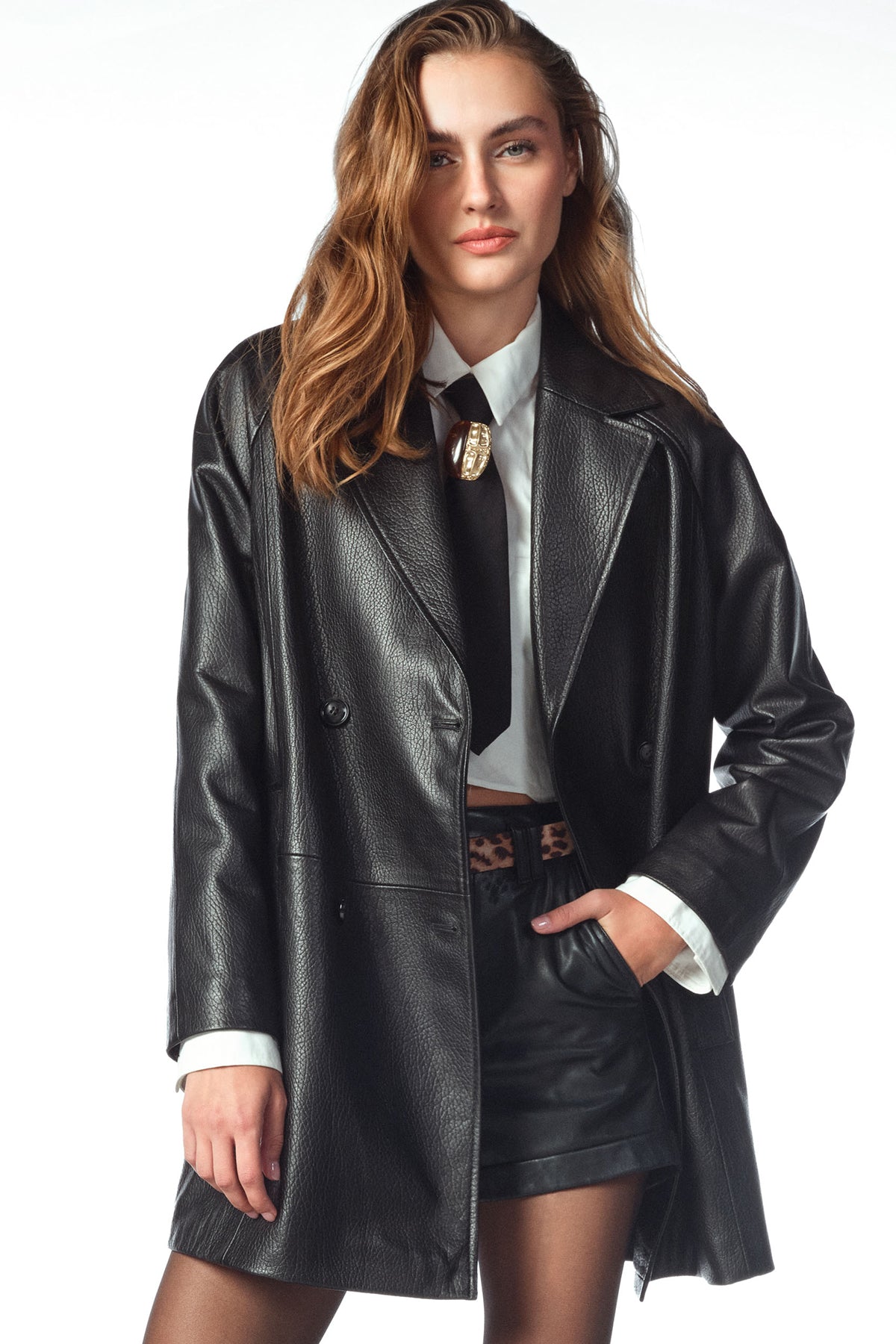کت چرمی زنانه مشکی یقه کرواتی بلند Wendy دری مد
