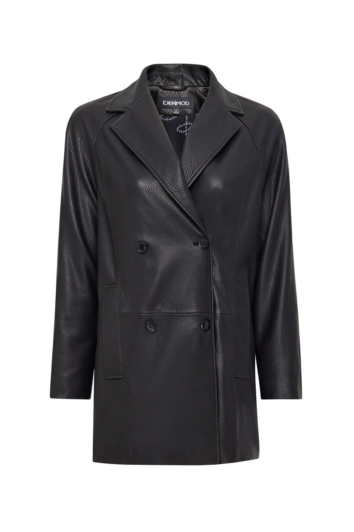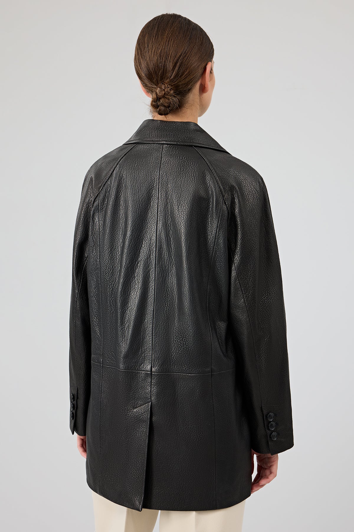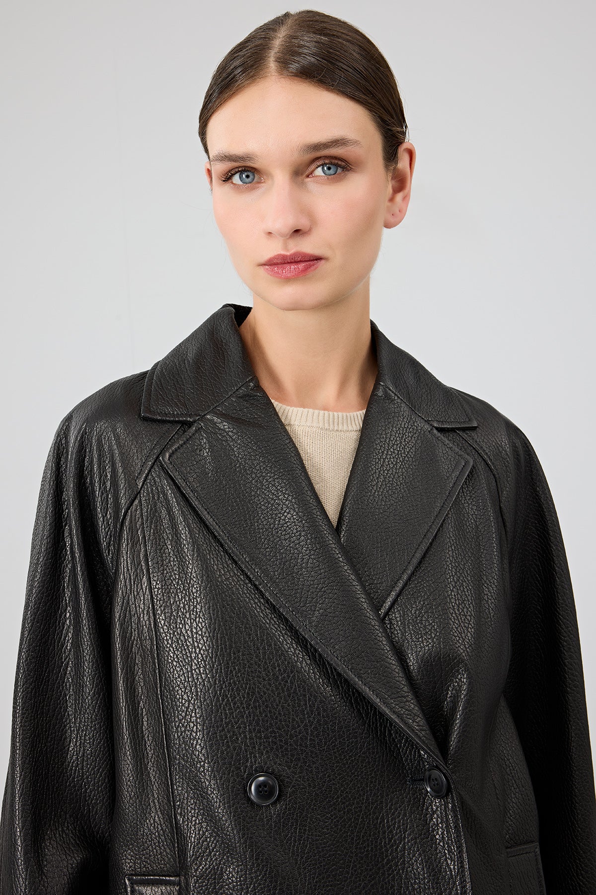 کت چرمی زنانه مشکی یقه کرواتی بلند Wendy دری مد