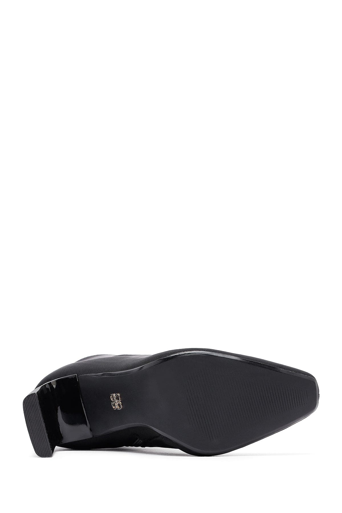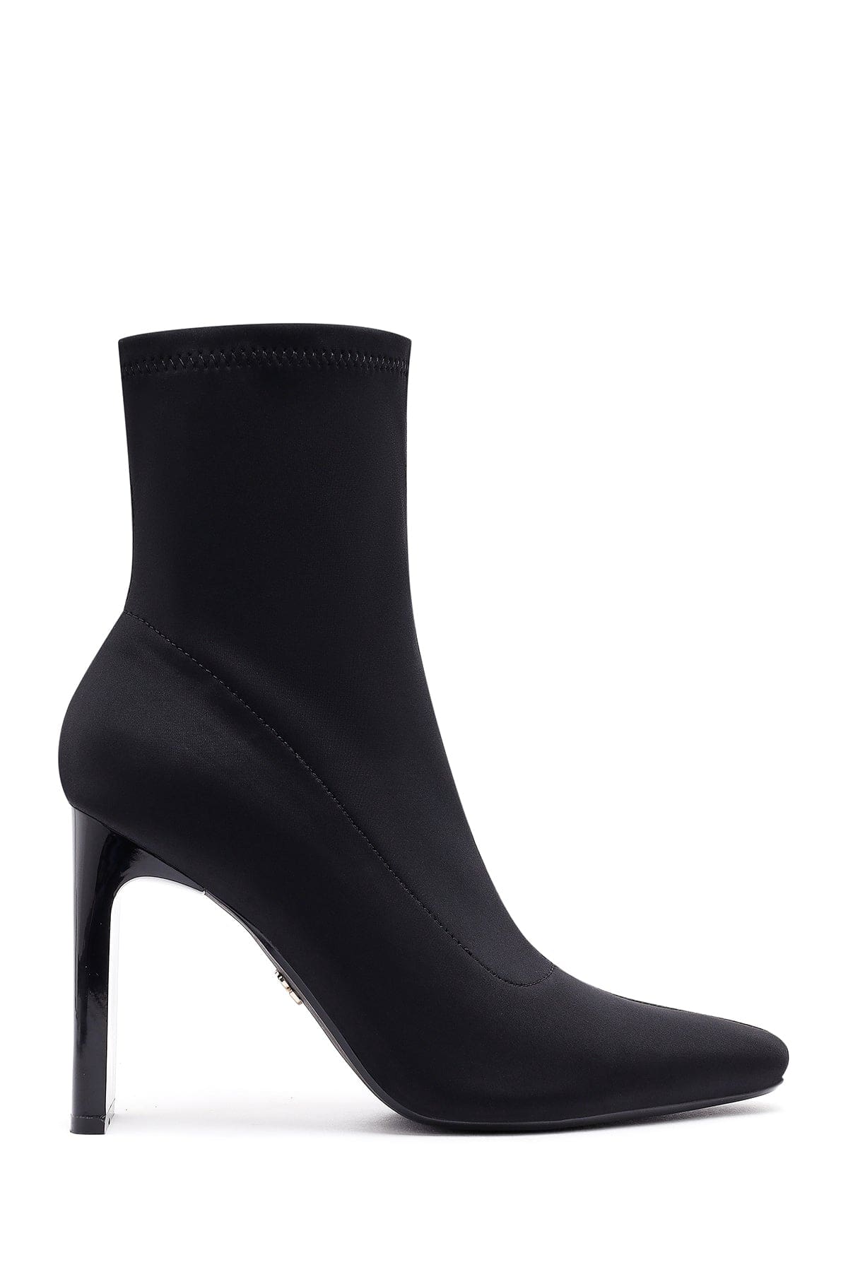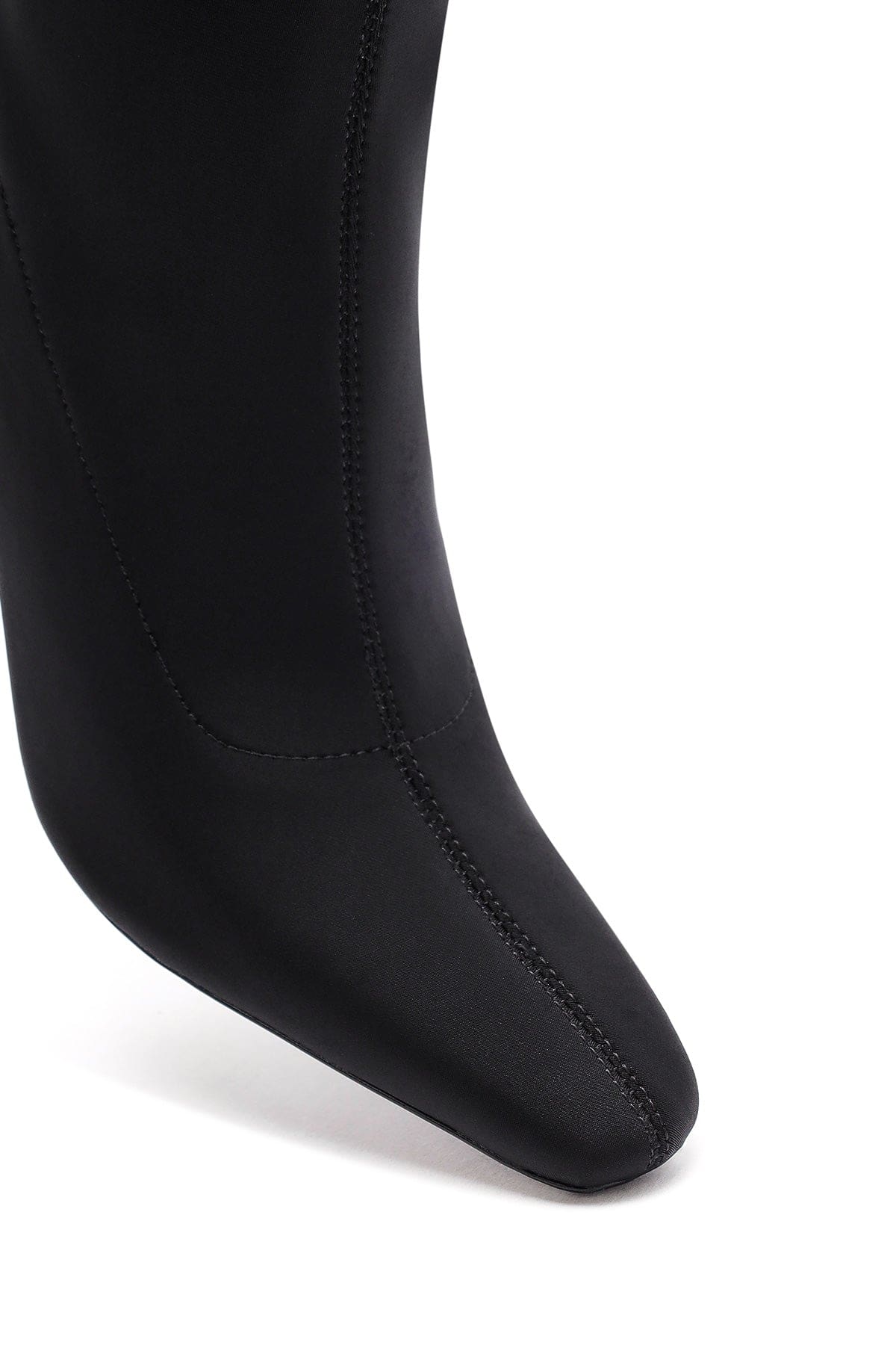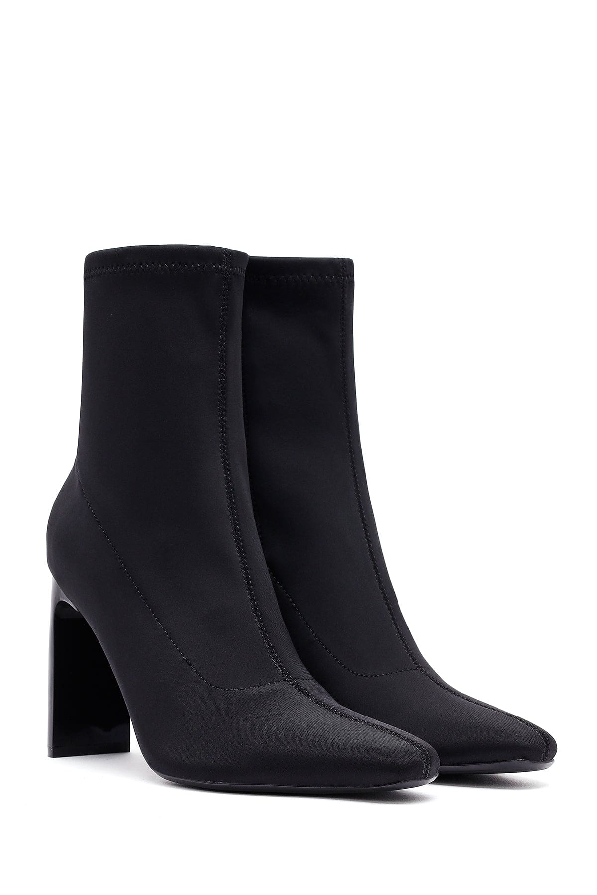Kadın Siyah Fermuarlı Yüksek Kalın Topuklu Kumaş Bot