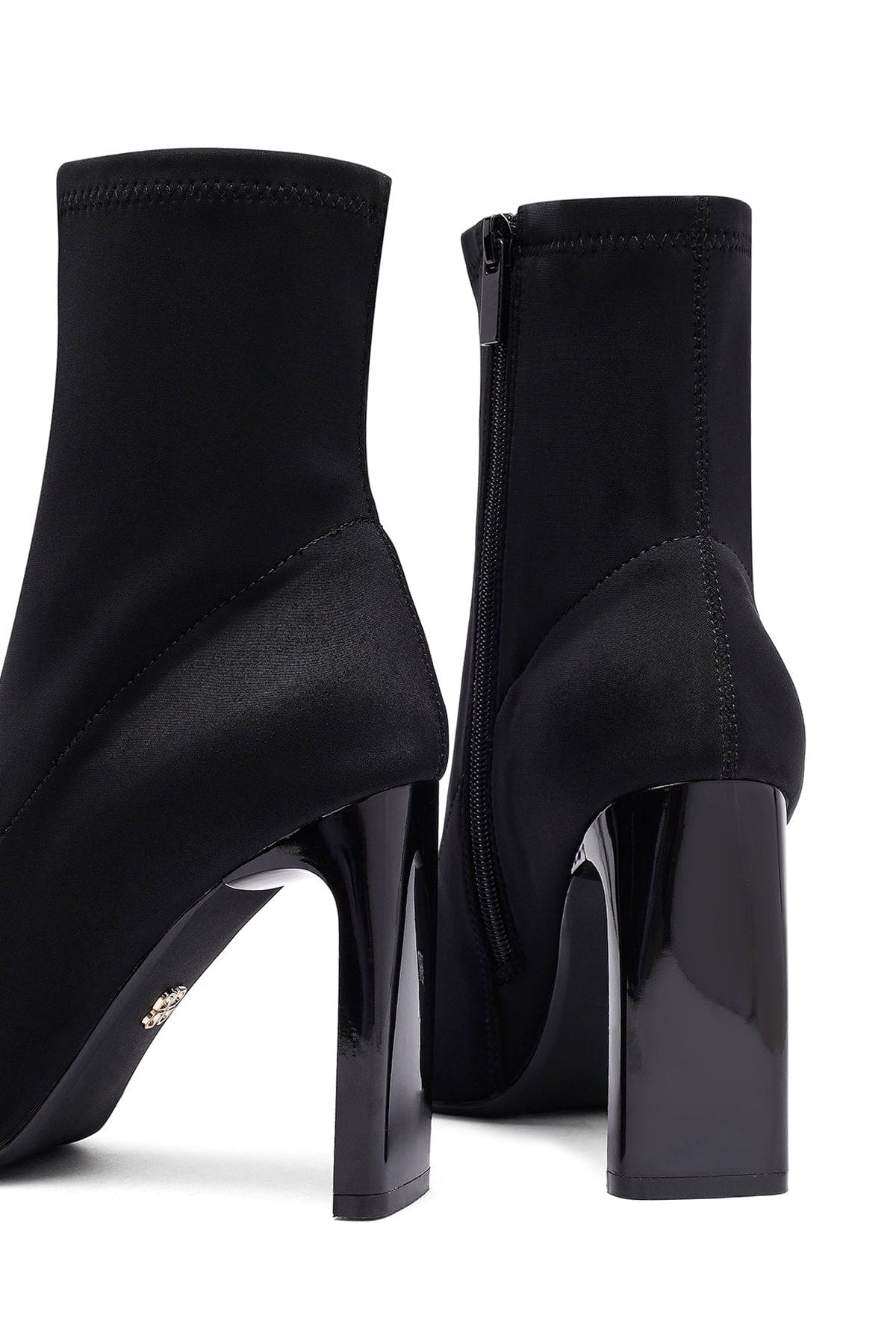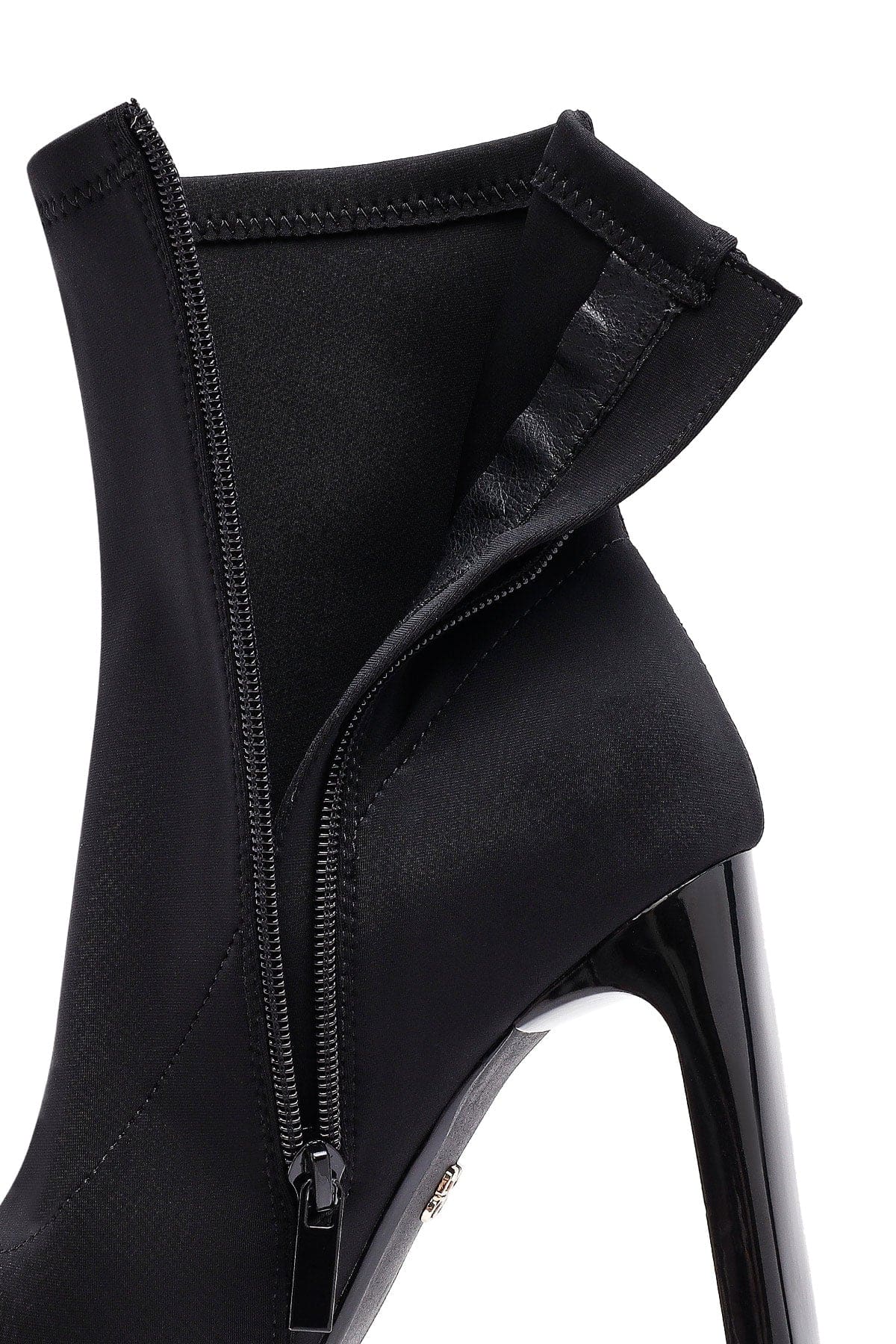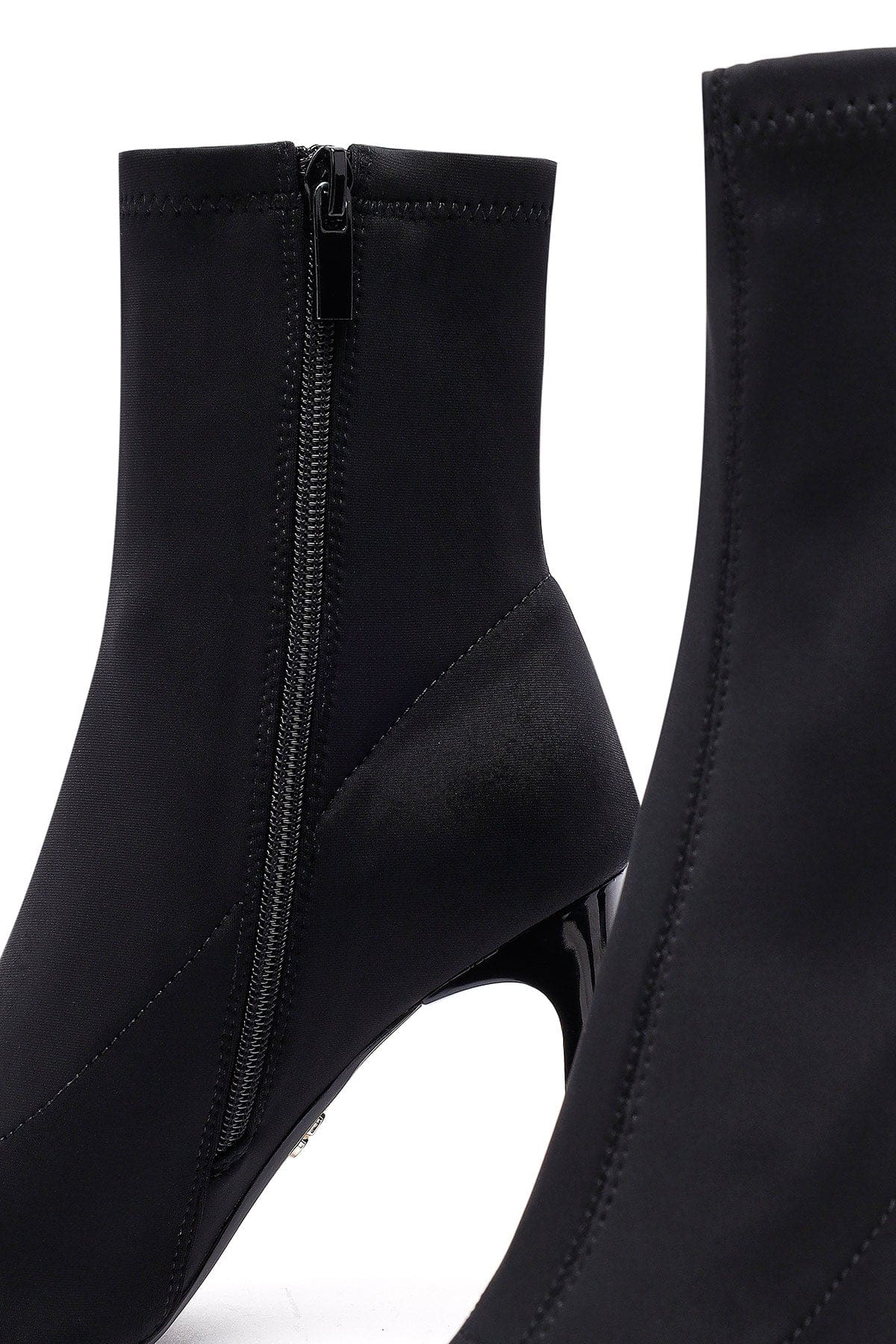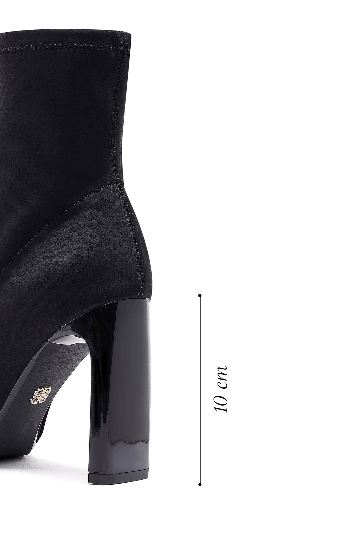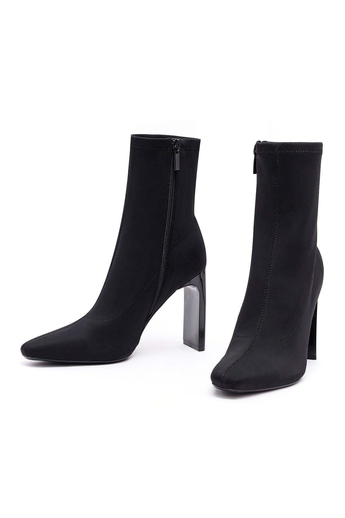 بوت زنانه پارچهای مشکی زیپدار پاشنهبلند ضخیم دری مد