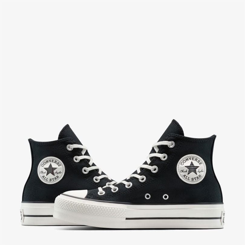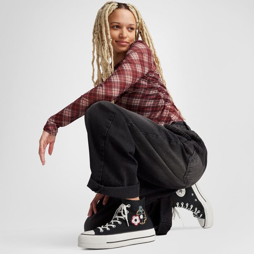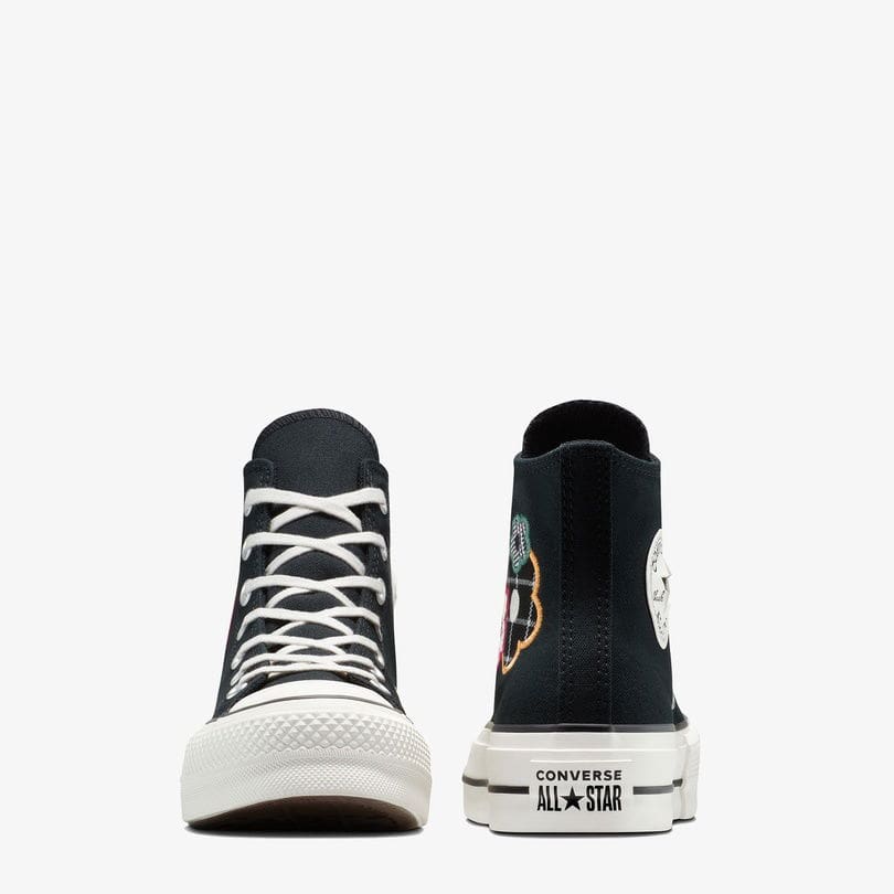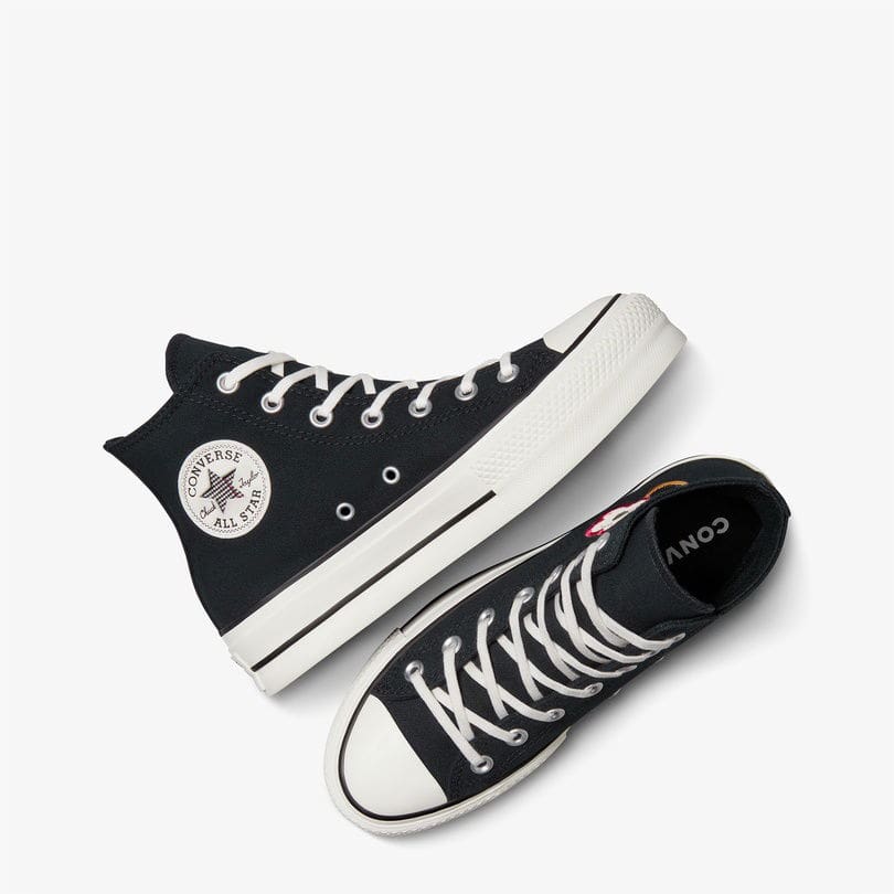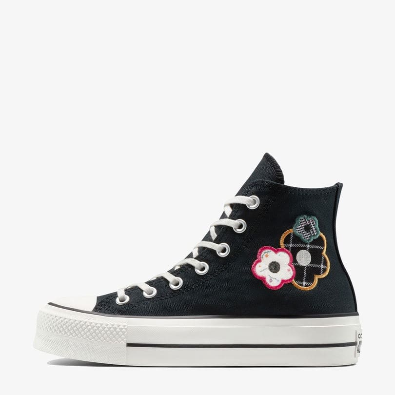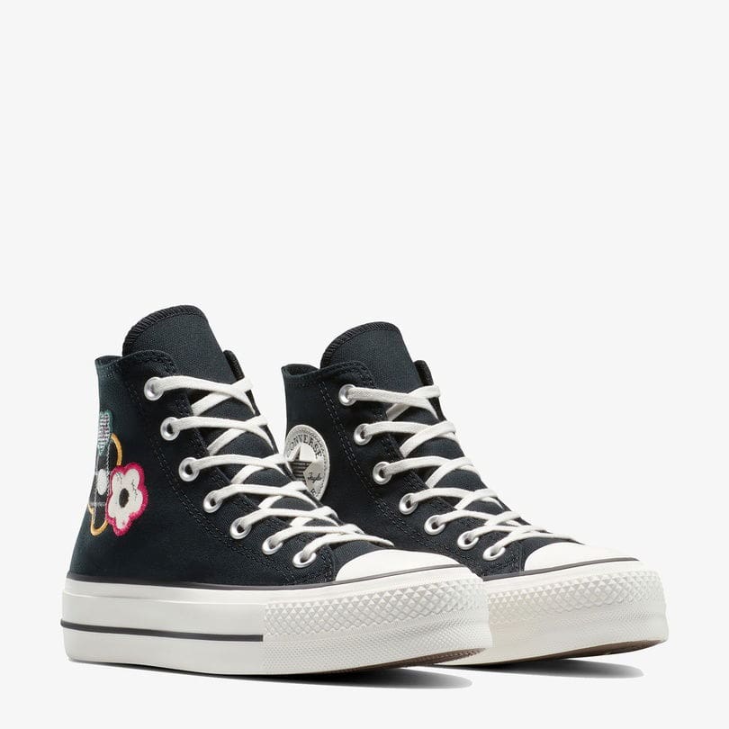 کتونی کانورس آل استار Chuck Taylor All Star Lift لژدار مشکی گلدار زنانه اورجینال