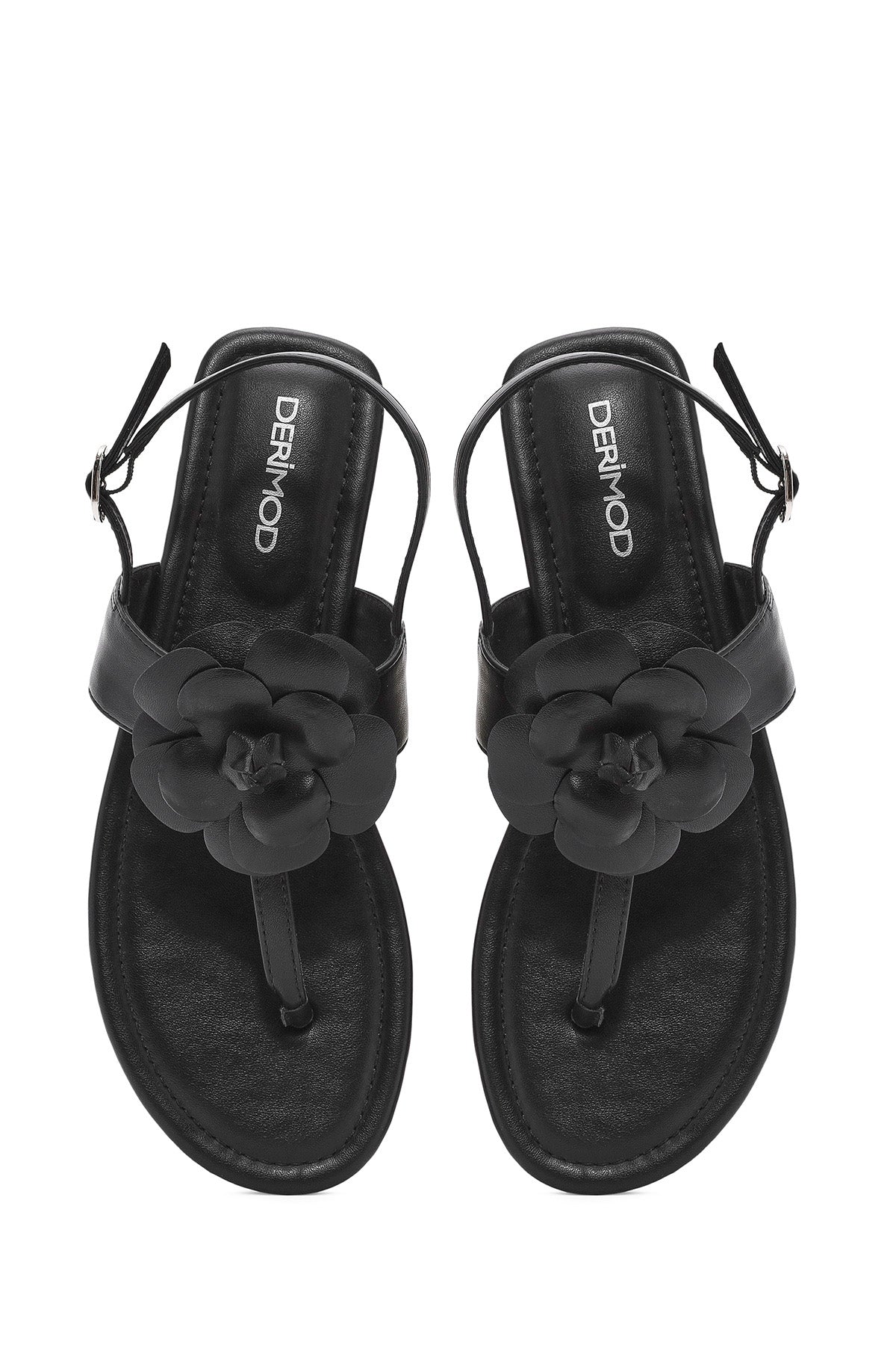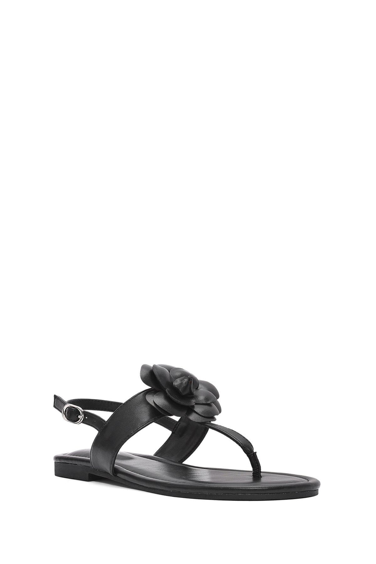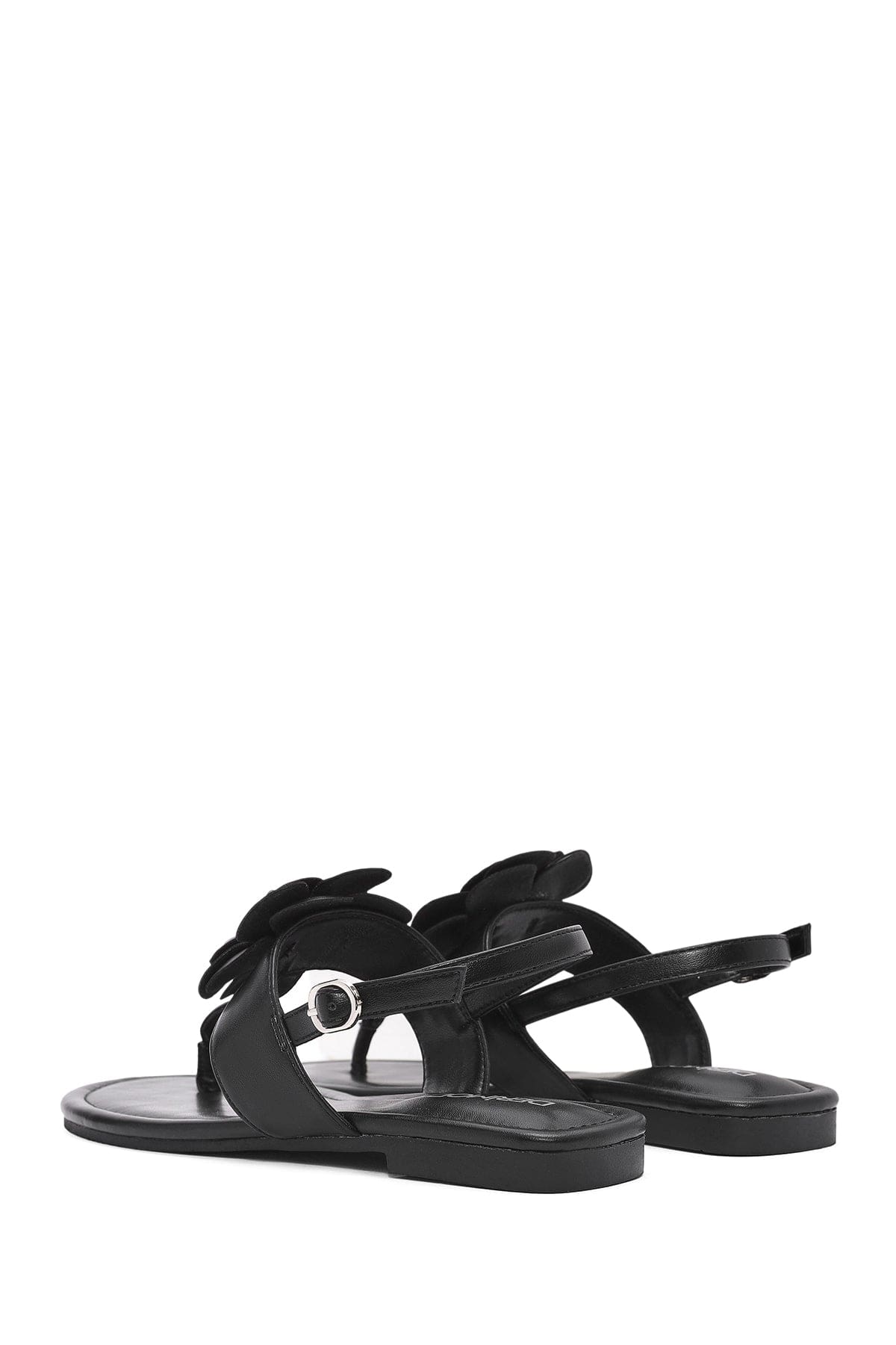 Kadın Siyah Çiçek Detaylı Parmak Arası Sandalet