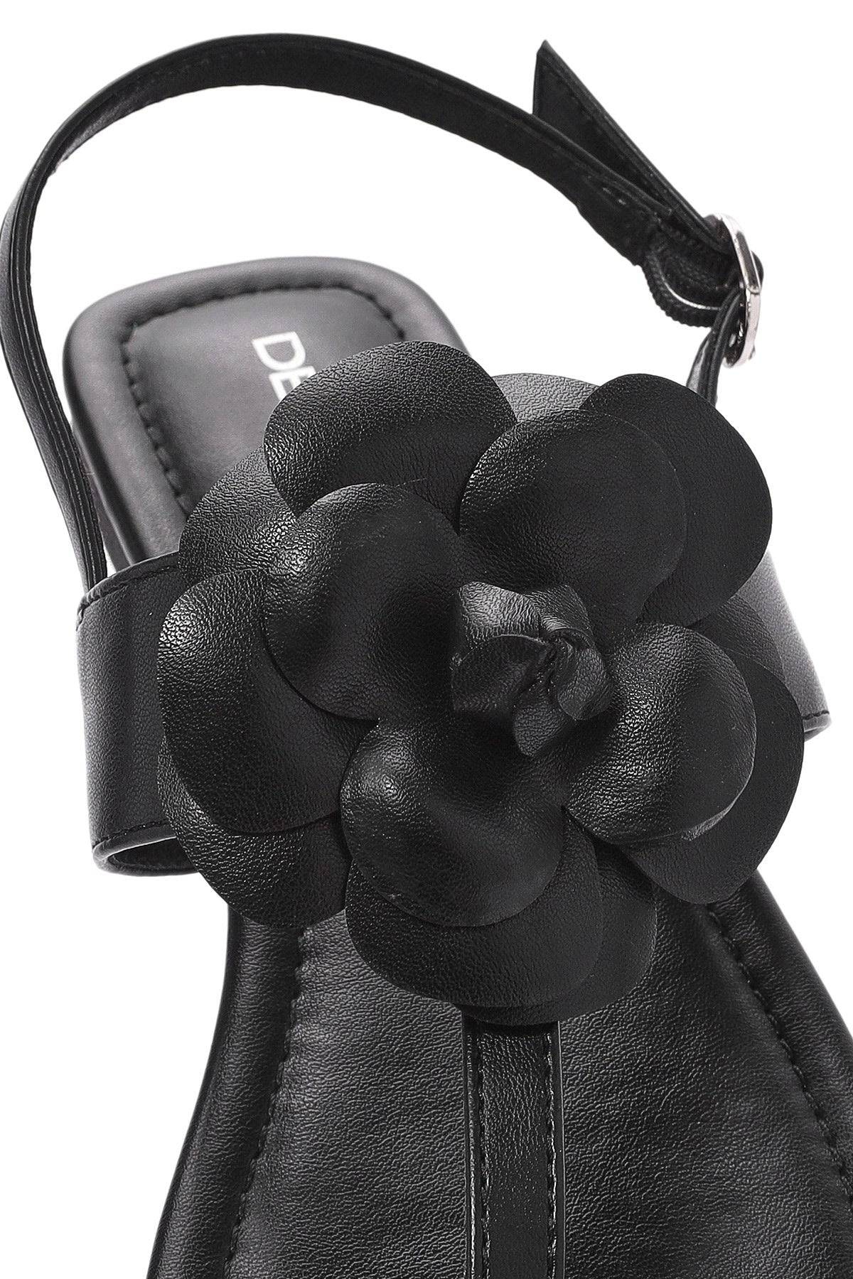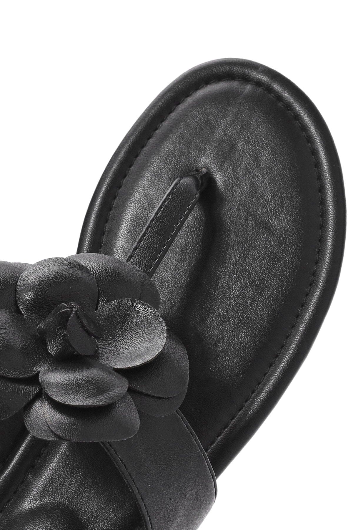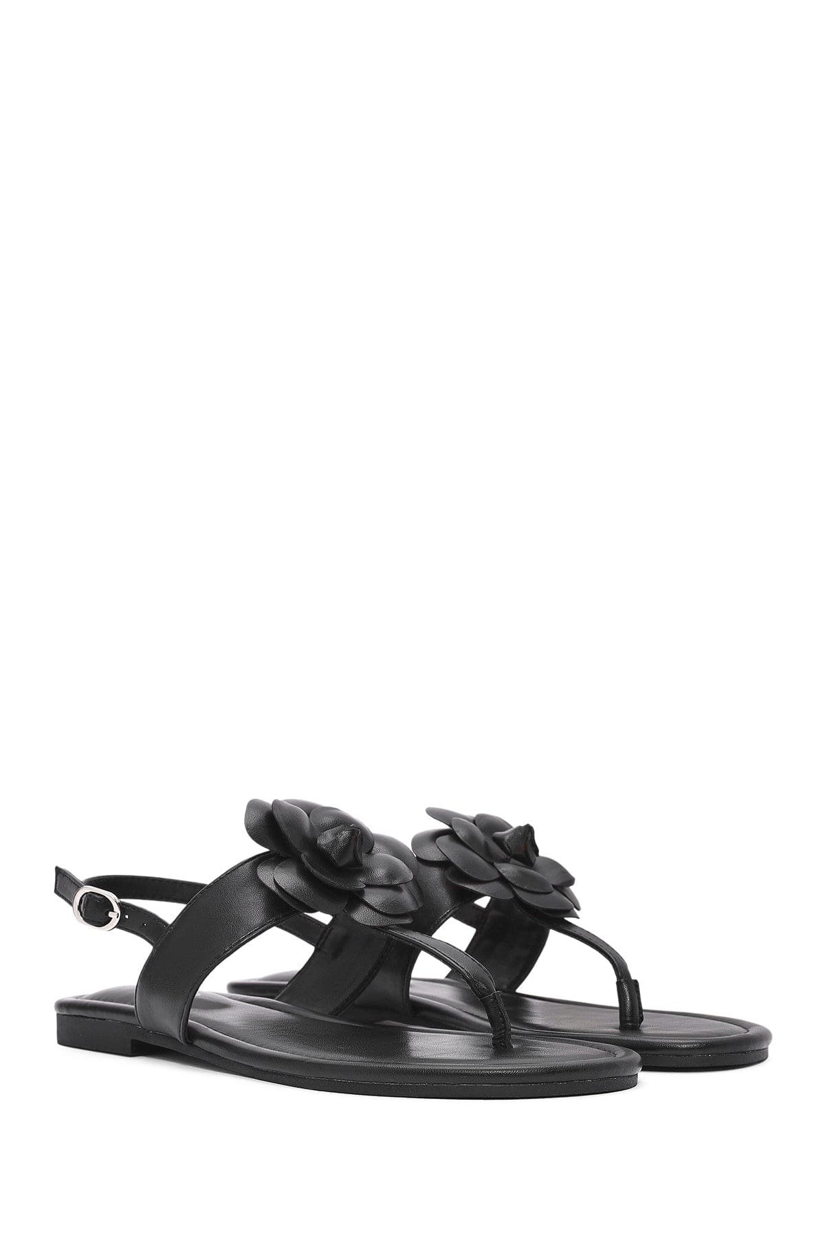 Kadın Siyah Çiçek Detaylı Parmak Arası Sandalet