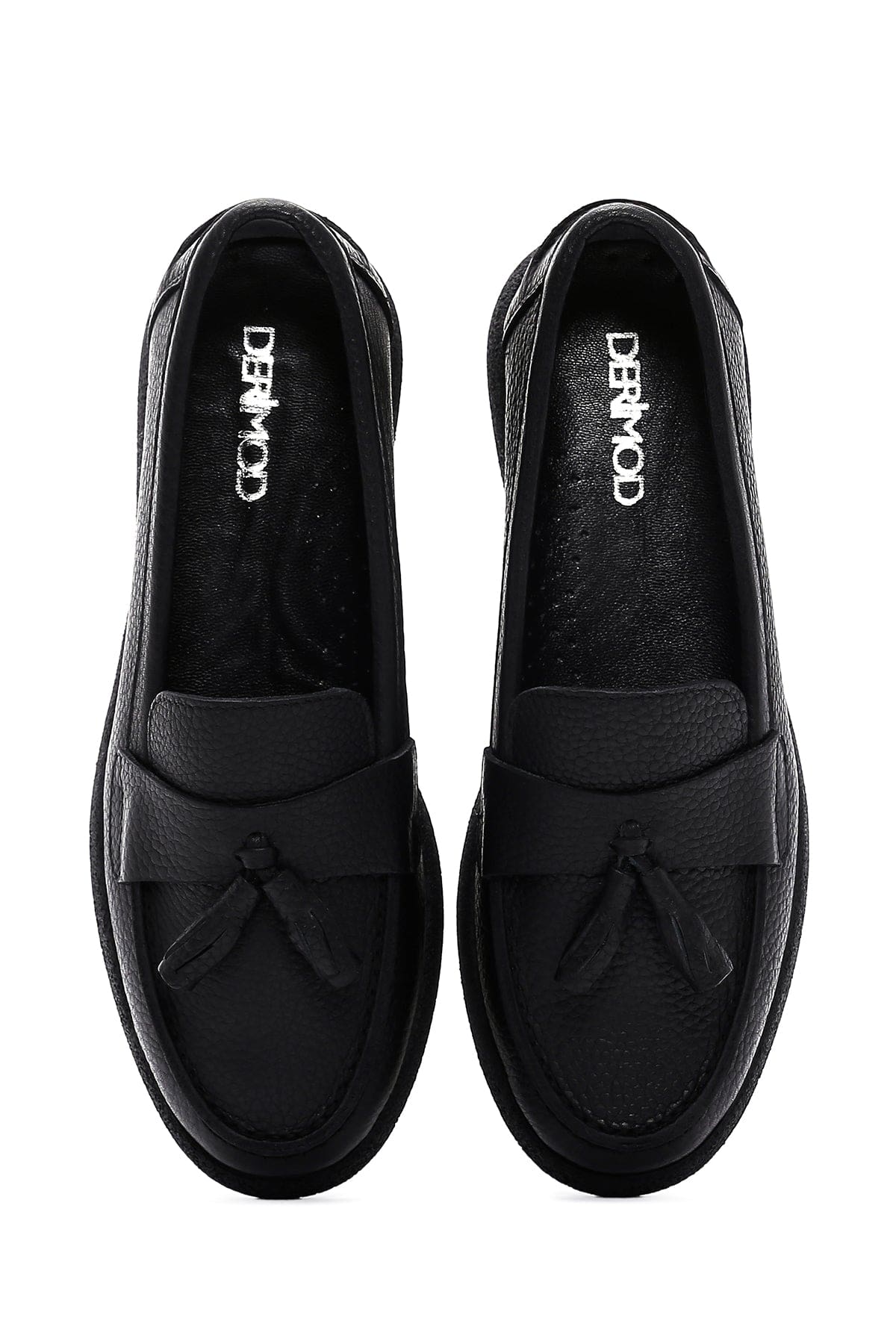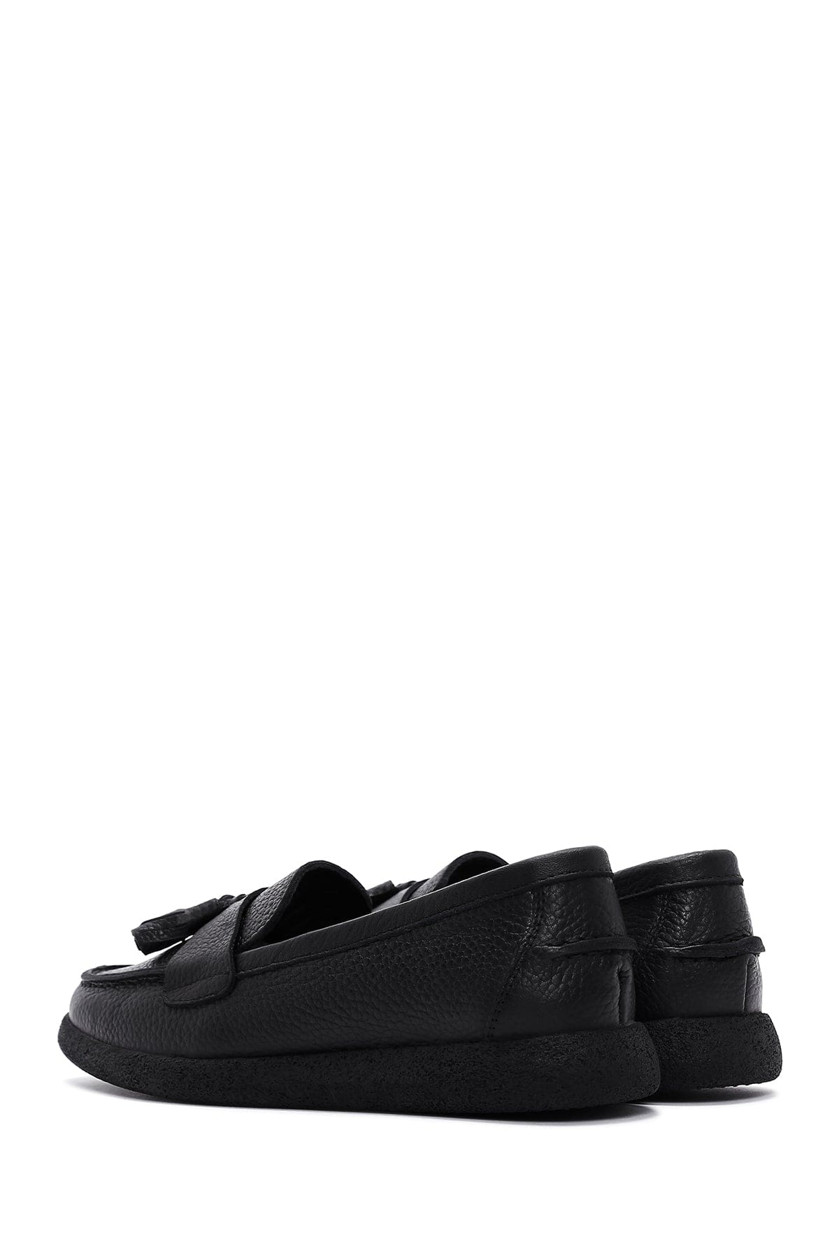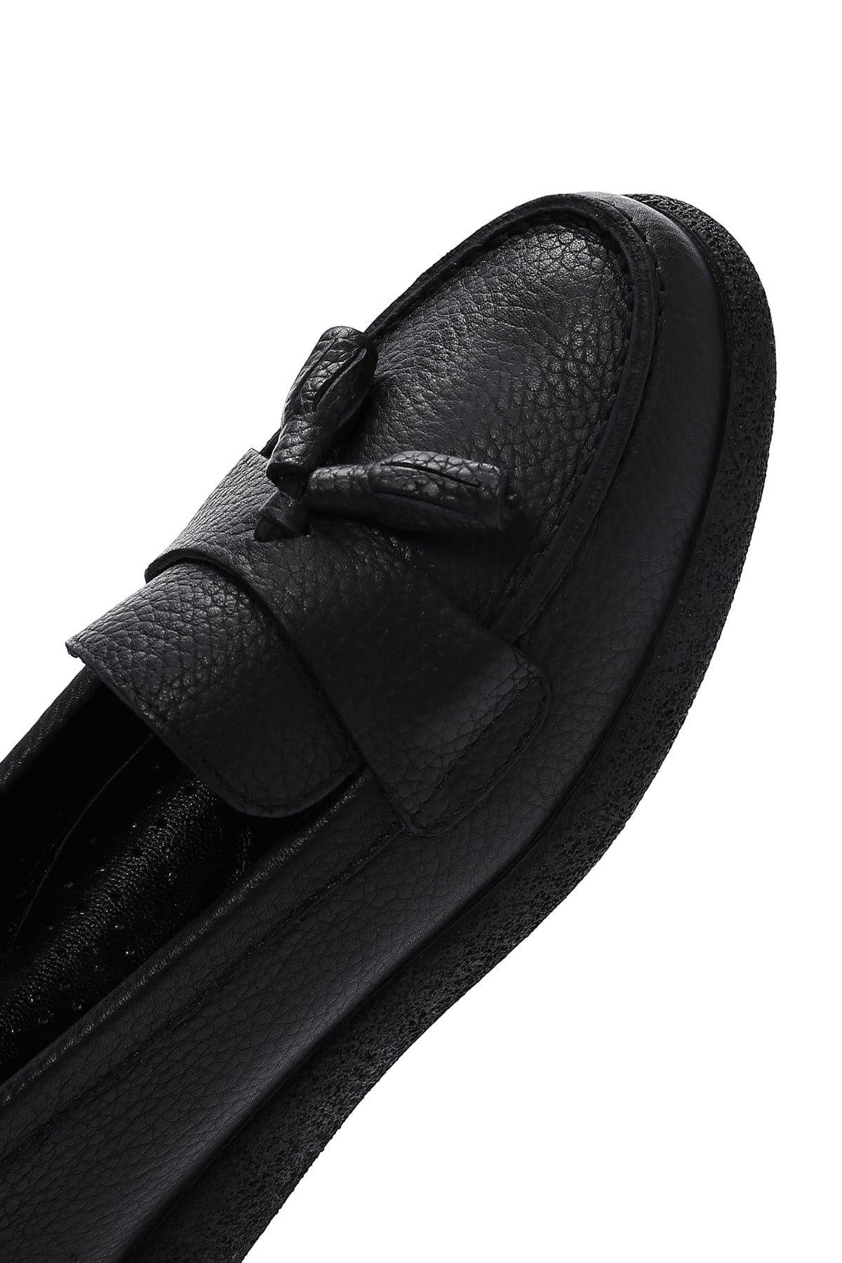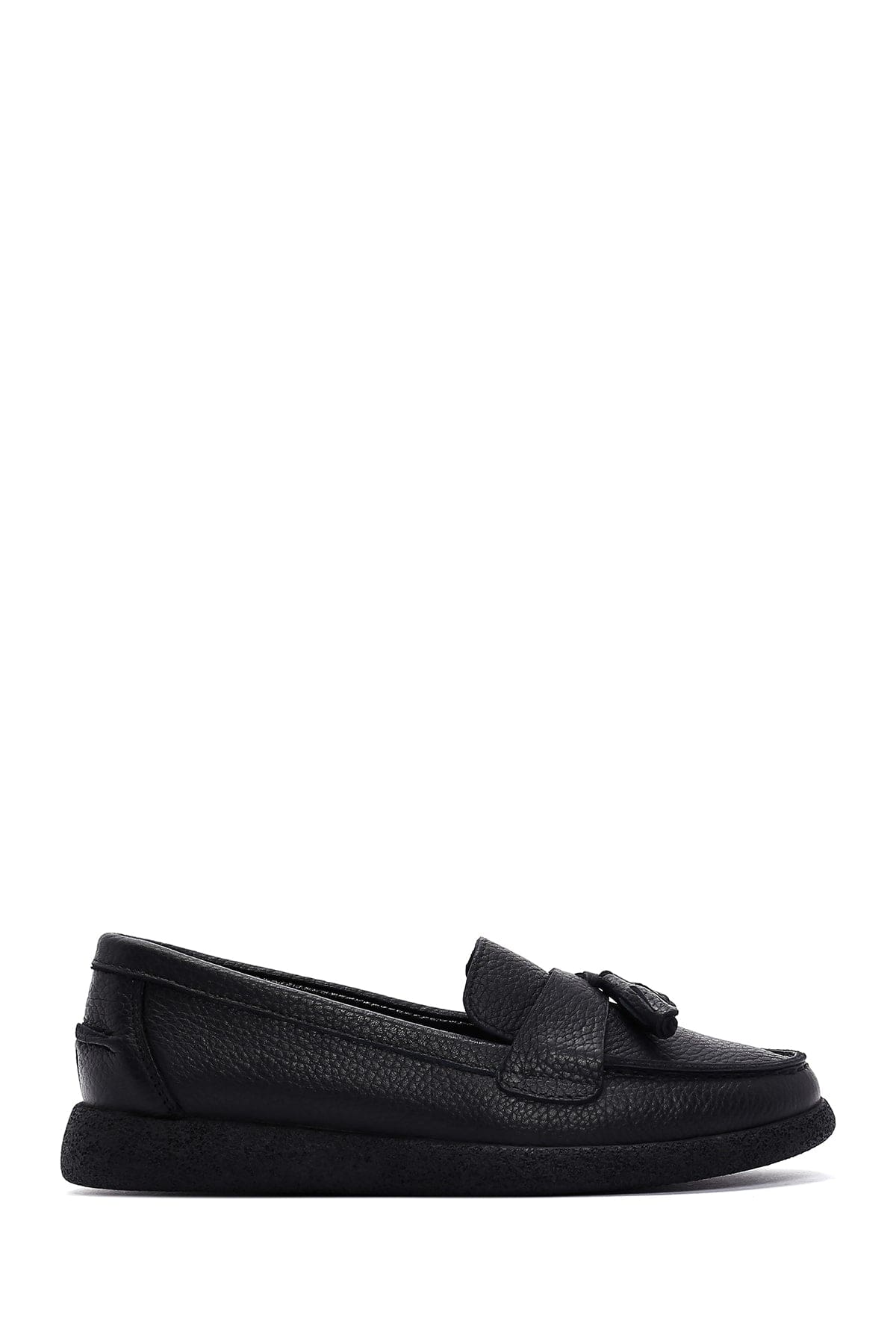 Kadın Siyah Püsküllü Deri Comfort Loafer