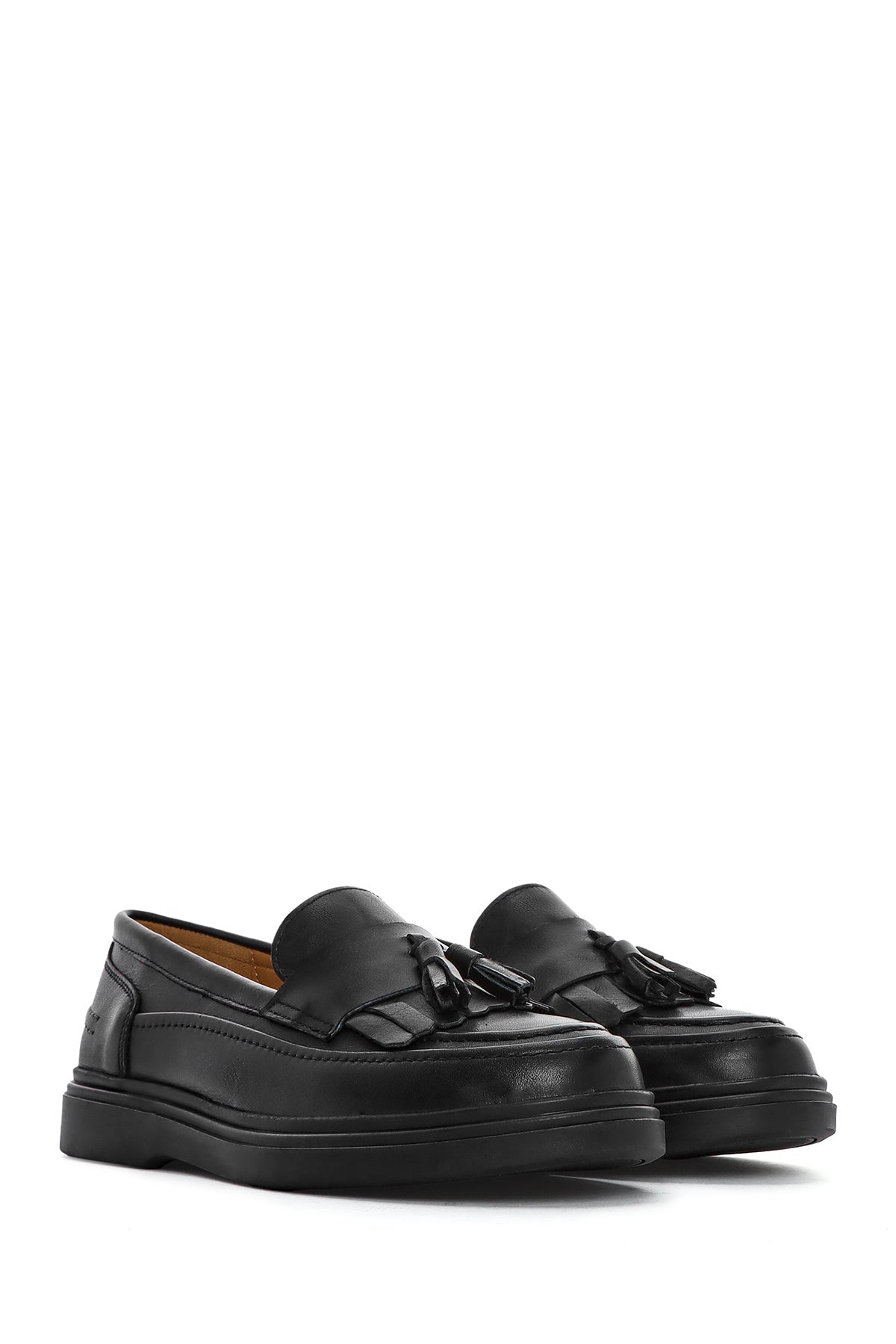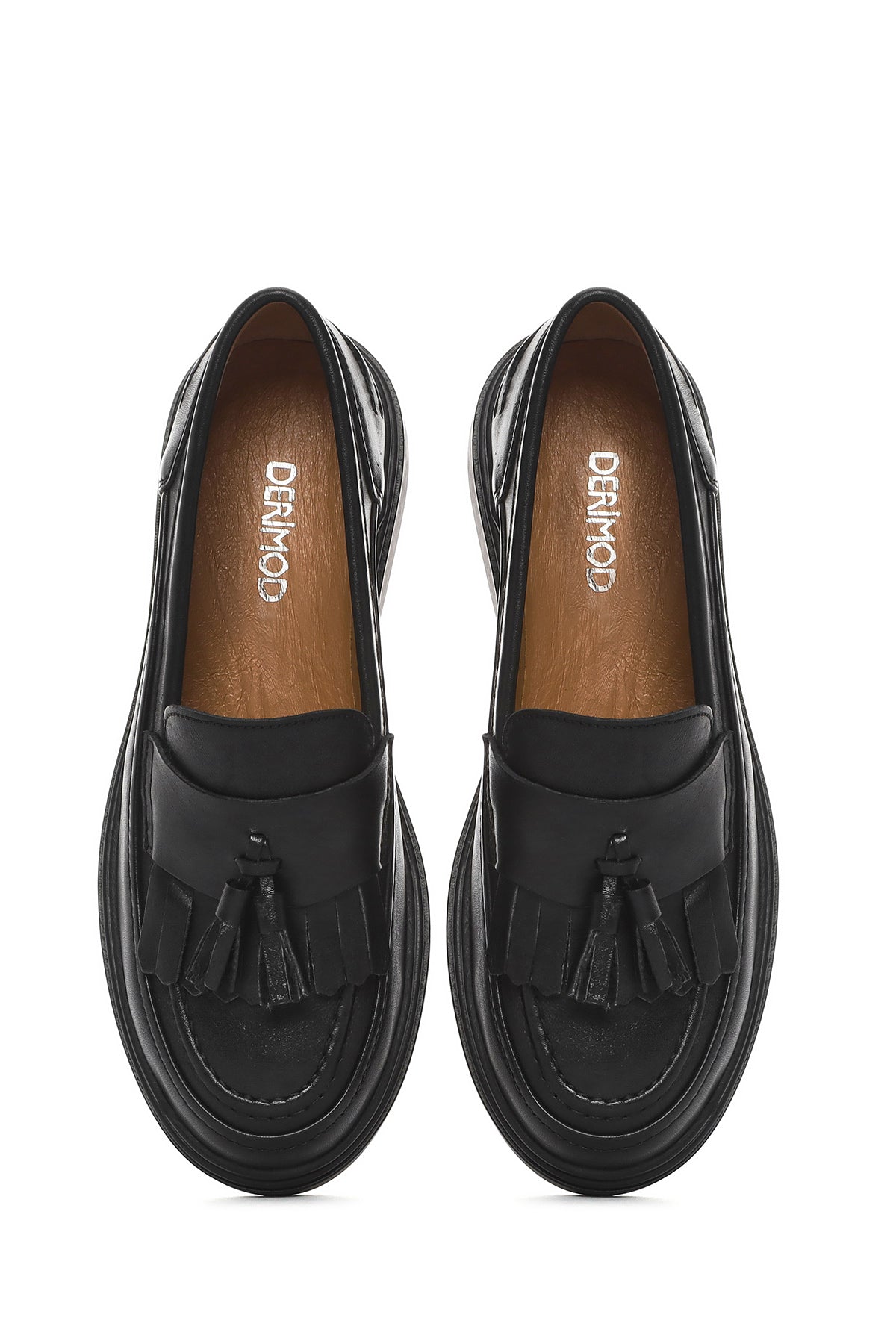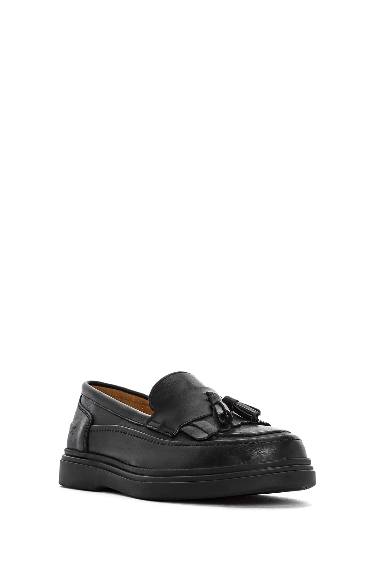 Kadın Siyah Püsküllü Deri Loafer