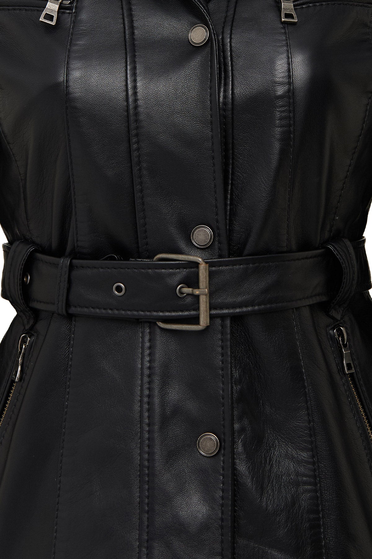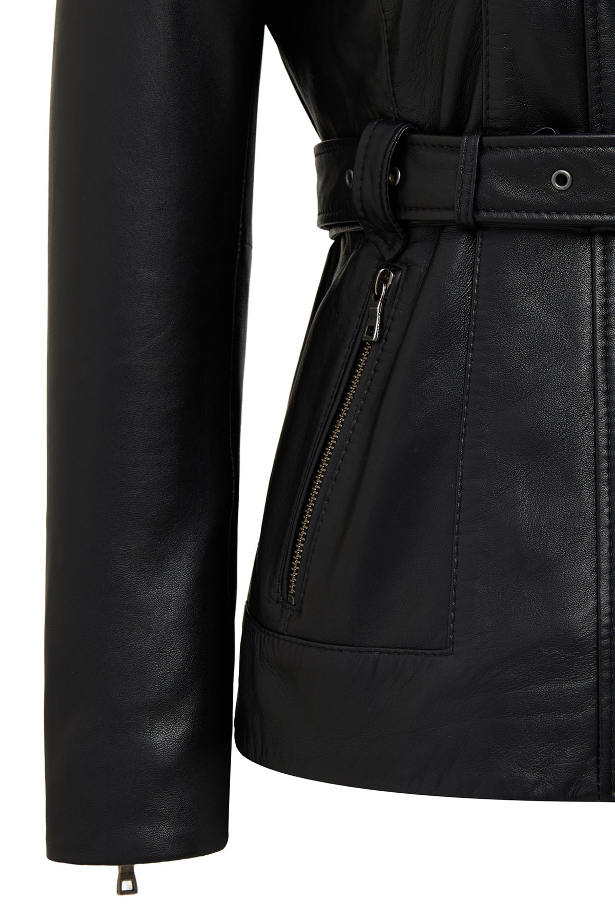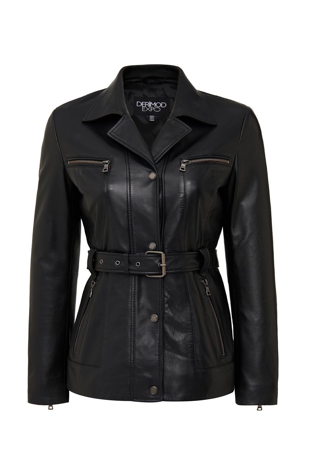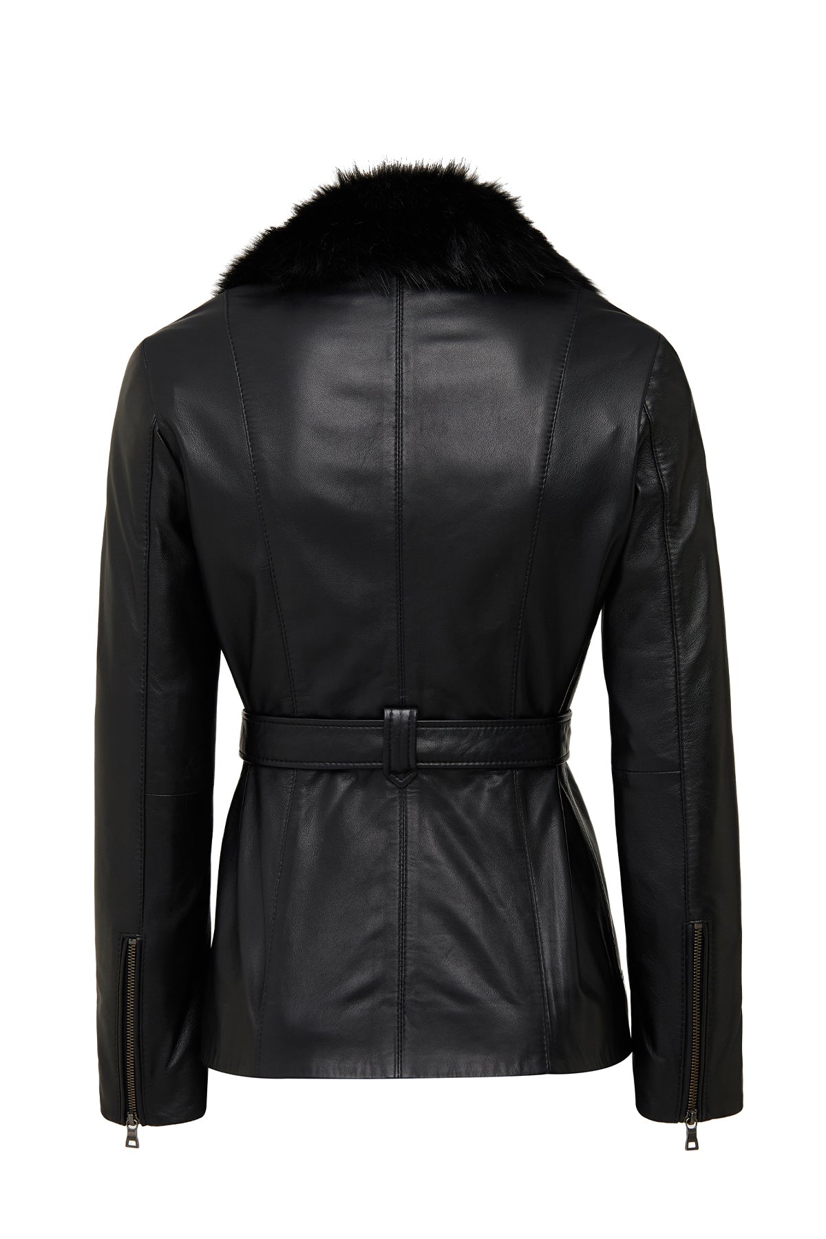 کاپشن چرمی زنانه مشکی یقه خزدار Edith دری مد