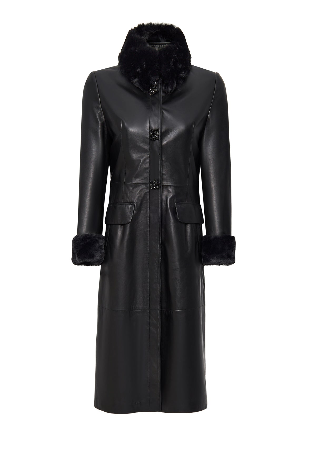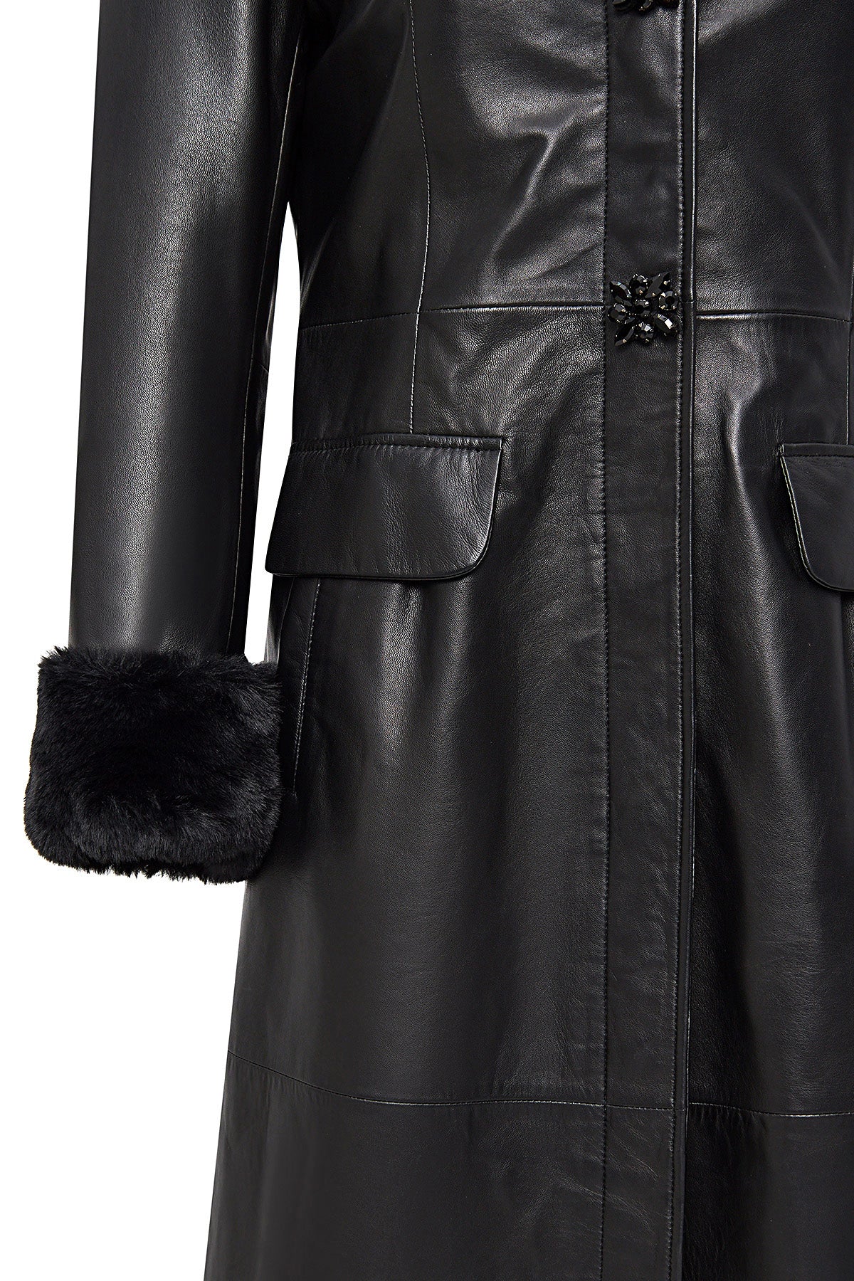 پالتو چرمی زنانه مشکی خزدار Mirella دری مد