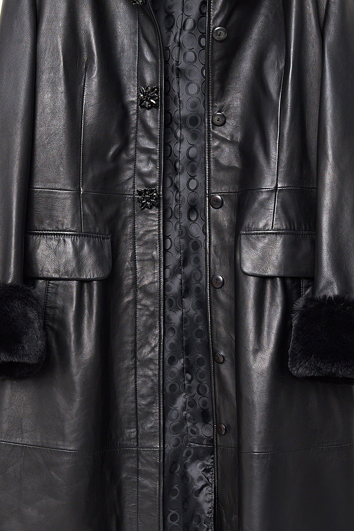 Mirella Kadın Siyah Kürklü Deri Pardösü