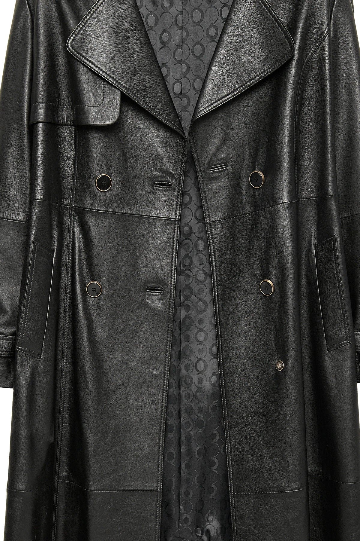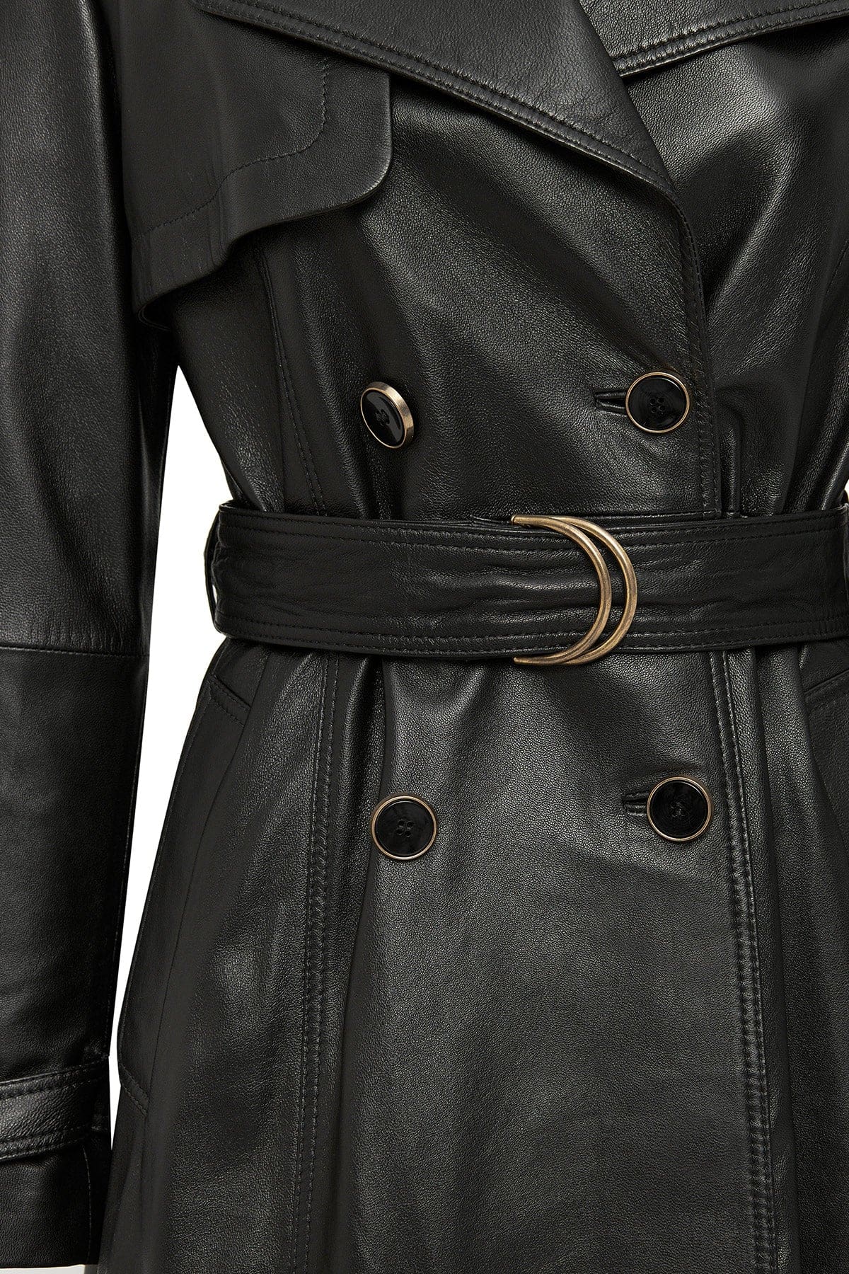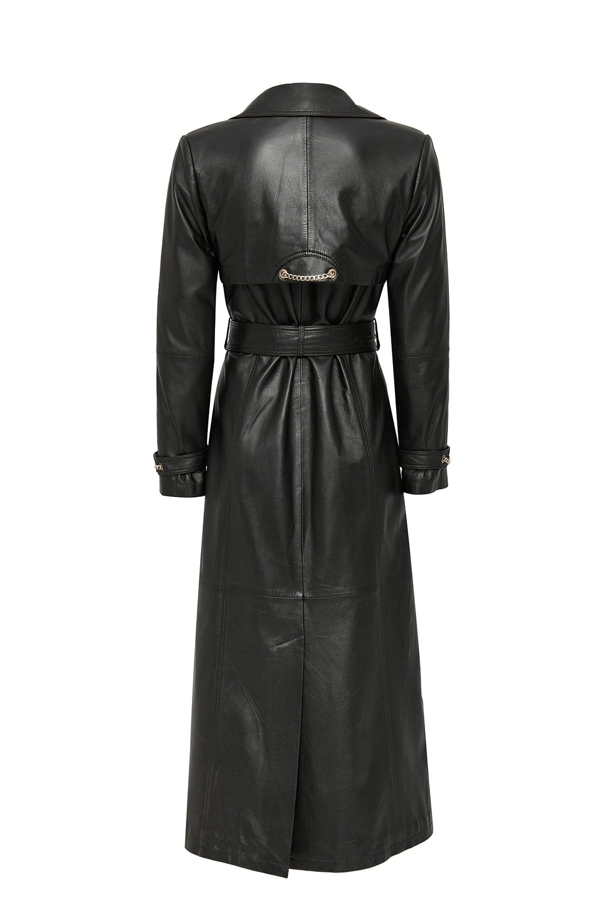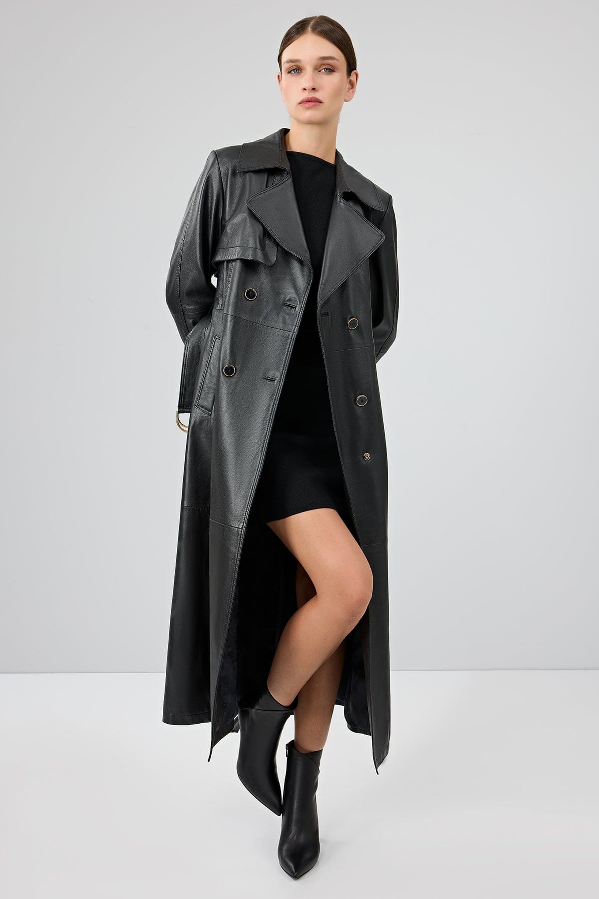 ترنچ کت چرمی زنانه مشکی یقه خزدار کمربنددار Jenny دری مد