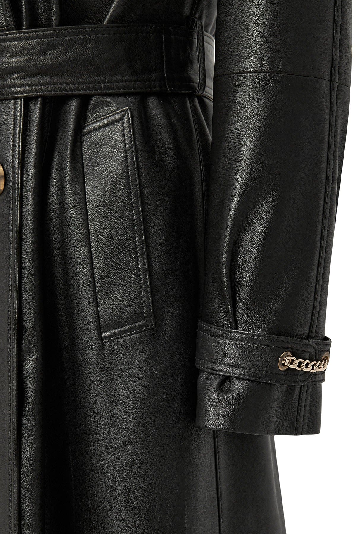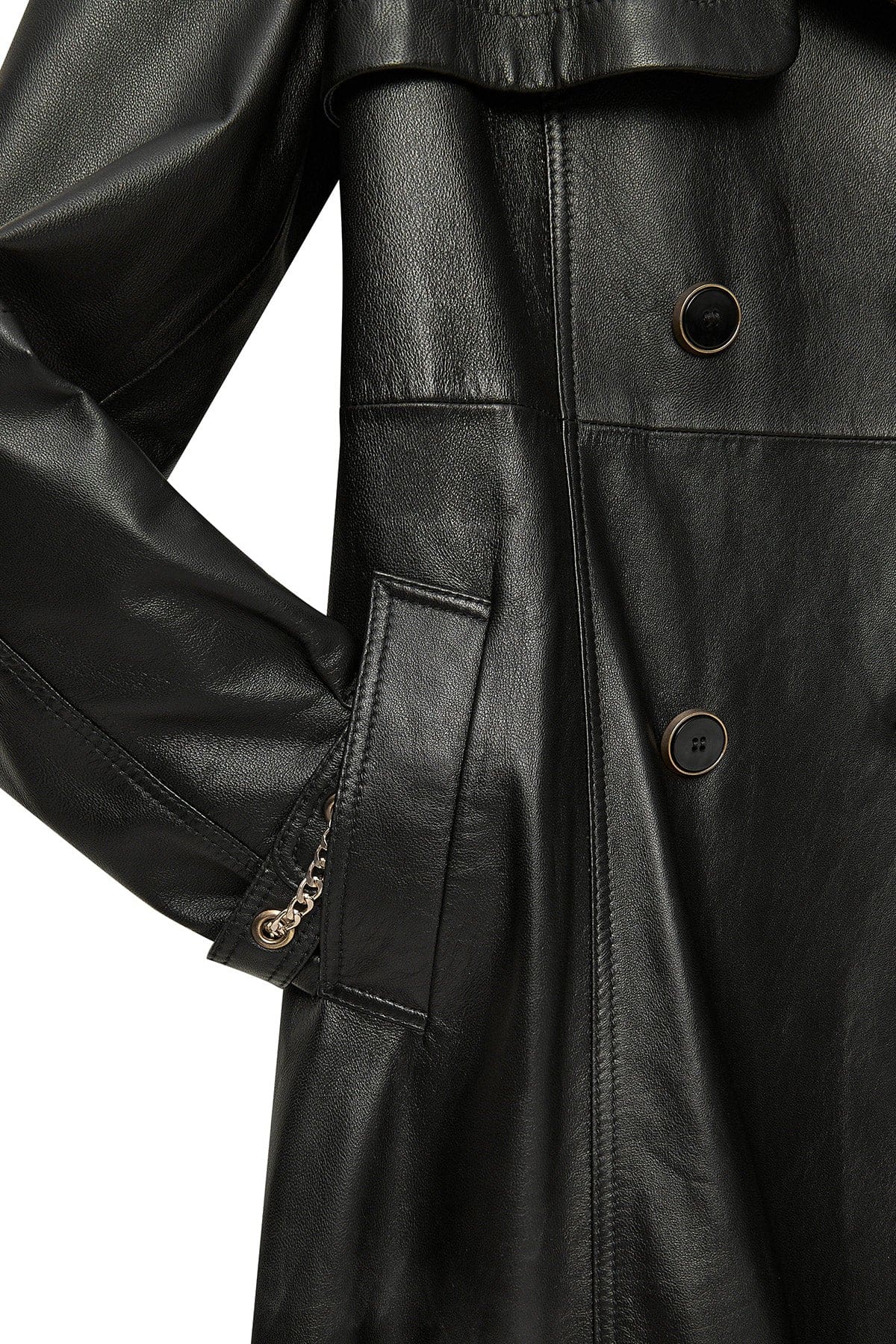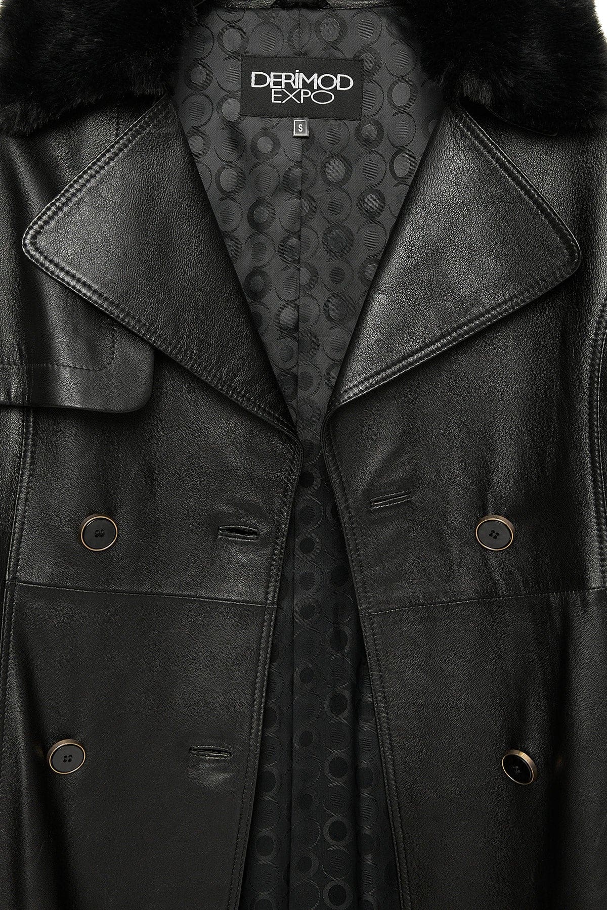 Jenny Kadın Siyah Yaka Kürklü Kemer Detaylı Deri Trençkot