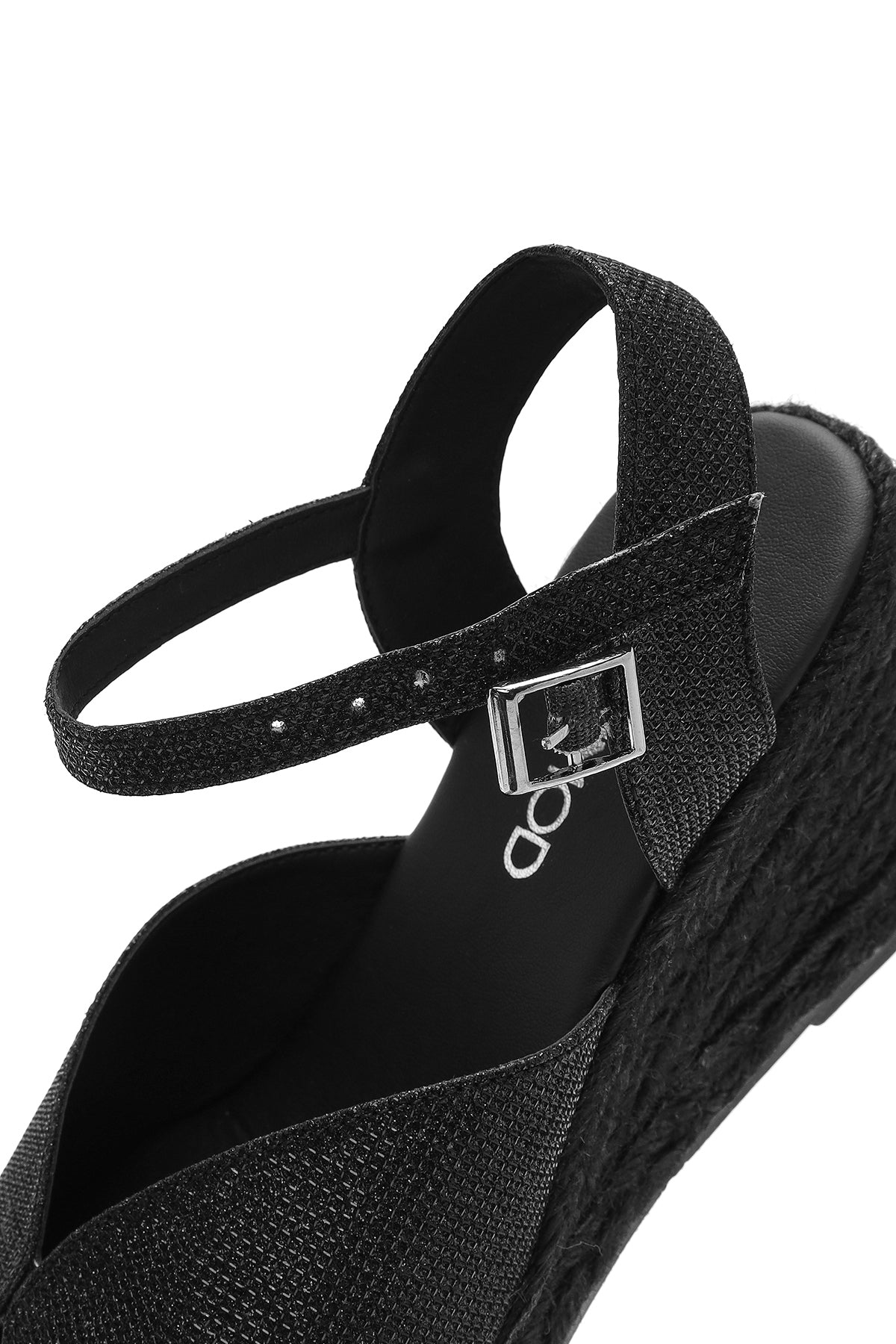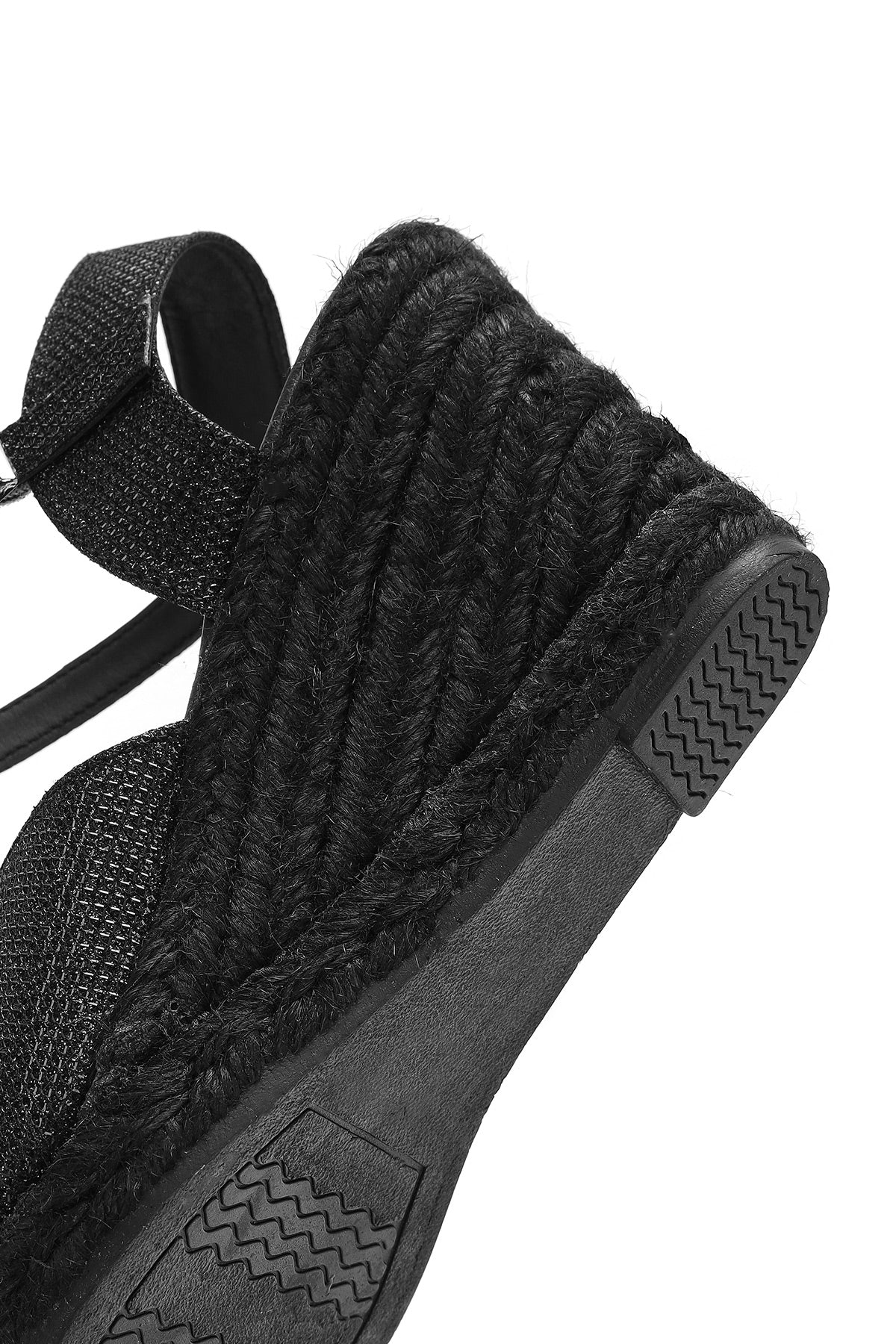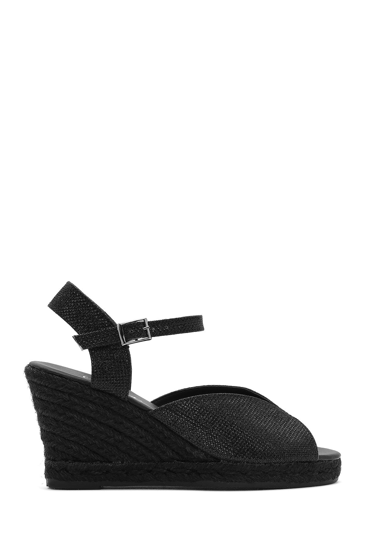 Kadın Siyah Simli Bilekten Tokalı Dolgu Topuklu Espadril Sandalet