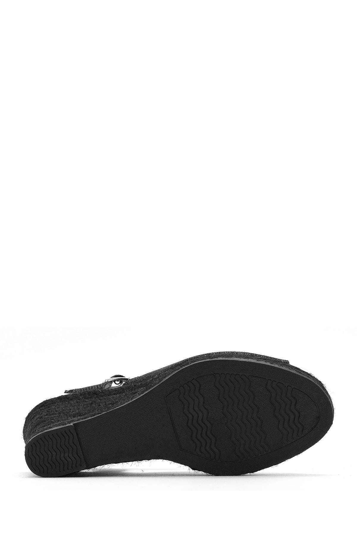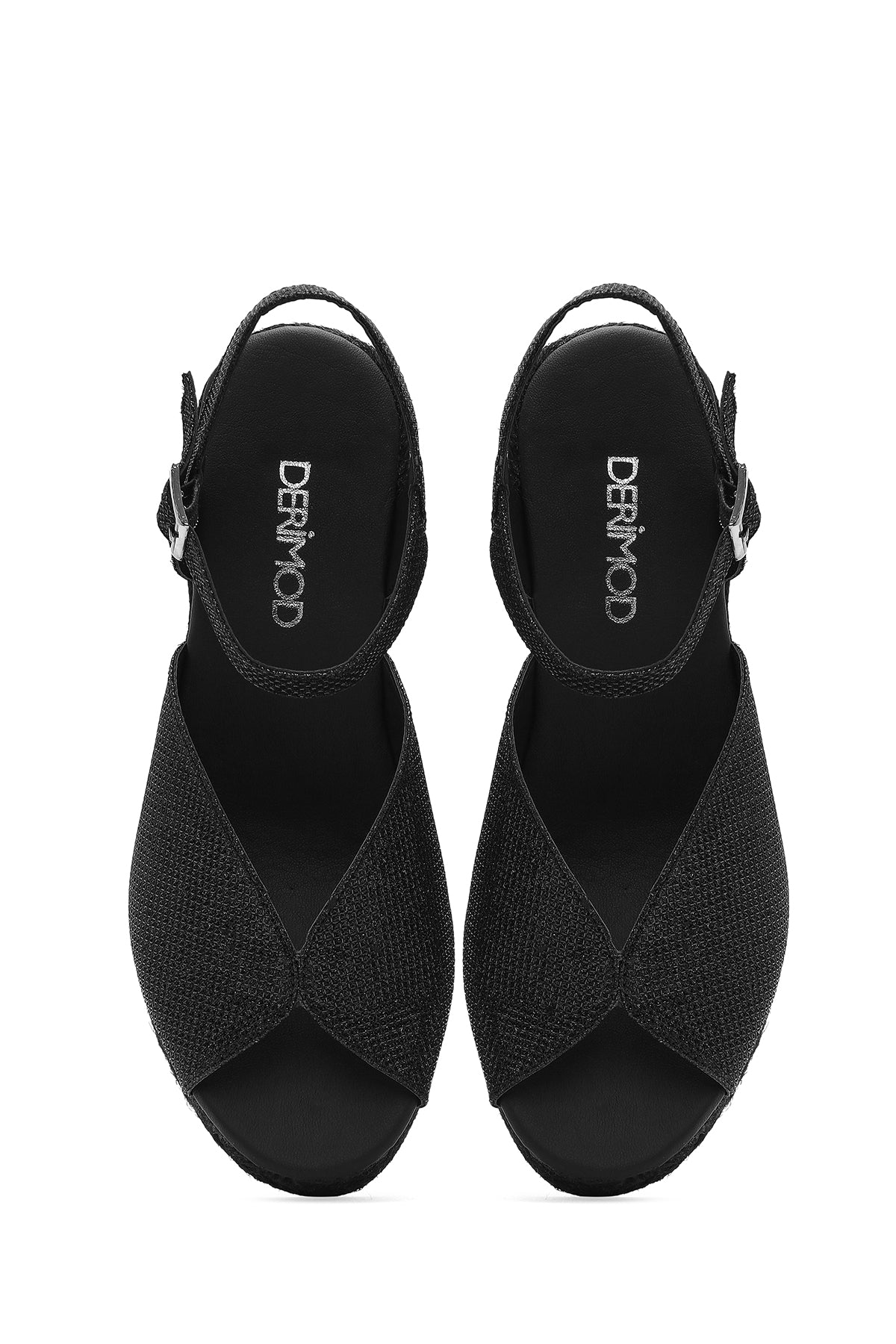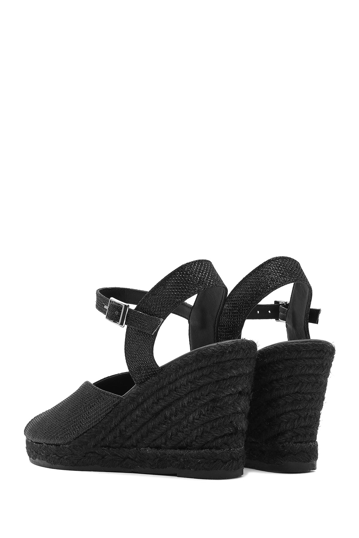 Kadın Siyah Simli Bilekten Tokalı Dolgu Topuklu Espadril Sandalet