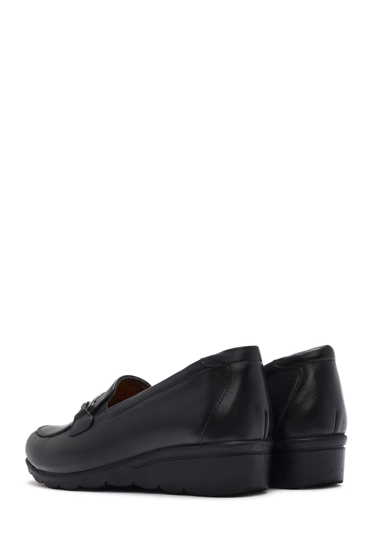 Kadın Siyah Dolgu Topuklu Tokalı Deri Comfort Ayakkabı