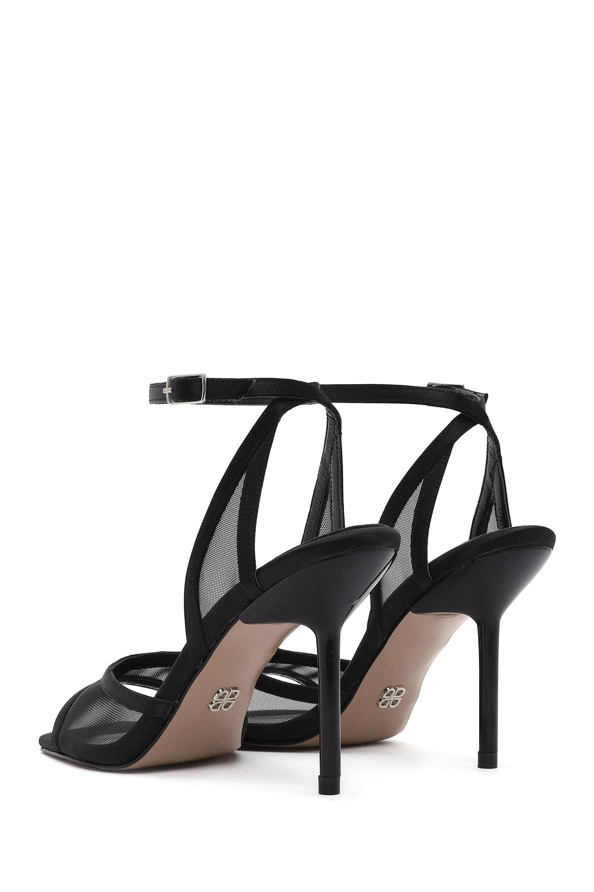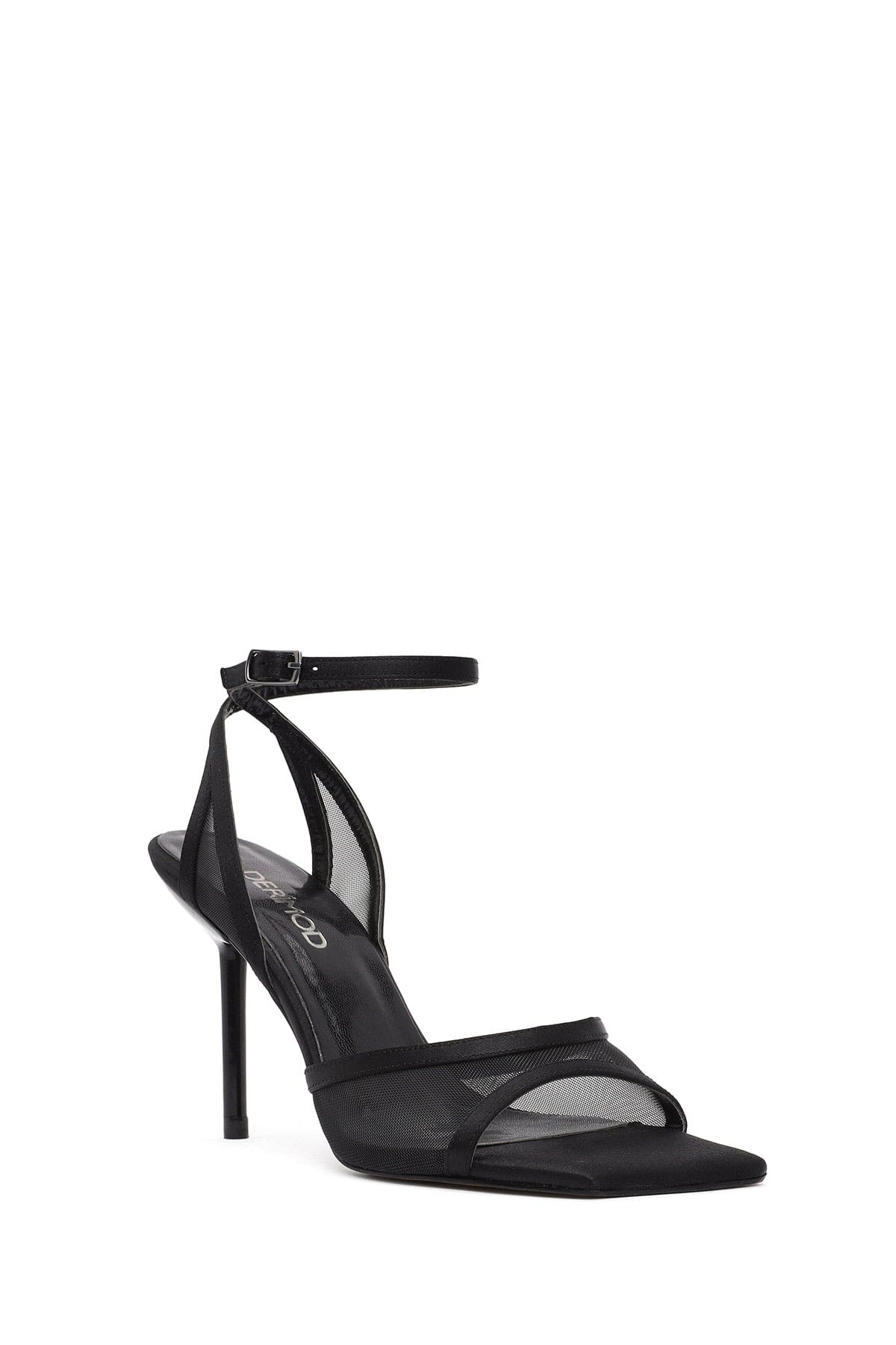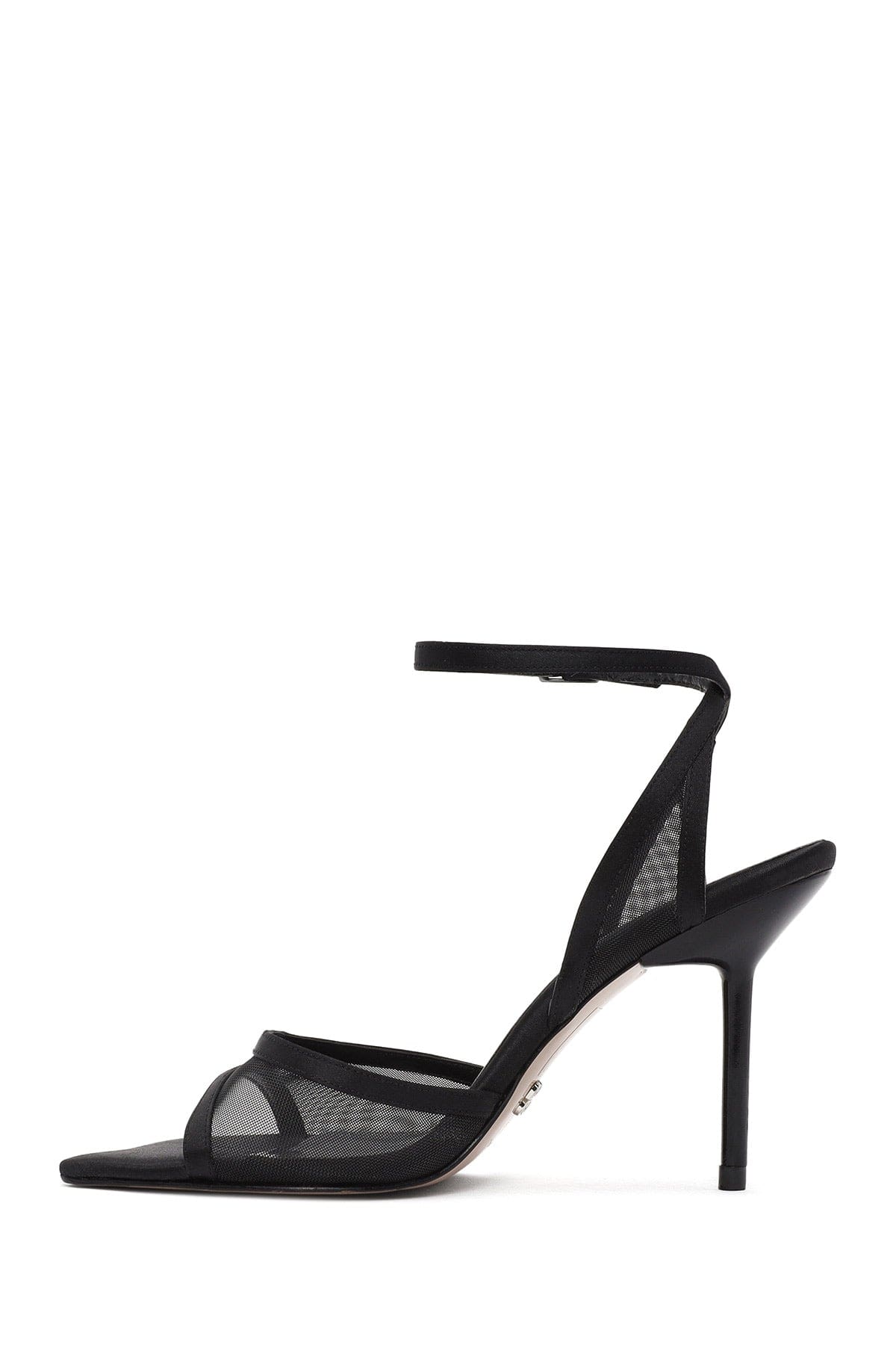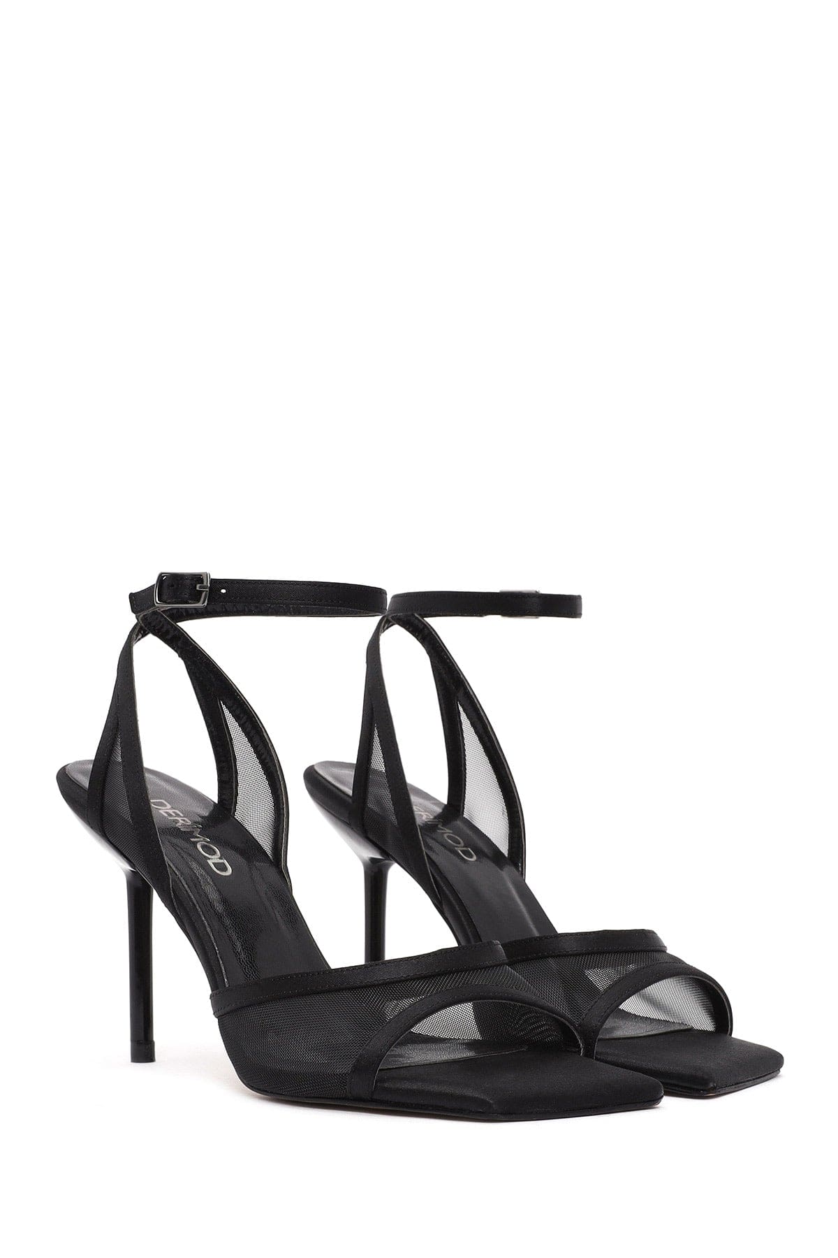 Kadın Siyah Bilekten Tokalı Yüksek İnce Topuklu Sandalet