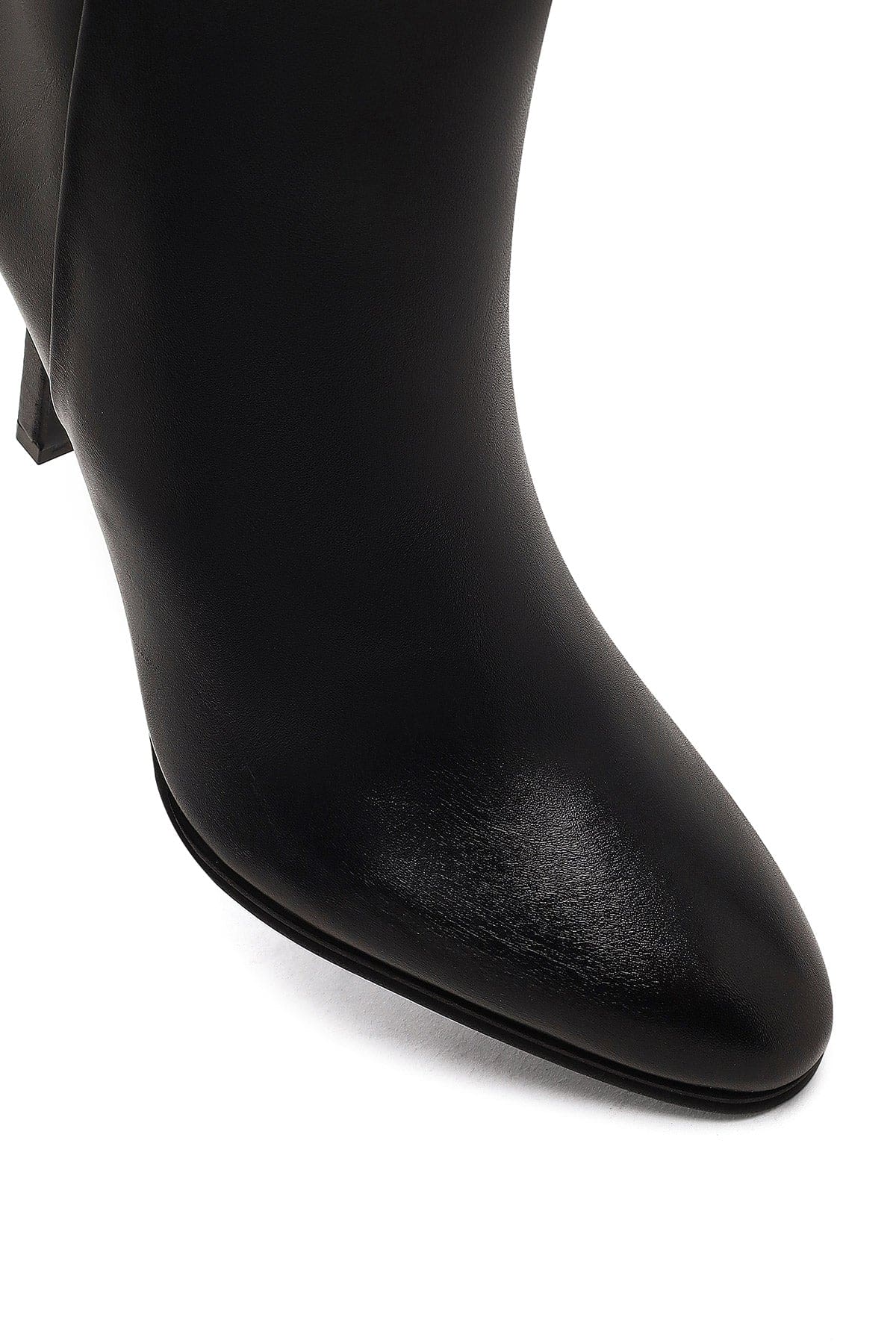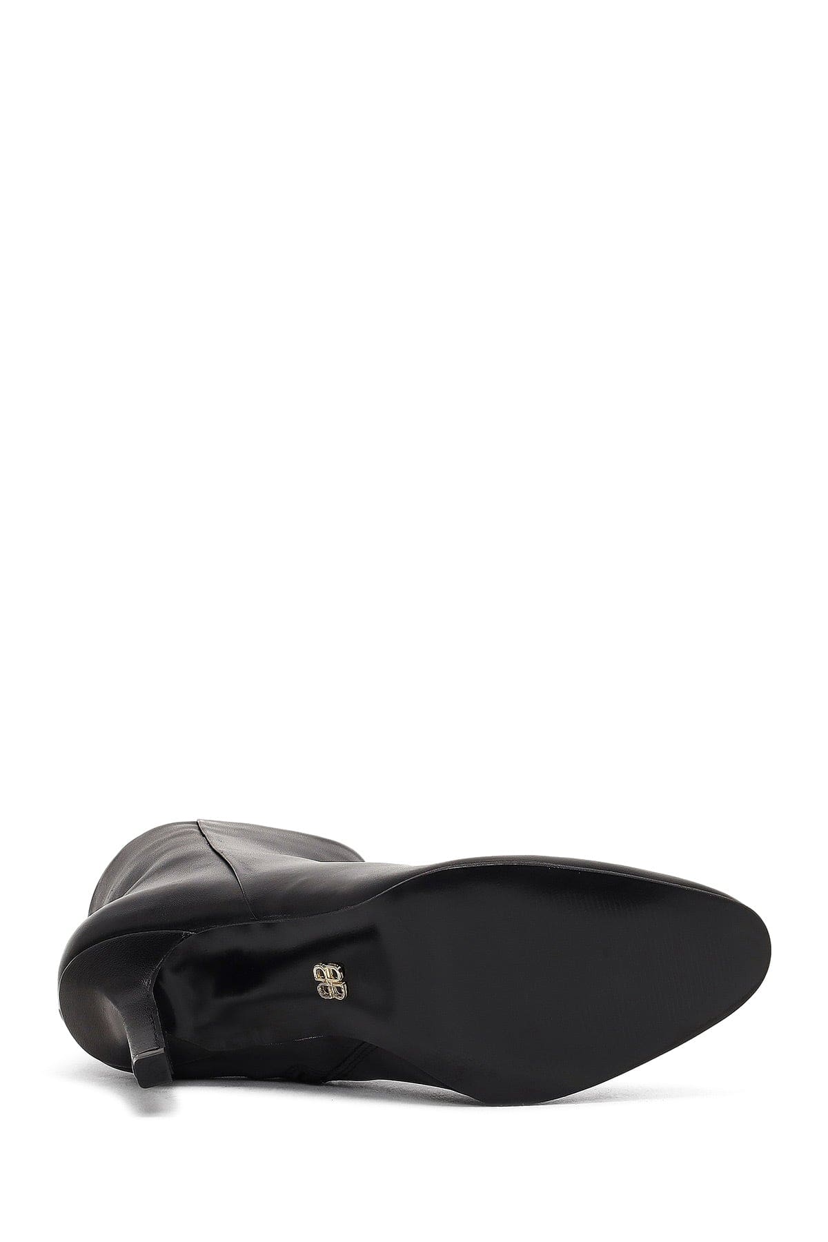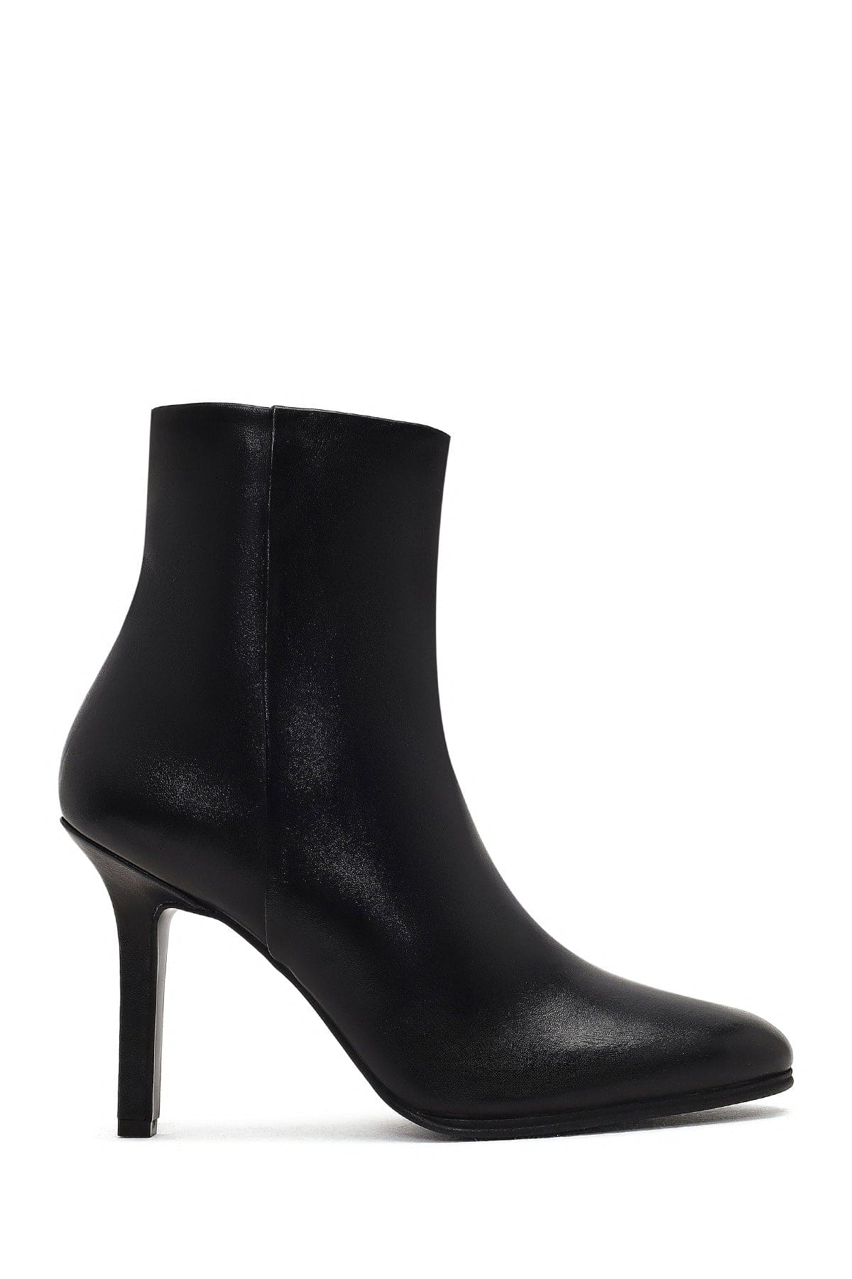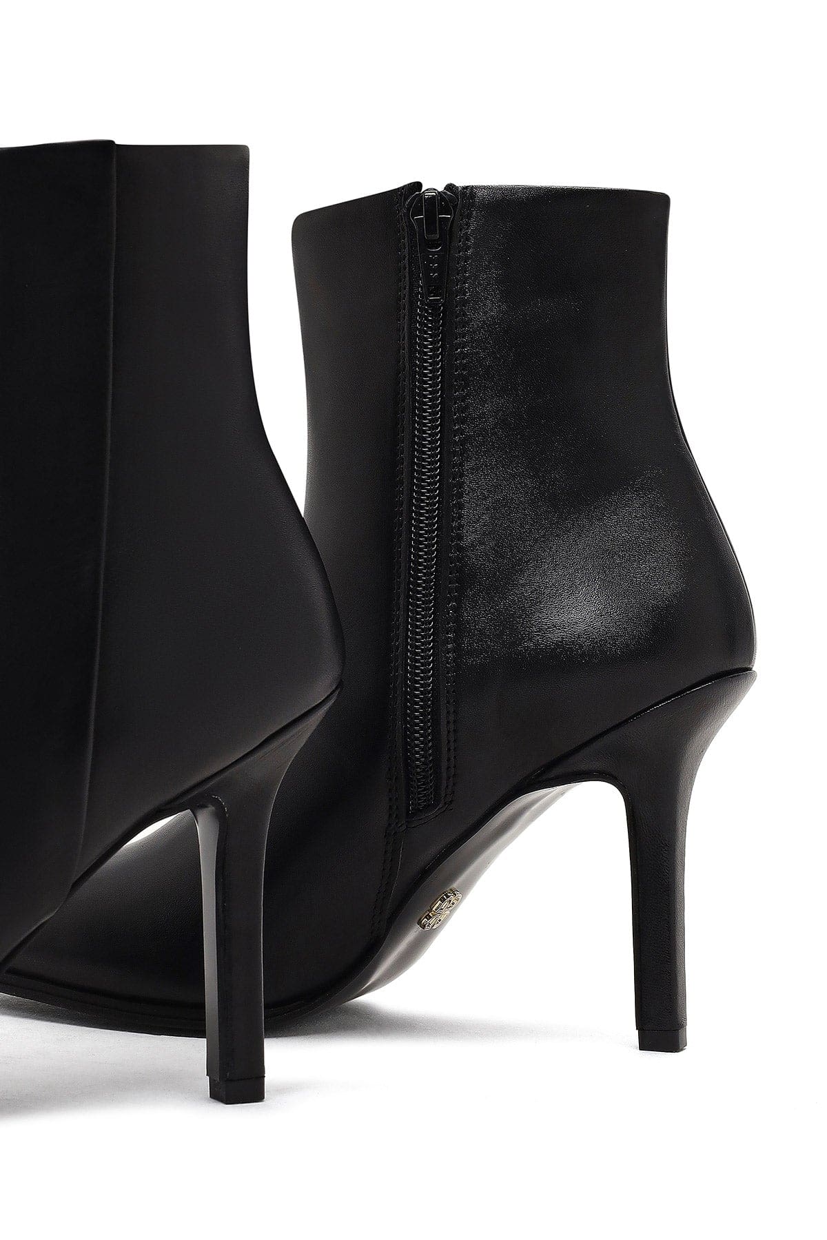 Kadın Siyah Fermuarlı Yüksek İnce Topuklu Deri Bot