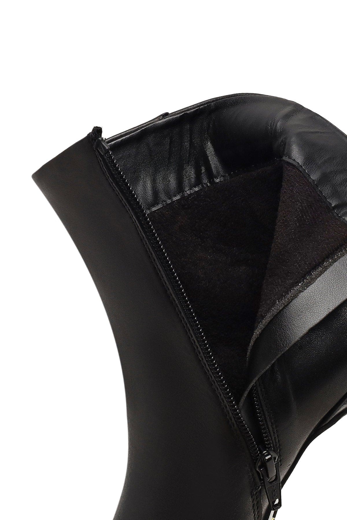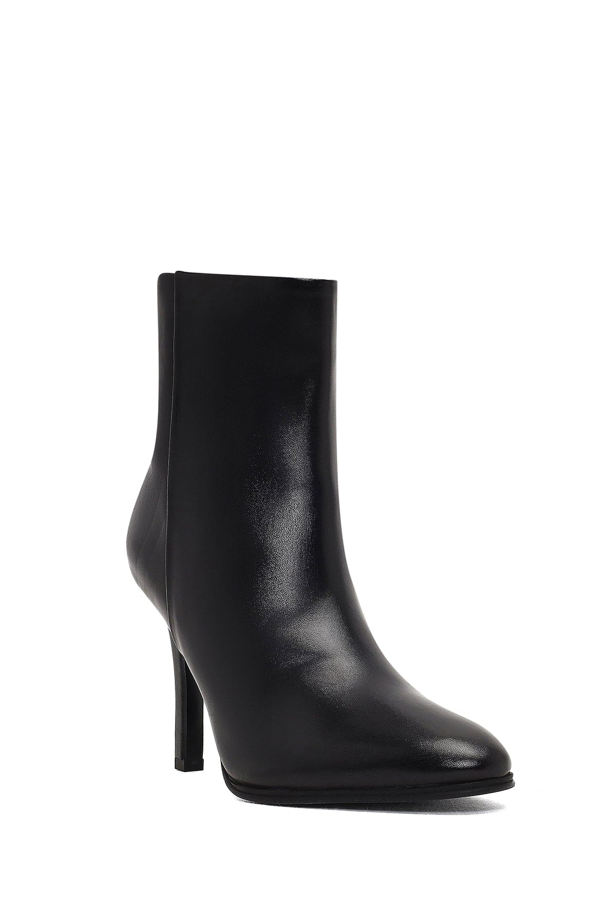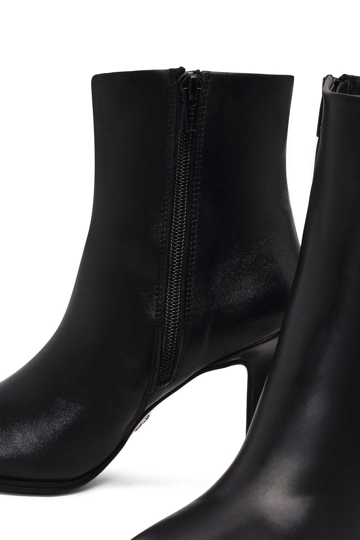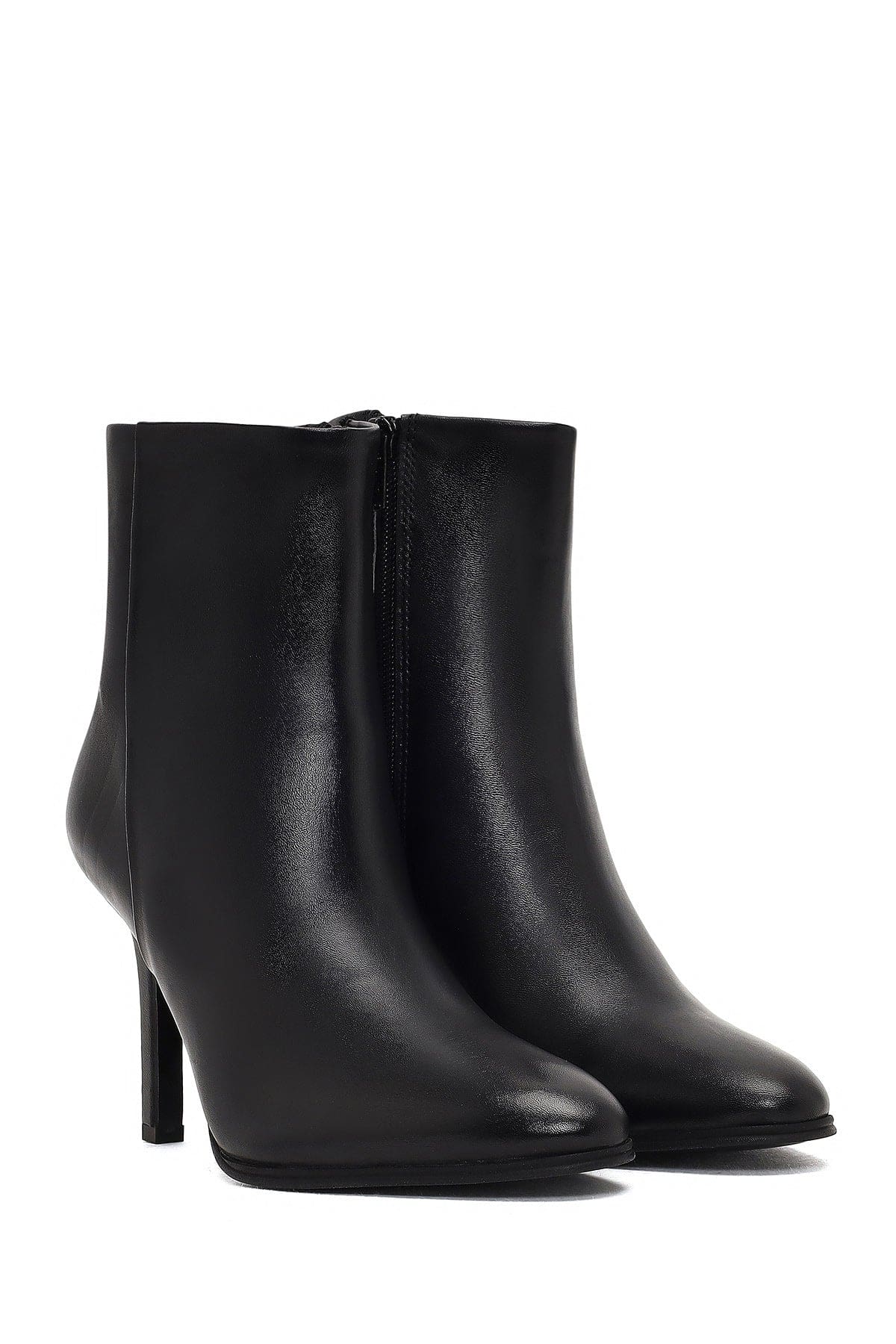 Kadın Siyah Fermuarlı Yüksek İnce Topuklu Deri Bot