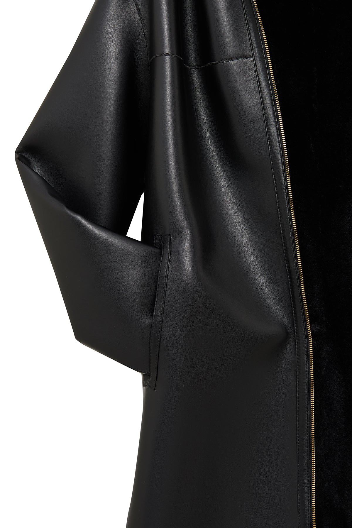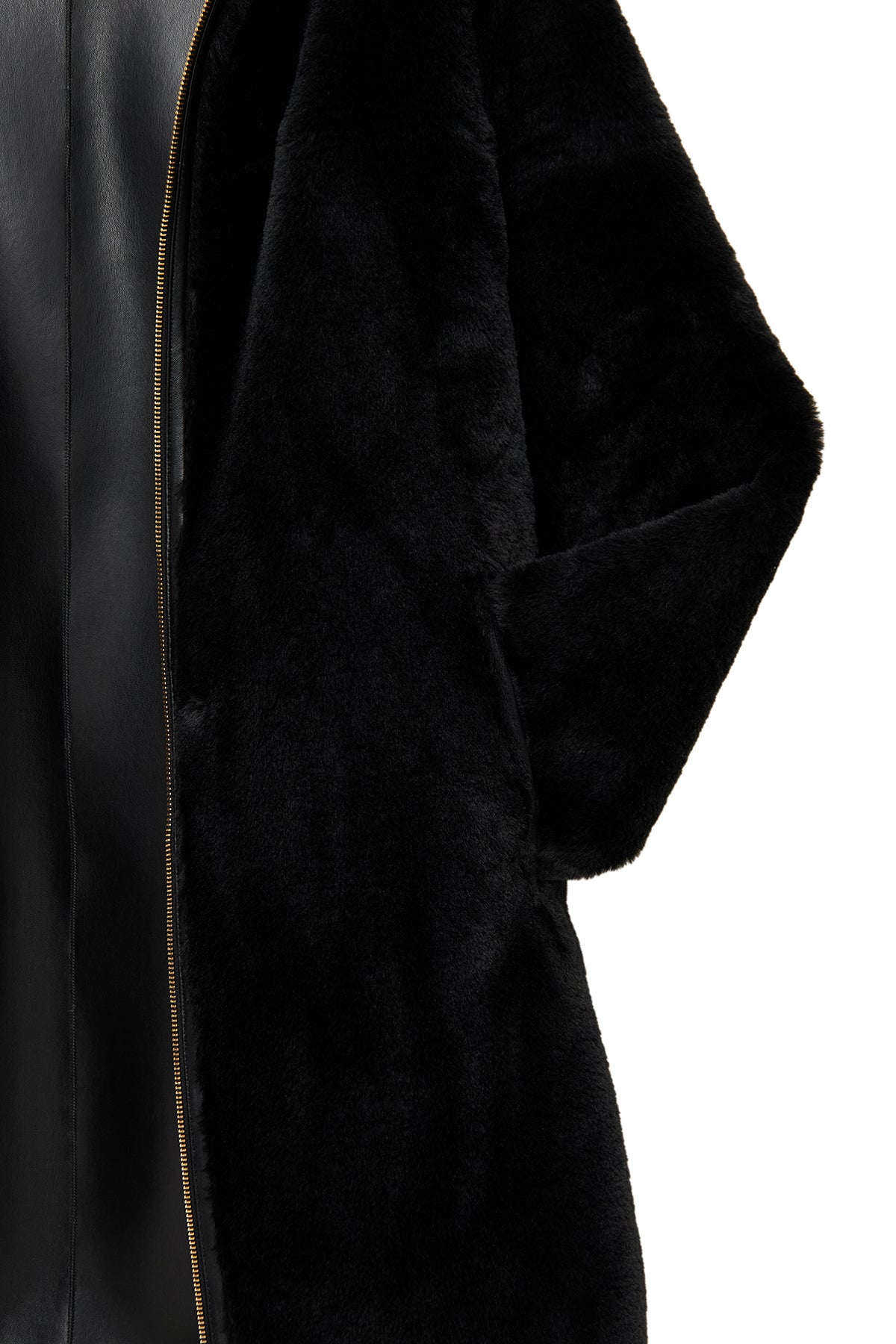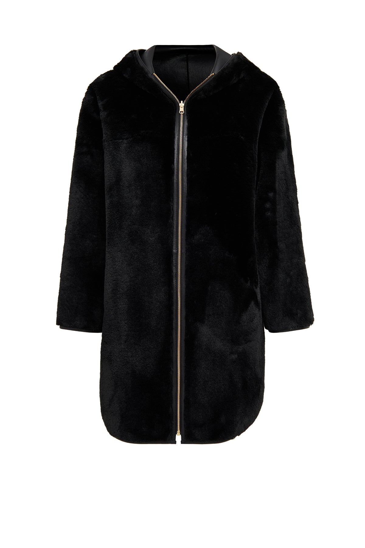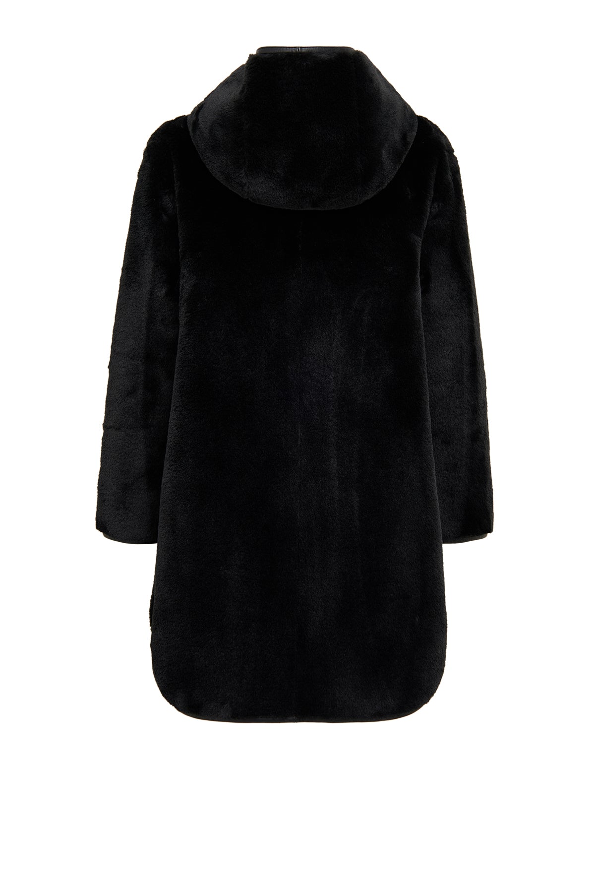 Artesina Kadın Siyah Kapüşonlu Teddy Deri Kaban