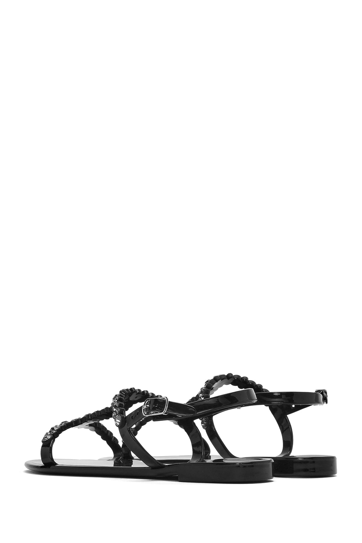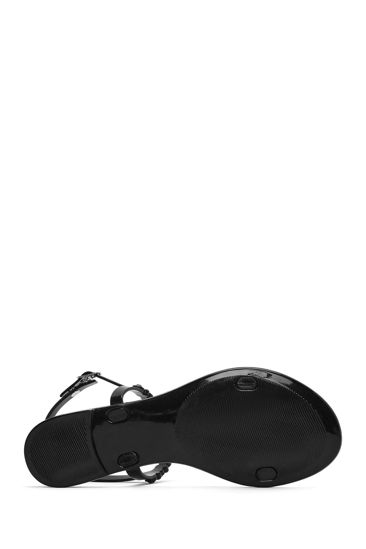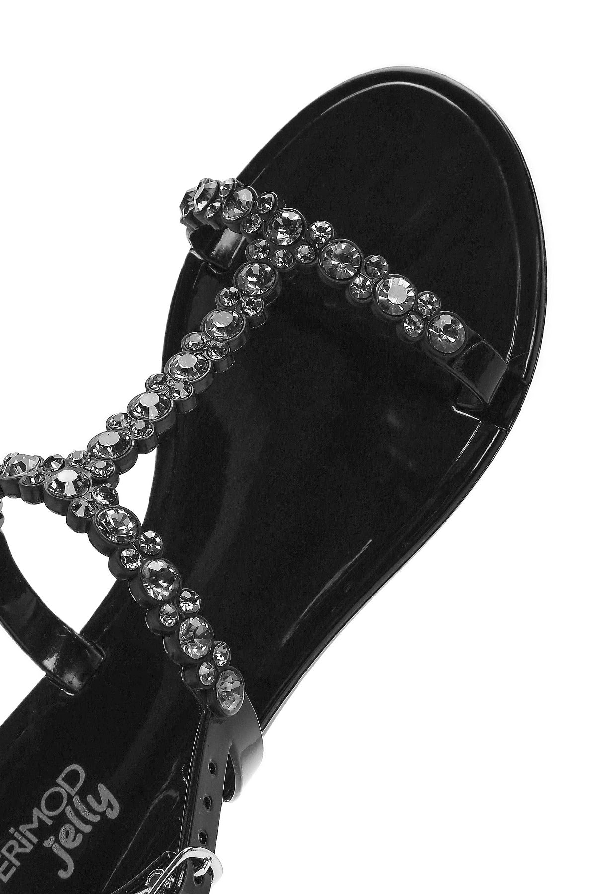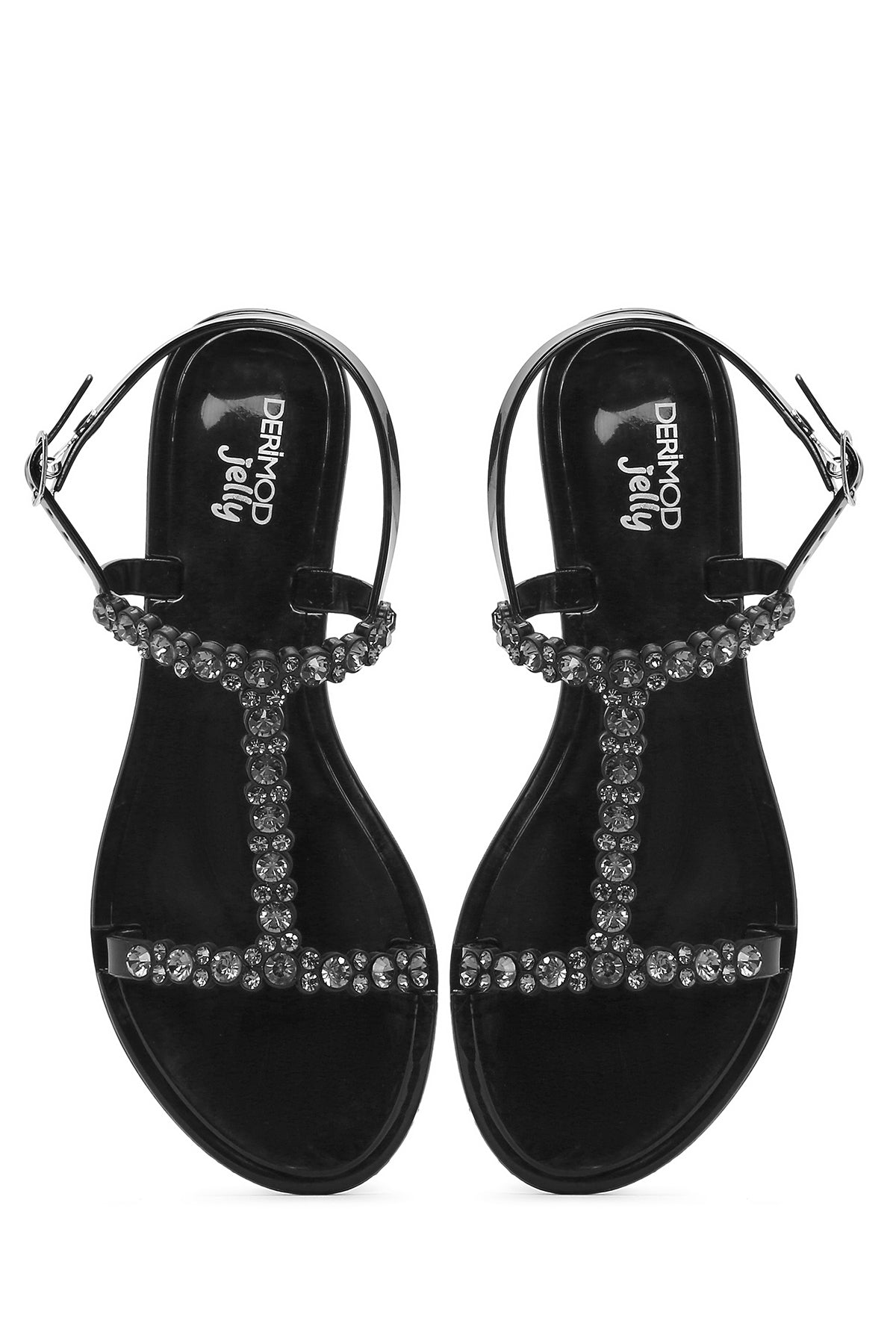 Kadın Siyah Jelly Arkadan Tokalı Taşlı Sandalet