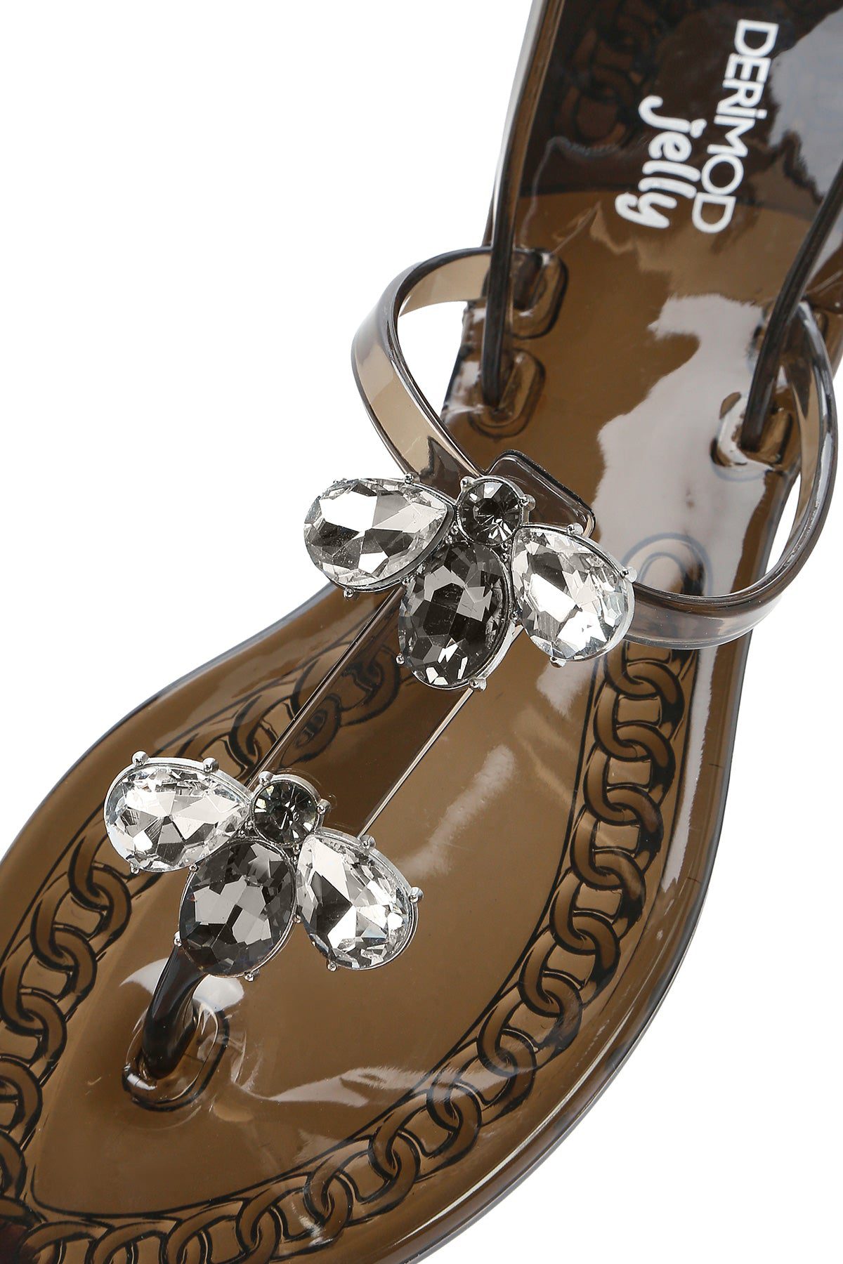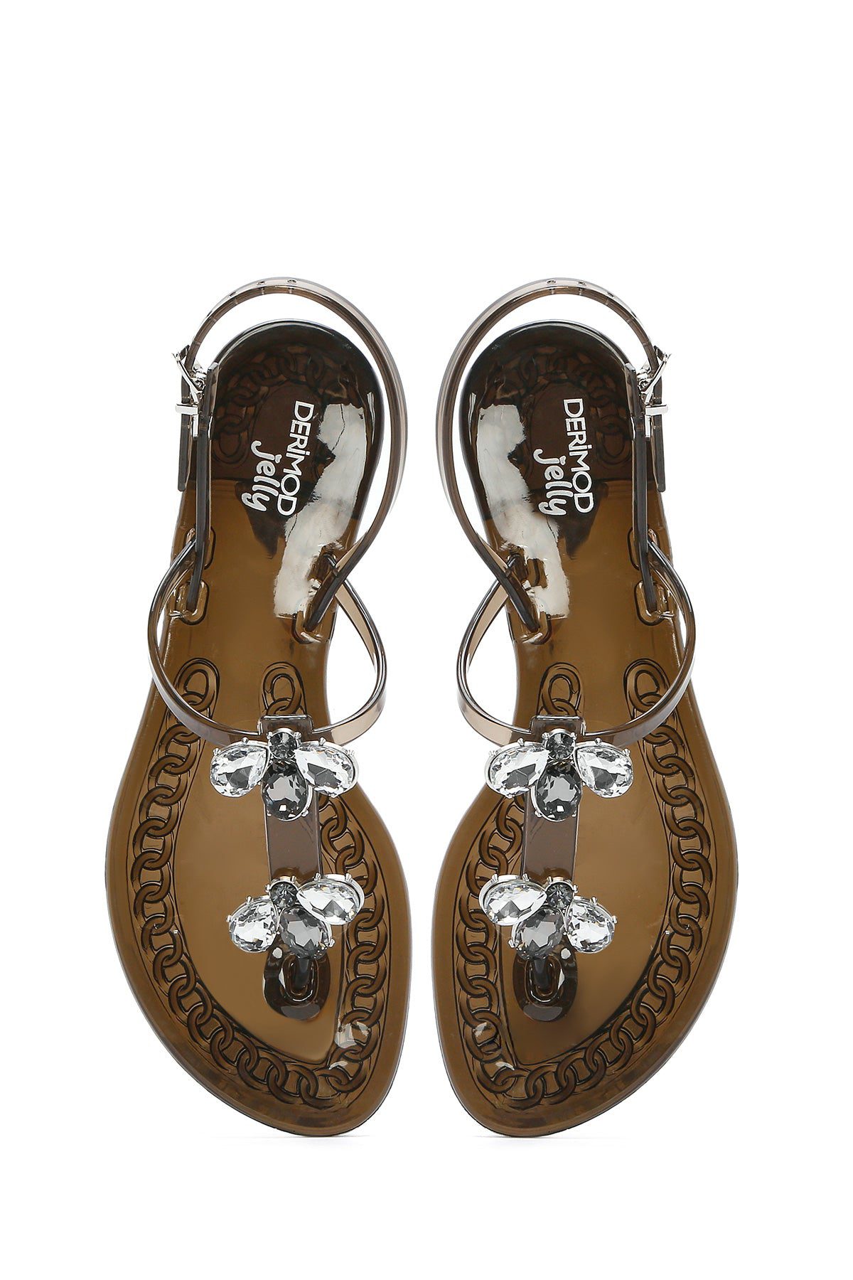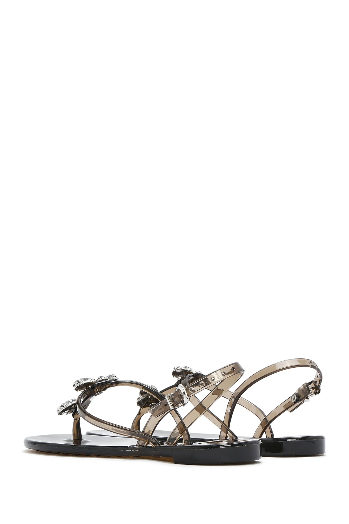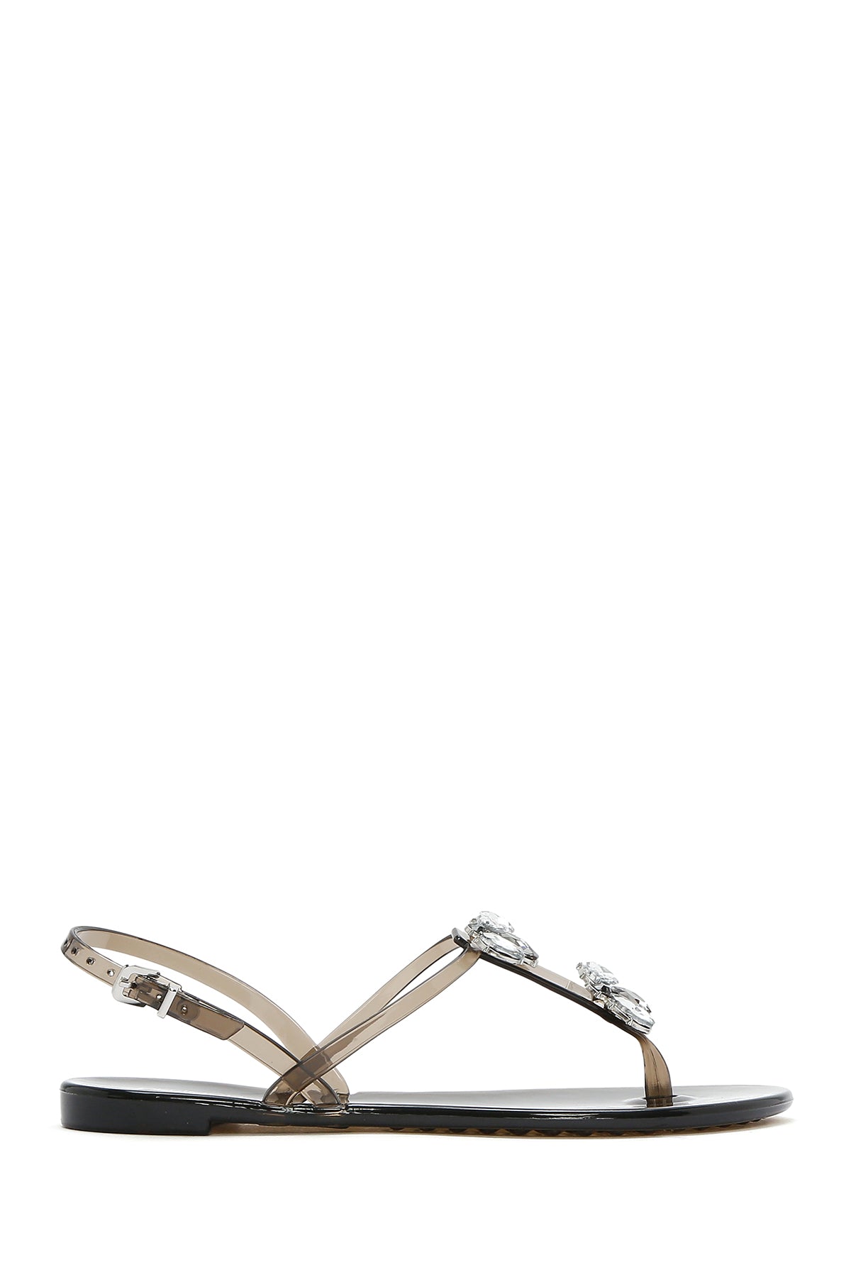 Kadın Siyah Jelly Arkadan Tokalı Taşlı Sandalet
