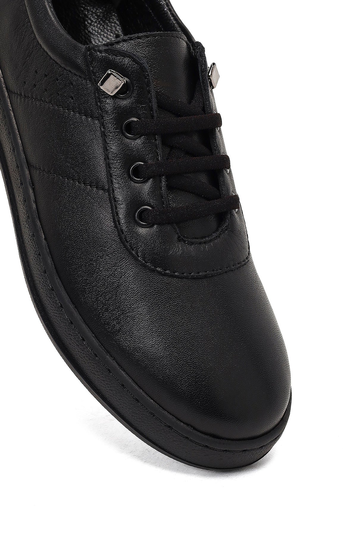 Kadın Siyah Bağcıklı Deri Comfort Ayakkabı