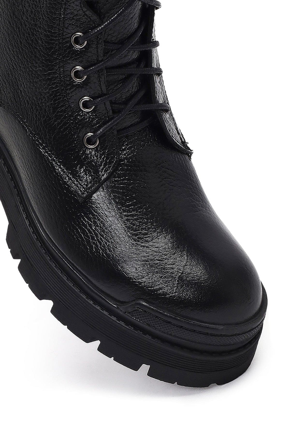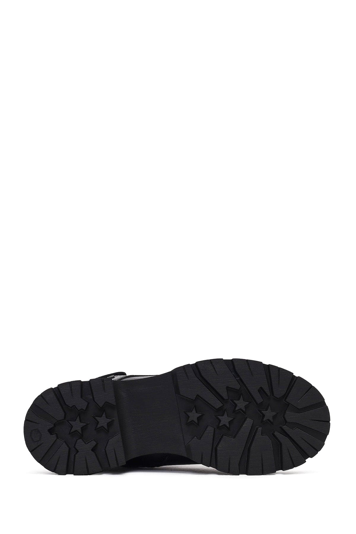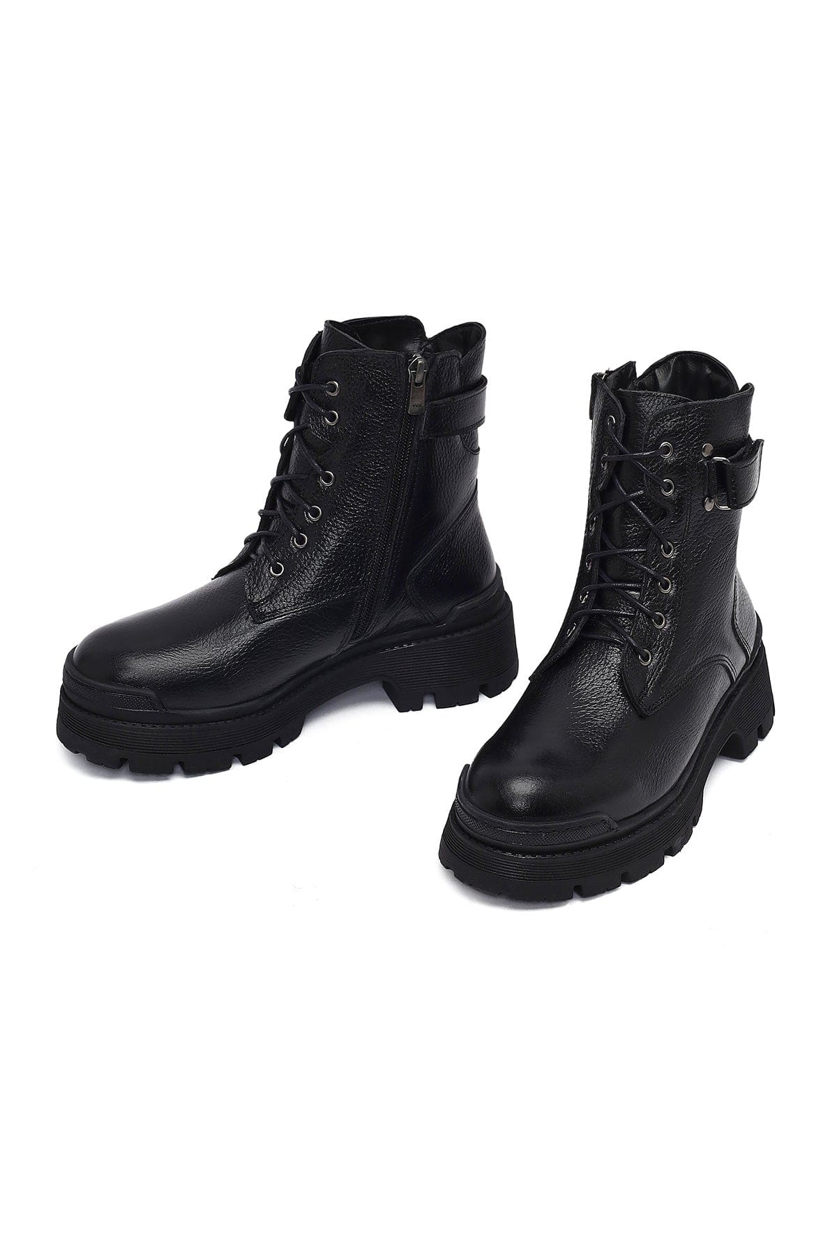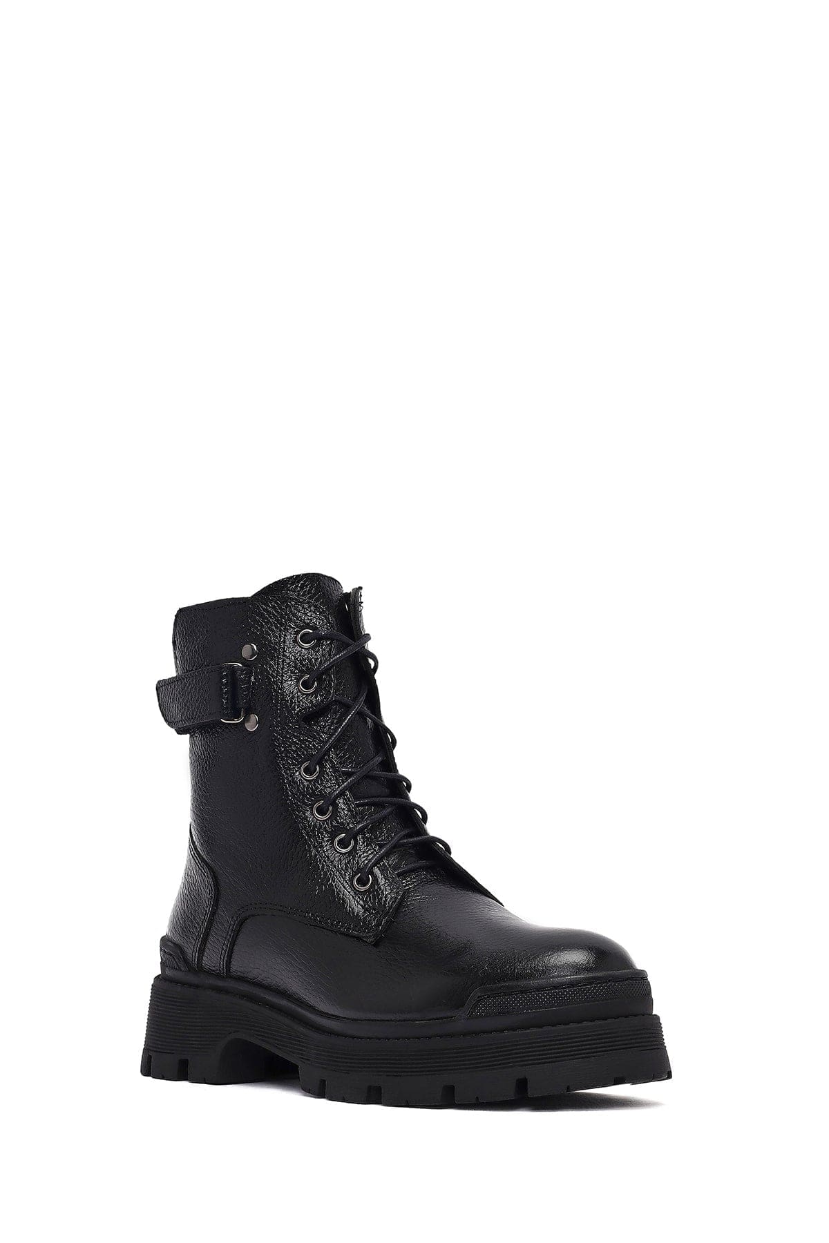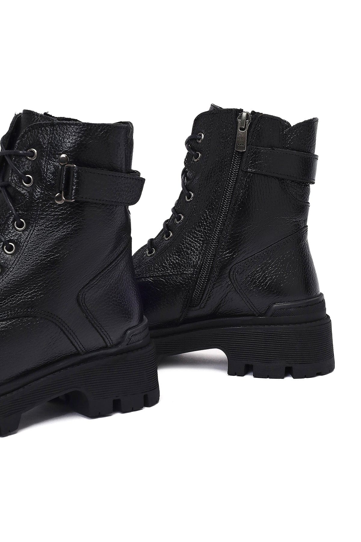 Kadın Siyah Bağcıklı Fermuarlı Kalın Tabanlı Deri Postal Bot