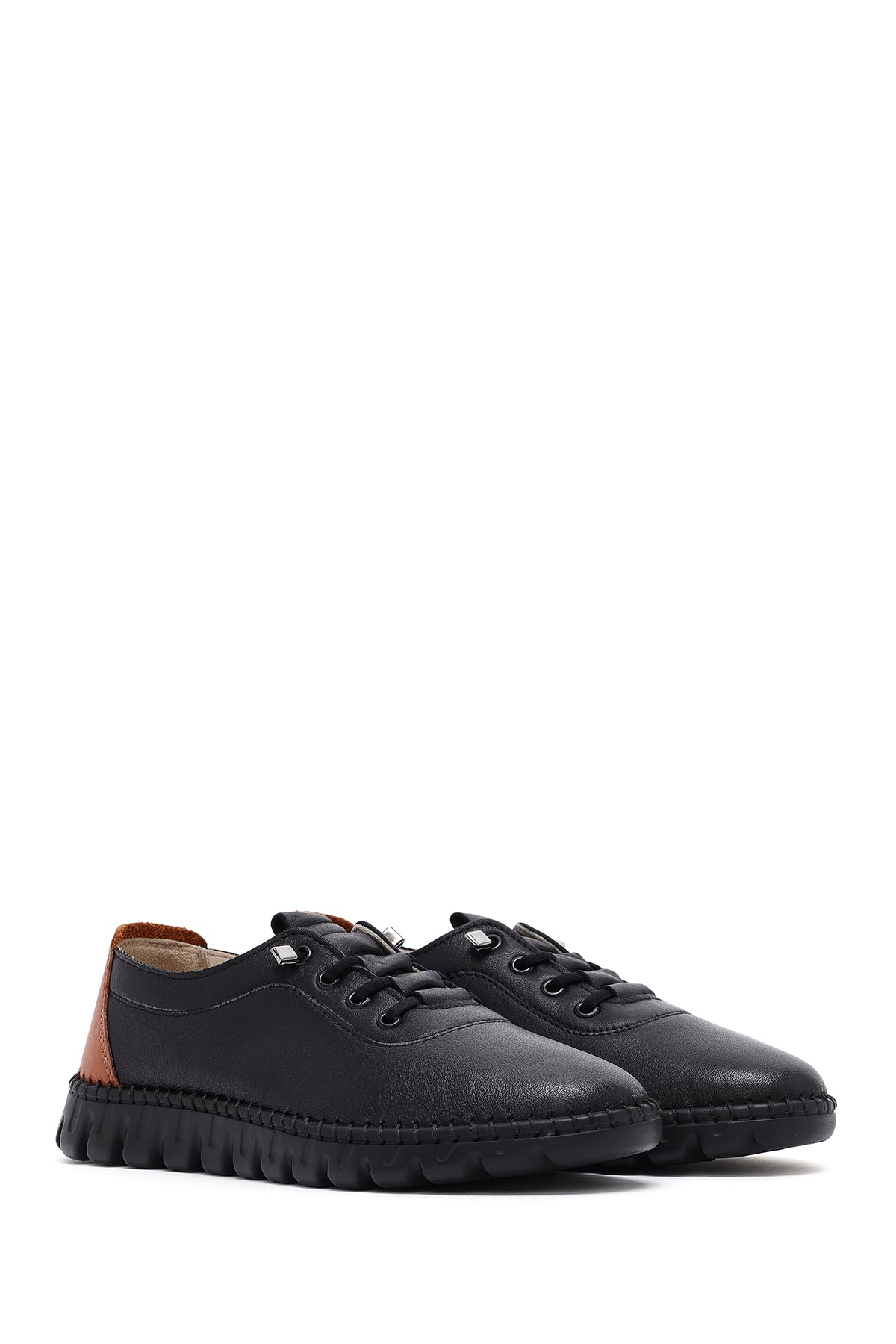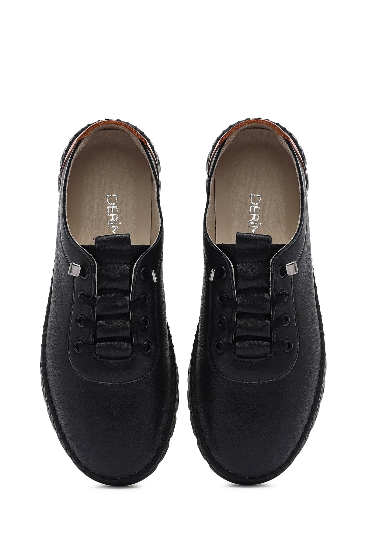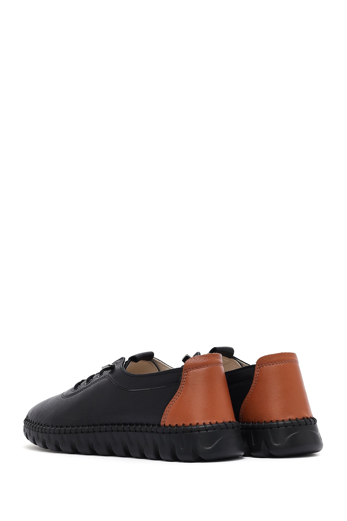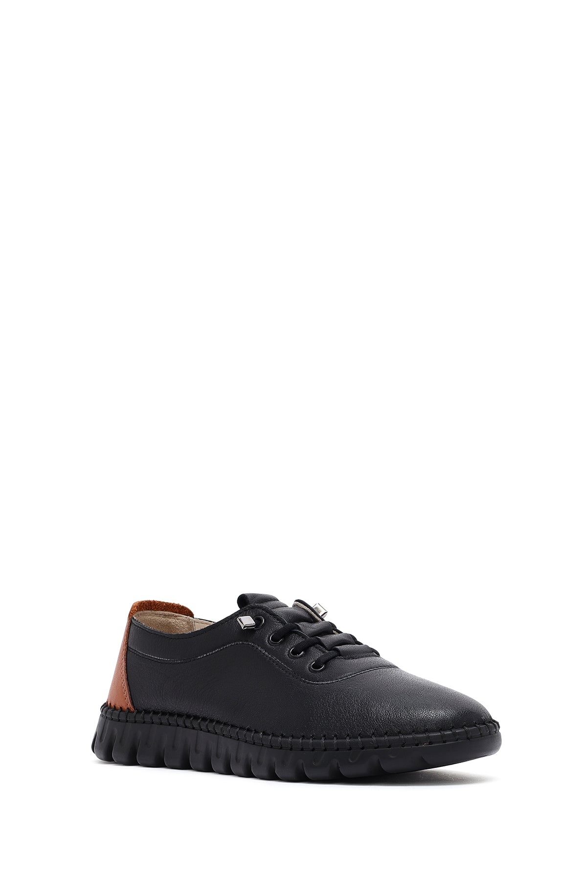Kadın Siyah Bağcıklı Deri Sneaker