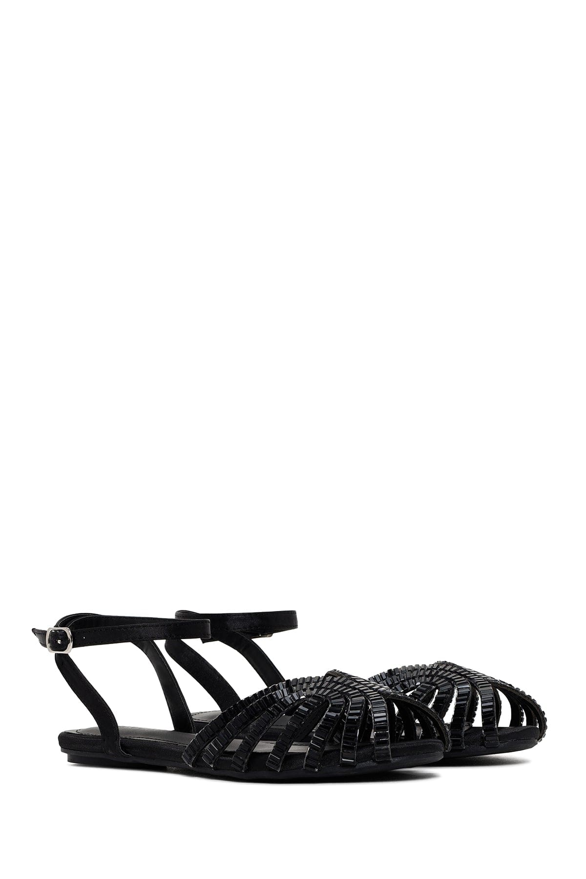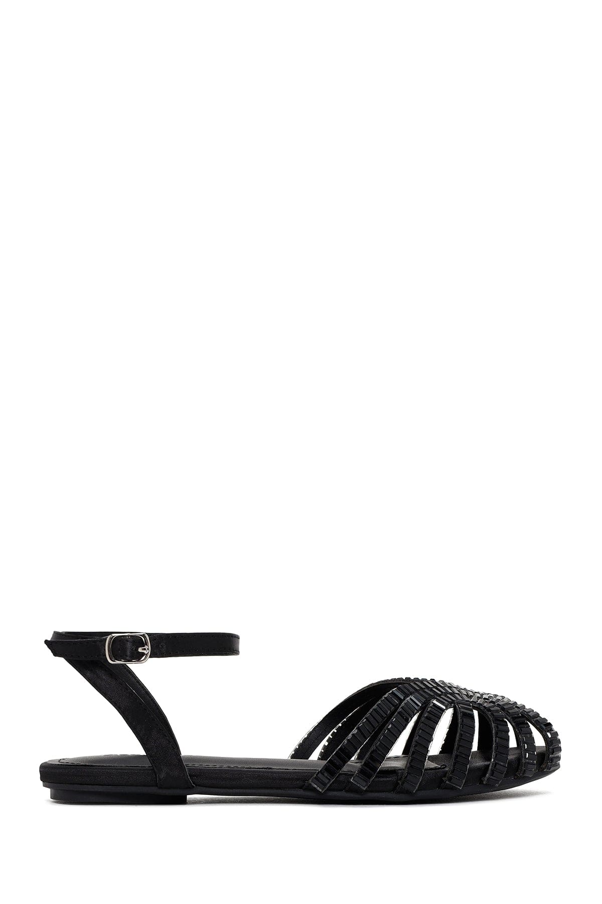 Kadın Siyah Bilekten Bağlamalı Taşlı Sandalet