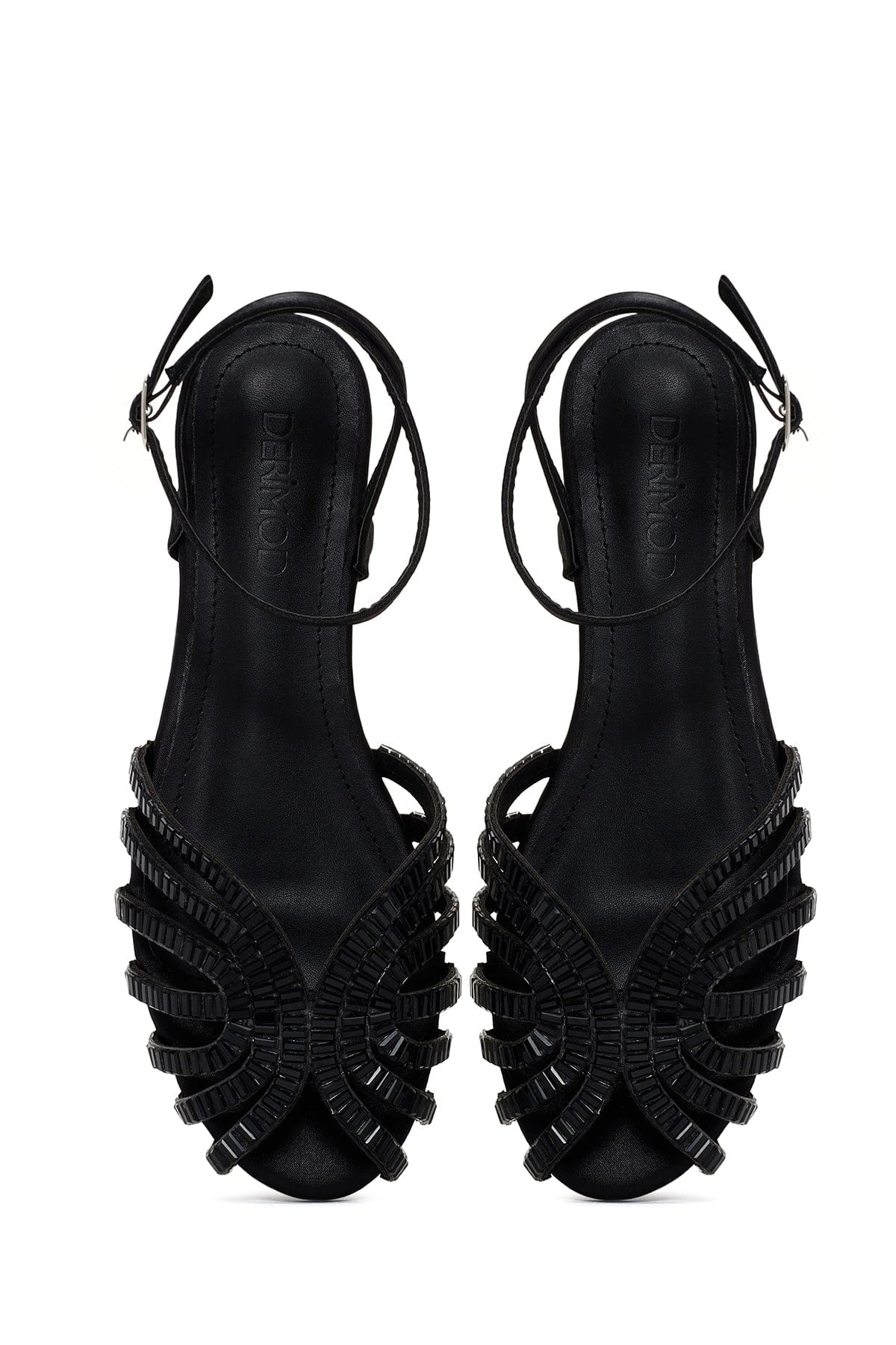 صندل زنانه مشکی بندی نگیندار دری مد