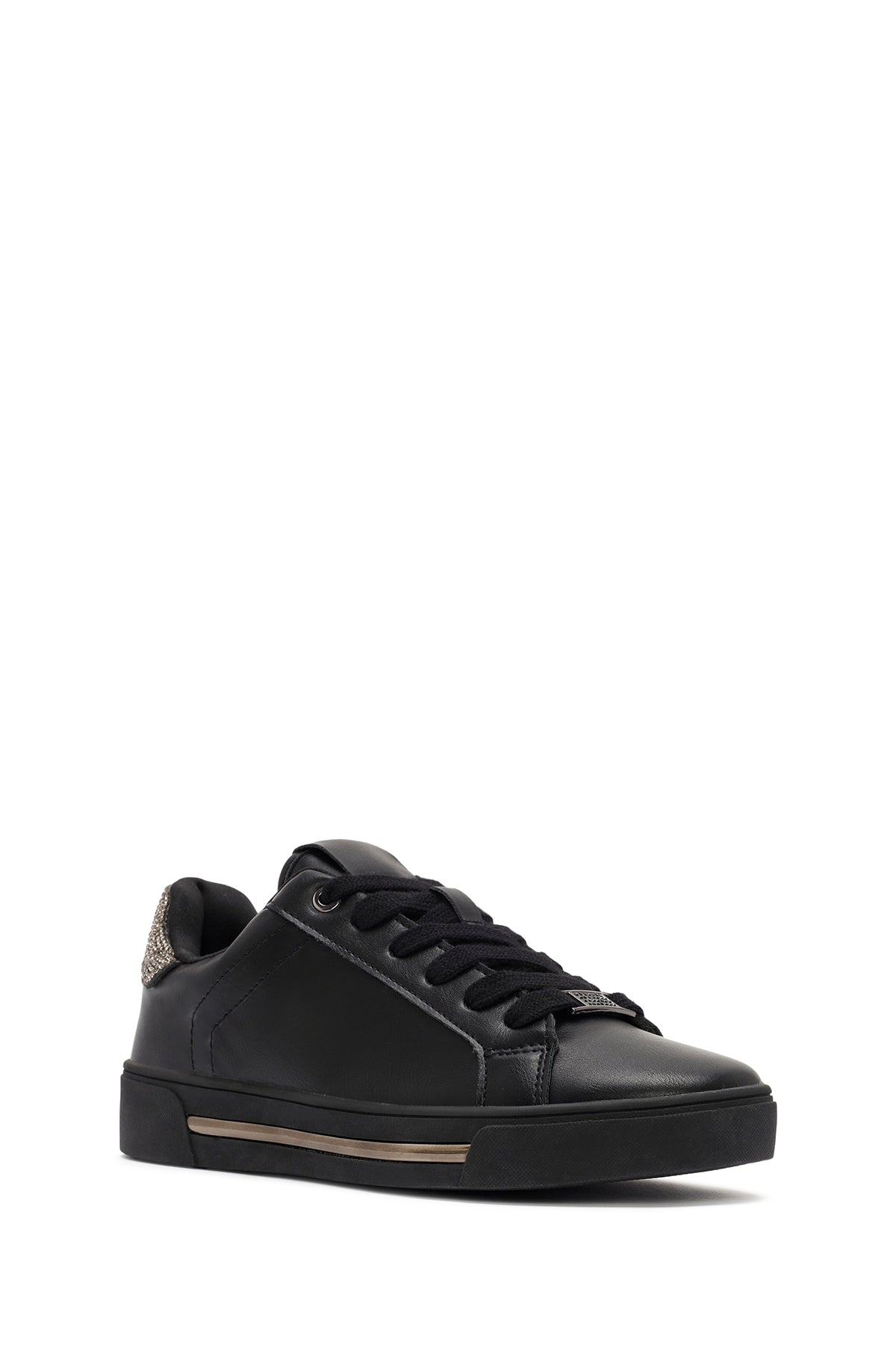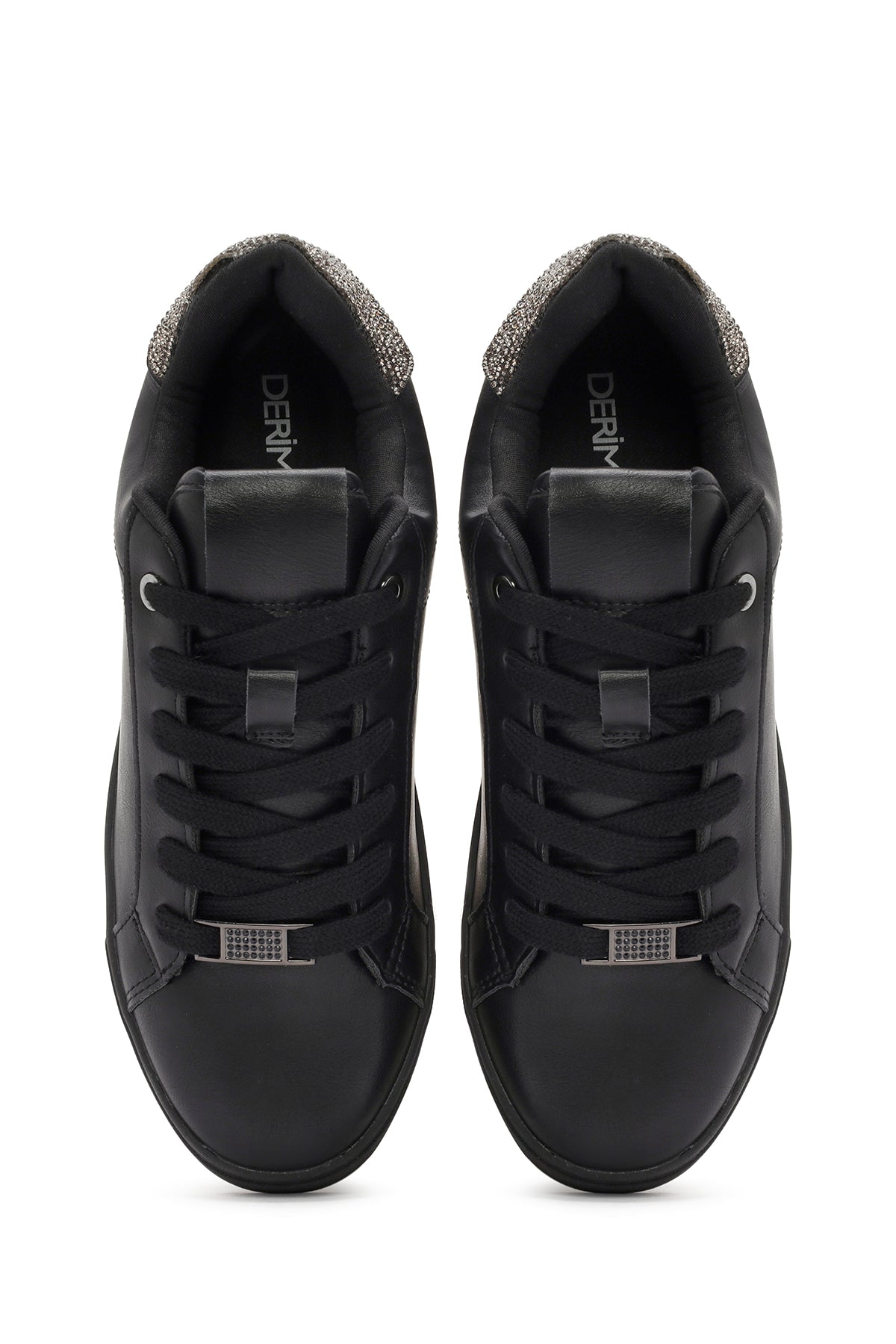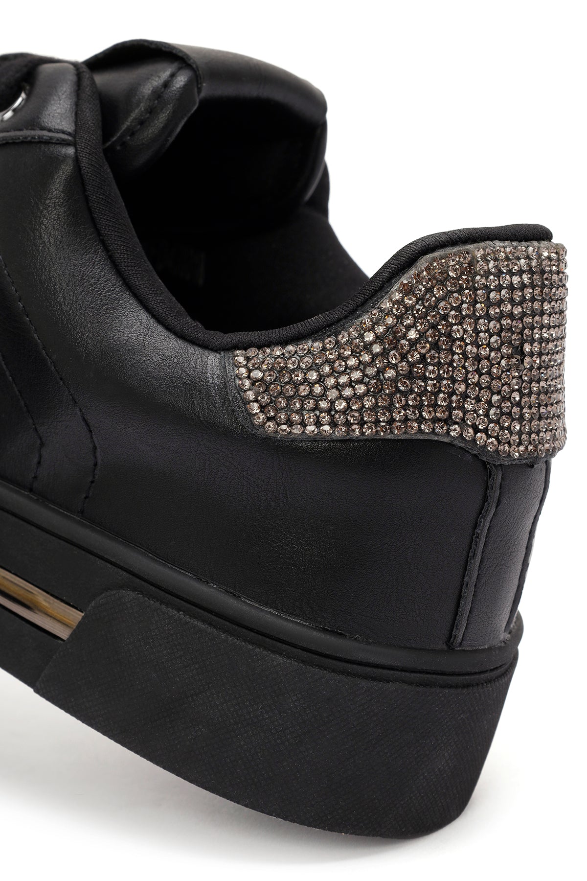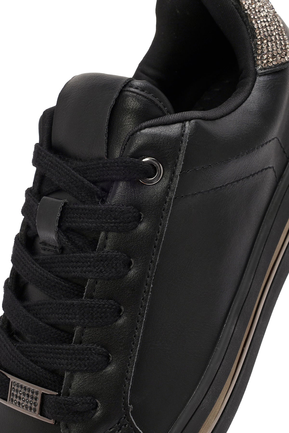Kadın Siyah Bağcıklı Taşlı Sneaker